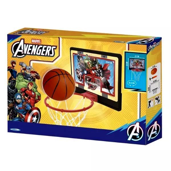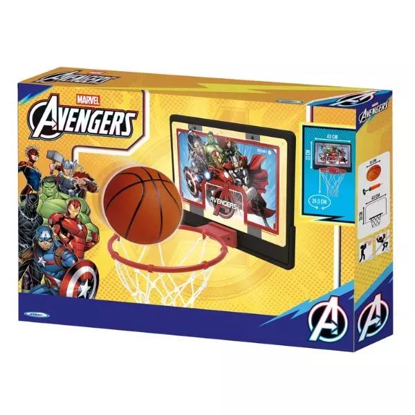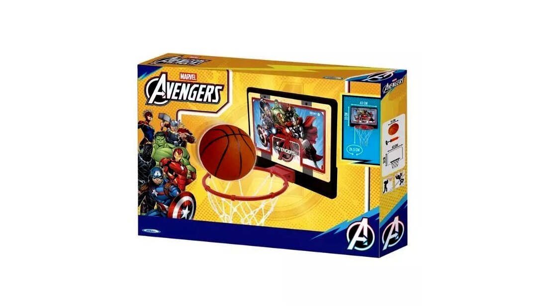 Mini kosárlabda palánkként jól használható dobógyakorlatokhoz és célzáshoz, miközben a Bosszúállók minta extra motivációt adhat a játékhoz.