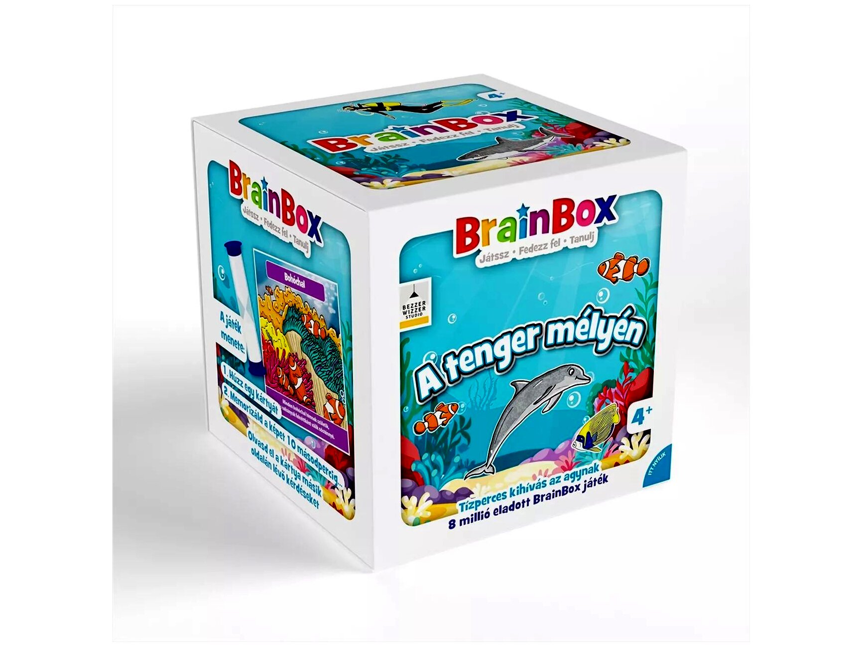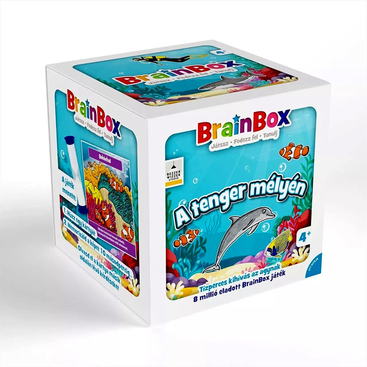 A BrainBox A tenger világa remek agytorna és szórakozás, egy vagy akár több játékos részére! Húzz egy kártyát, tanulmányozd, és jegyezz meg minél több információt 10 másodperc alatt. Ezután fordítsd le a kártyát, dobj a kockával, és válaszolj helyesen a kidobott számmal jelölt kérdésre. Ne húzd az időt, hiszen a homokórán gyorsan leperegnek a szemek! A válaszokat a kártyán ellenőrizheted. Ha jó megfigyelő vagy, és jól ismered a vízben lubickoló állatkákat, akkor a legtöbb kártya nálad landol!A BrainBox a gyors megfigyelések és a vizuális memória-kérdések családi játéka.
