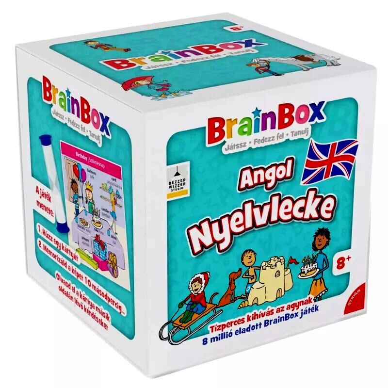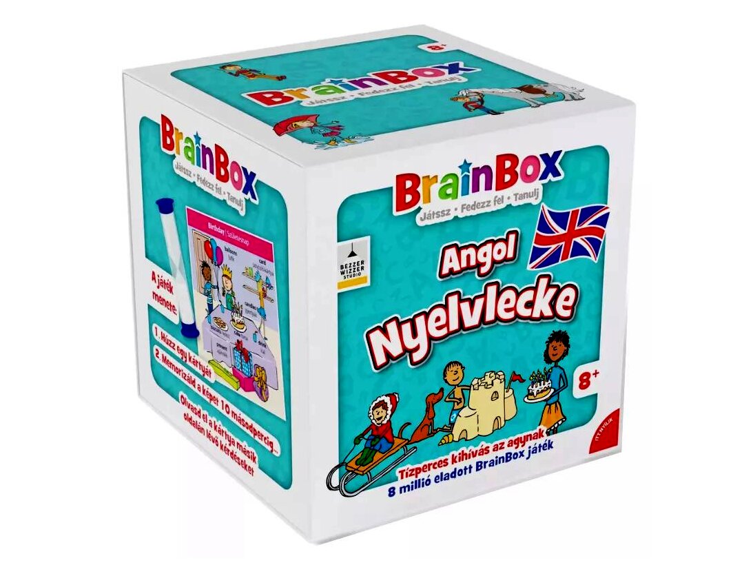 A Brainbox Angol nyelvlecke remek agytorna és szórakozás is egyben, amit egyedül, de akár többen is játszhatnak az angol nyelv iránt érdeklődők és a tanulni vágyók.A szabály a megszokott: húzzatok egy kártyát, nézzétek meg alaposan, és memorizáljatok minél több részletet a képen 10 másodperc alatt! Ha lejárt az idő, fordítsátok meg a kártyát, dobjatok a 8 oldalú dobókockával, és próbáljatok meg válaszolni a dobott számmal jelölt kérdésre! Ha jó megfigyelők vagytok, és fel tudjátok idézni a látottakat, akár ti lehettek azok, akik bezsebelik a legtöbb kártyát.
