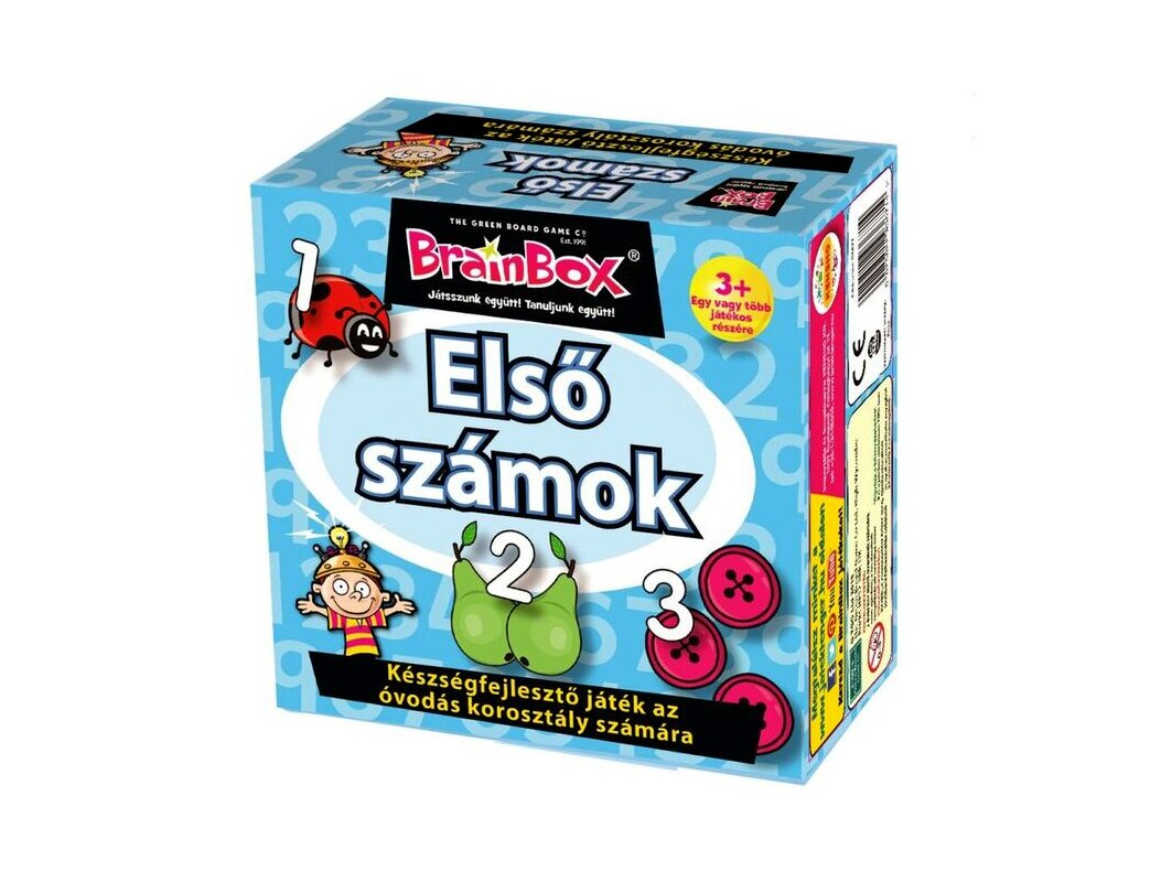 A BrainBox - Első számok társasjáték során a gyerekek kártyákat húznak, amiken különböző mennyiségű állatok, növények és tárgyak láthatók számokkal, a másik oldalon mindhárom dologból csak 1-1 darab. A gyerekeknek emlékezni kell rá, hogy melyik rajzból hány darab van a kép másik oldalán.