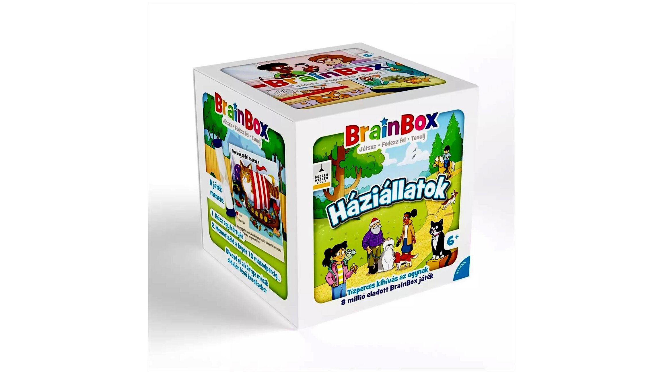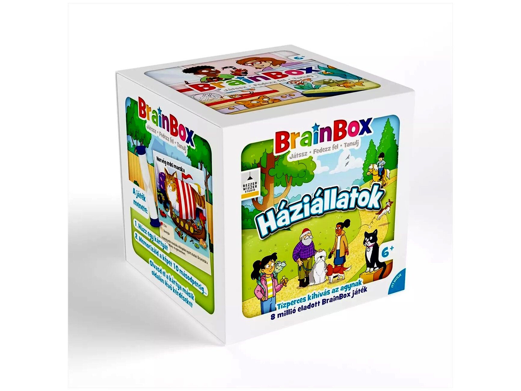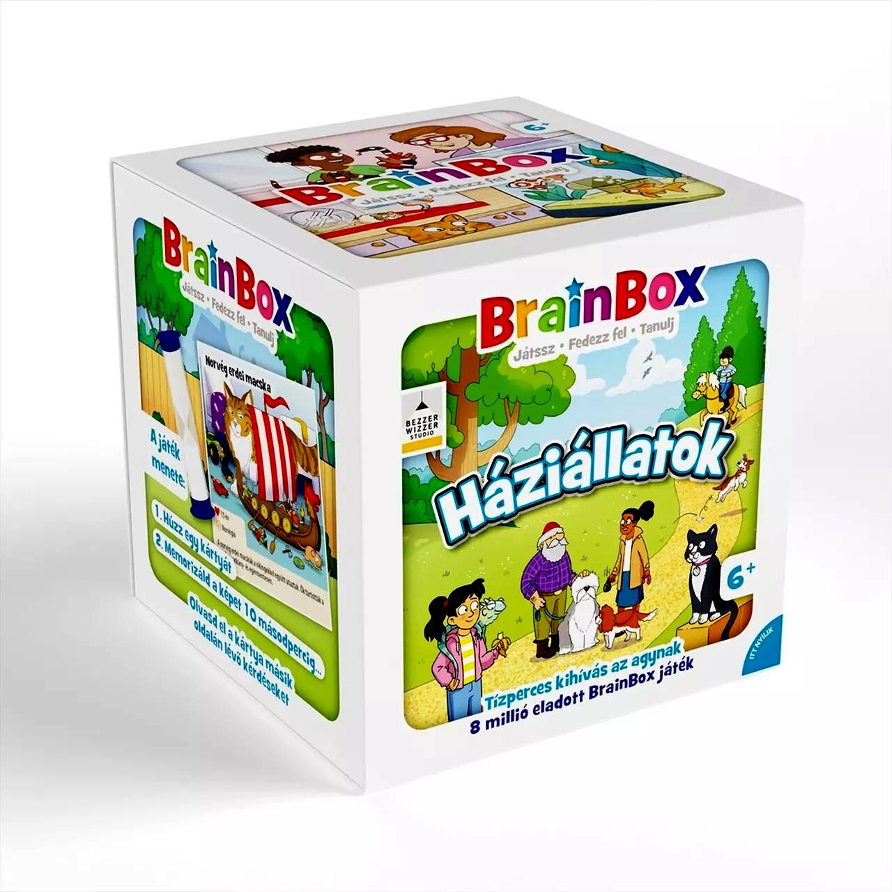 A BrainBox Háziállatok remek agytorna és szórakozás, egy vagy akár több játékos részére! Húzz egy kártyát, tanulmányozd, és jegyezz meg minél több információt 10 másodperc alatt. Ezután fordítsd le a kártyát, dobj a kockával, és válaszolj helyesen a kidobott számmal jelölt kérdésre. Ne húzd az időt, hiszen a homokórán gyorsan leperegnek a szemek! A válaszokat a kártyán ellenőrizheted. Ha jó megfigyelő vagy, és jól ismered a házikedvenceket, akkor a legtöbb kártya nálad landol!A BrainBox a gyors megfigyelések és a vizuális memória-kérdések családi játéka.