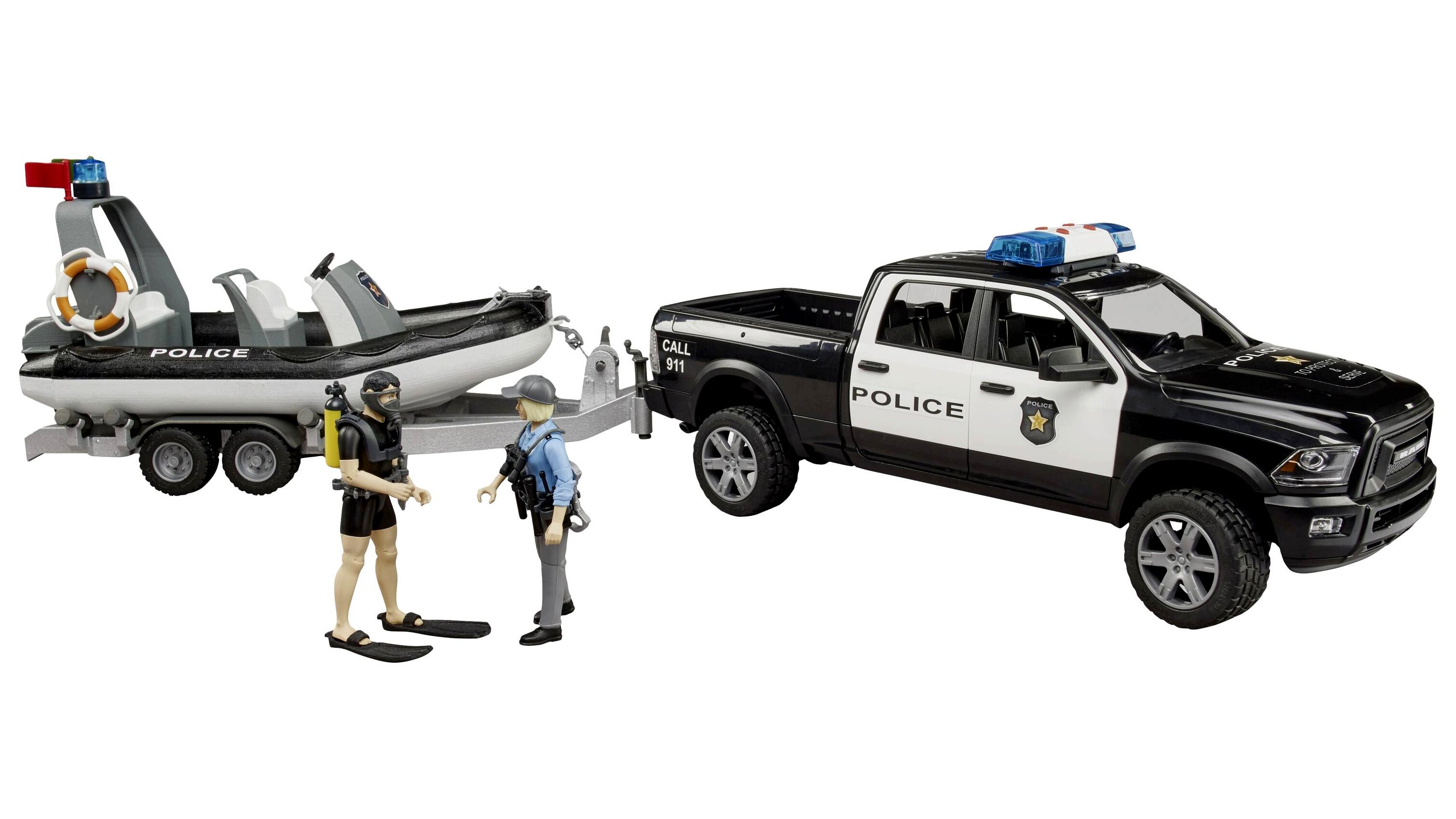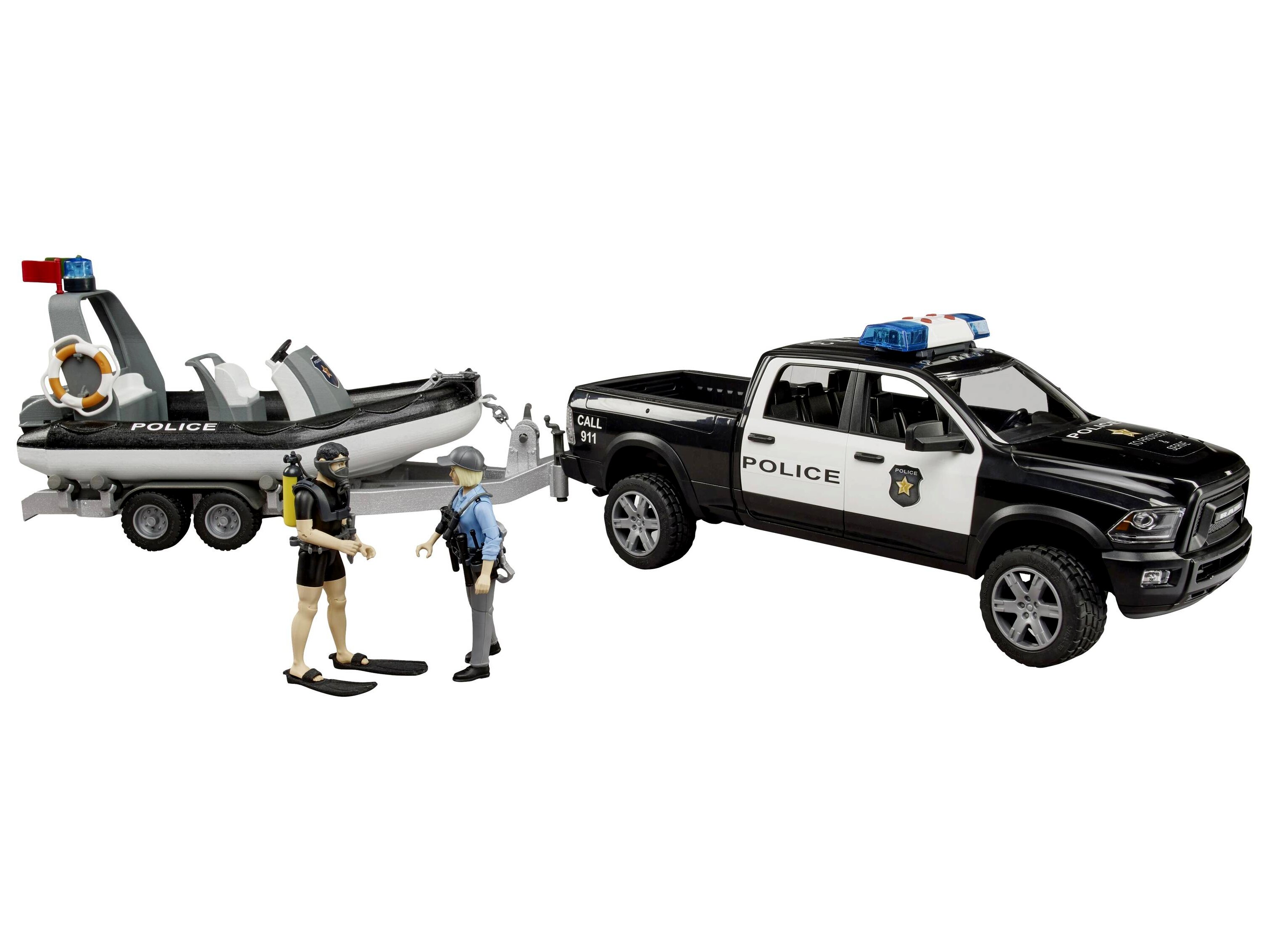 Bruder Rendőrségi RAM 2500 pótkocsival, csónakkal és jelzőfénnyel