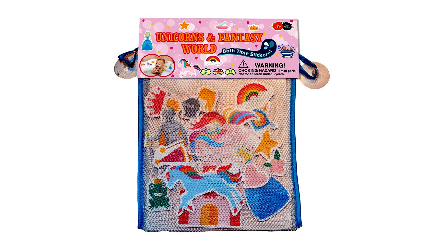 A Buddy & Barney Tapassz a csempére! fürdőjátékával még akkor sem lesz unalmas a fürdés, ha a gyerkőcök ágálnak a mosakodás ellen. A szettben összesen 19 különböző unikornist és más, varázslatos szimbólumot (pl. csillag, varázssüveg, tökhintó, hercegnő) ábrázoló habszivacs elem található, amit a lurkók víz segítségével feltapaszthatnak a fürdőkád falára vagy a csempére, de akár a víz felszínén is lebegtethetik őket. A csomagban egy tapadókorongos, hálós zsák is található, hogy könnyebb legyen a szárítás és a tárolás.