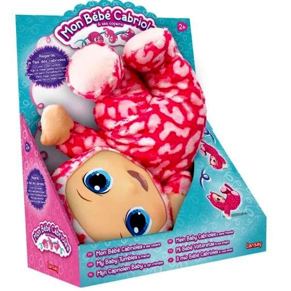 Ez az ölelnivaló, pihe-puha anyagból készült Bukfencező baba csak arra vár, hogy egy szerető kislány örökbe fogadja, és hogy megmutathassa újdonsült anyukájának kedvenc mutatványát, a bukfencezést. Az aranyos, mosolygós, csillogó szemű baba sok-sok vidám pillanatot okoz majd a gyerekeknek, hiszen elég csak előrebillenteni a fejét, és ripsz-ropsz át is bukfencezik.A játékbaba mozgásra ösztönzi a gyerekeket, emellett a kislányok a babájuk gondozásával a felnőttek világát utánozhatják szerepjáték által, így sokat tanulnak a felelősségvállalásról, a szeretetről, önállóságról és a gondoskodásról.