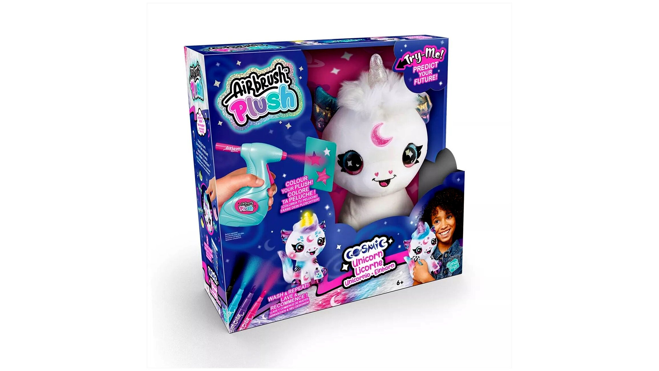 Ez a cukiság csak arra vár, hogy valaki színt vigyen a mindennapjaiba! Az alkotás menete egyszerű: a kiválasztott, színes festékfilctollat bele kell helyezni a festékszóróba, majd indulhat is a móka! A sablonok segítségével izgalmas mintákkal dobhatják fel a gyerekek az állatka bundáját. Játék után a plüss könnyedén lemosható vízzel, így másnap új stílussal indulhat a nap. Ráadásul ez a cuki unikornis még a jövőt is megtudja jósolni! A gyerekeknek csak fel kell tenniük egy eldöntendő kérdést, megnyomni az unikornis szarvát, a válasz pedig annak a színében rejlik.