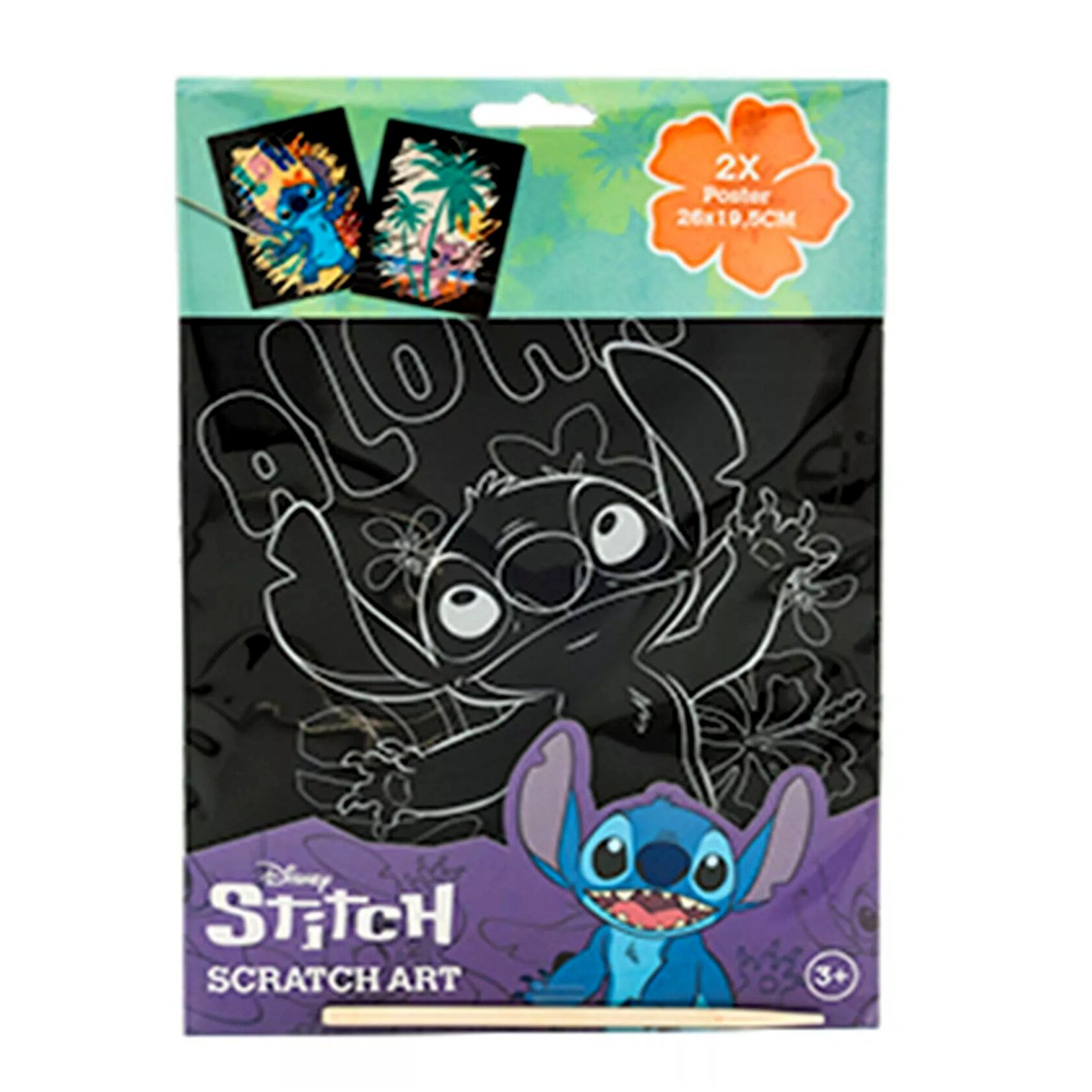 A Canenco Stitch képkarc poszter szett egy kreatív képkészítő elfoglaltság, ahol a mellékelt kaparótollal a matt fekete fedőréteg eltávolításával előbukkannak a színek. A csomag 2 darab, Stitch témájú képet tartalmaz.