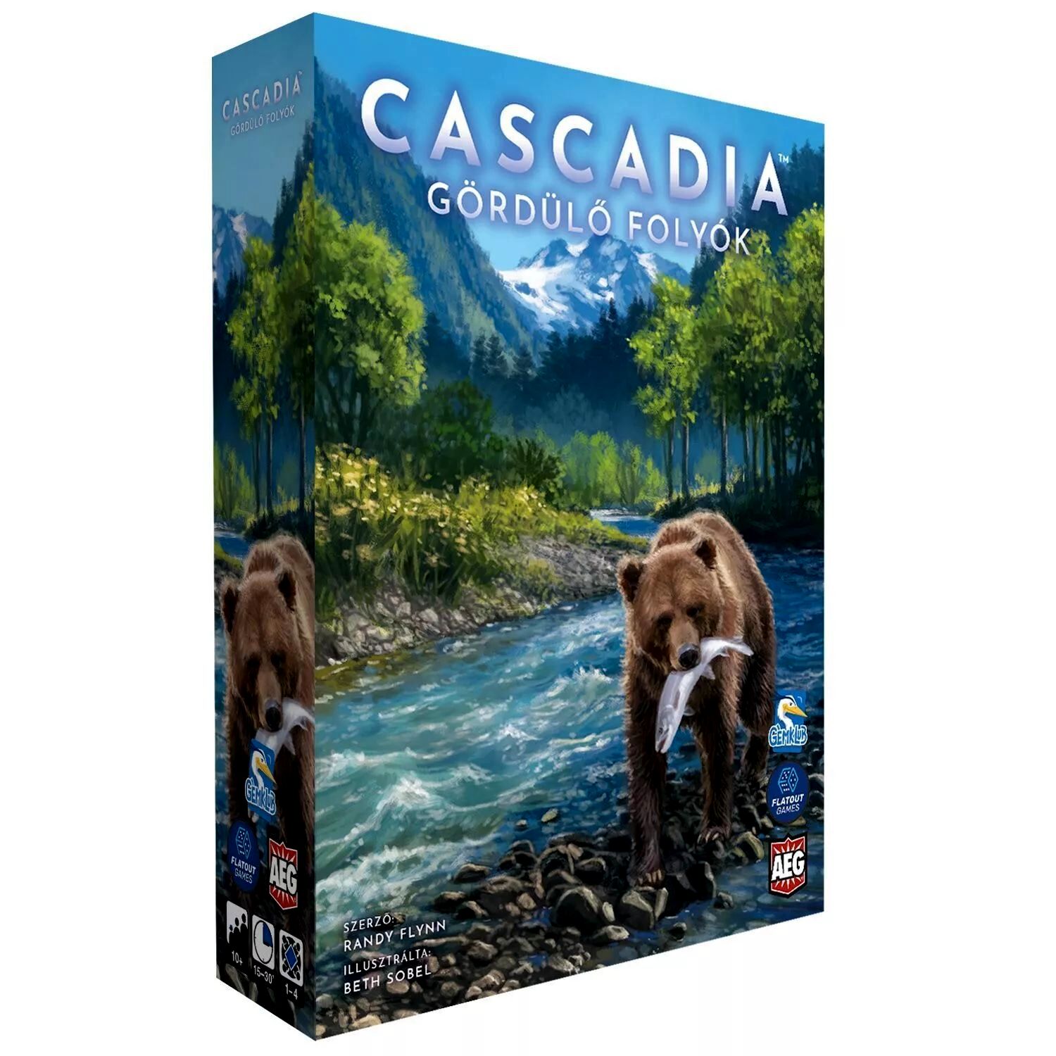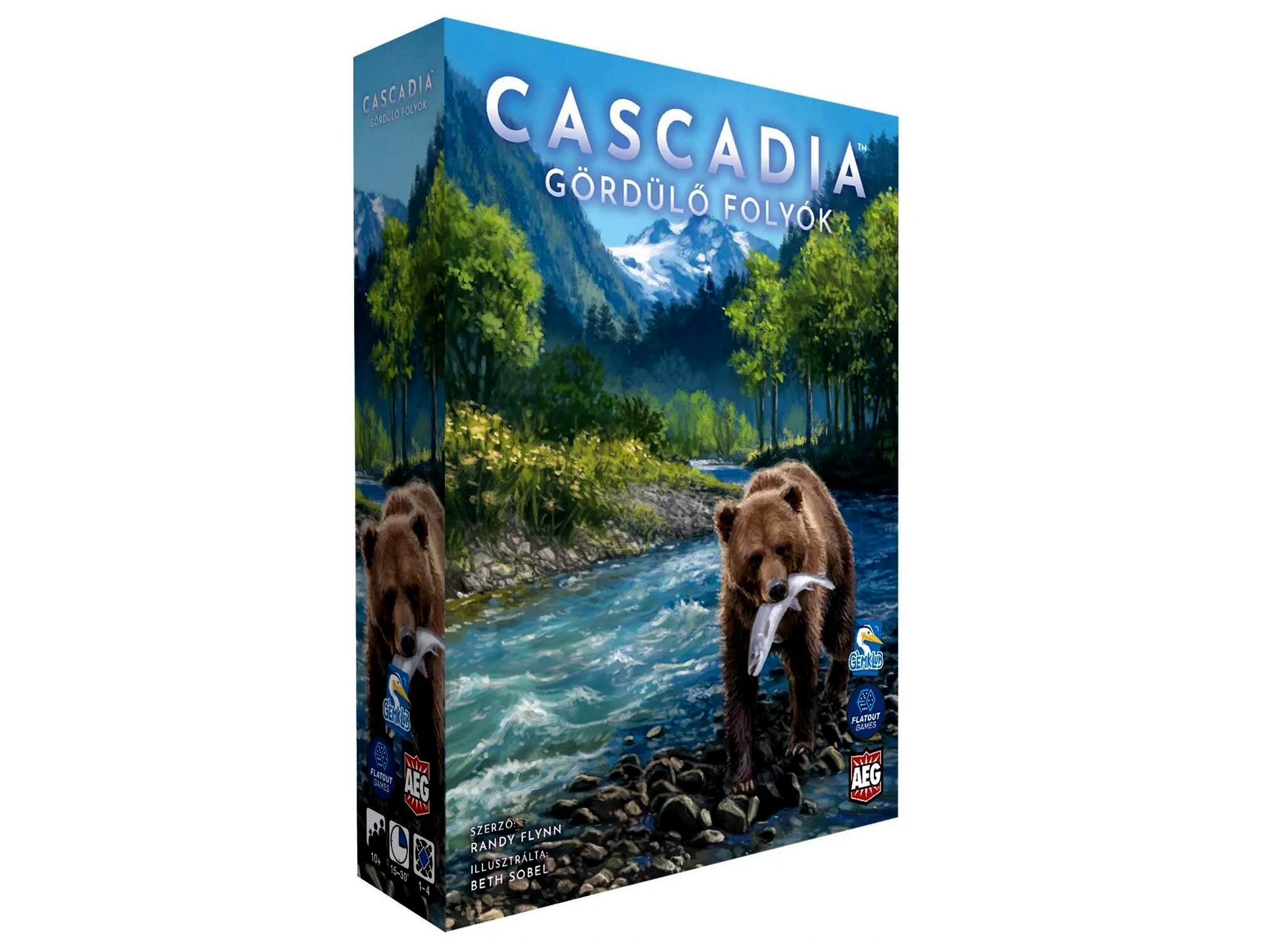 A Cascadia – Gördülő folyók az Év játéka díjas Cascadia vadvilága „válassz és írj” változata. A játékosok változatos élővilágot igyekeznek létrehozni a saját lapjukon a megfelelő kockák felhasználásával.Még több változatossághoz és a 8 fős játékhoz kombináld a Cascadia – Gördülő dombokkal!