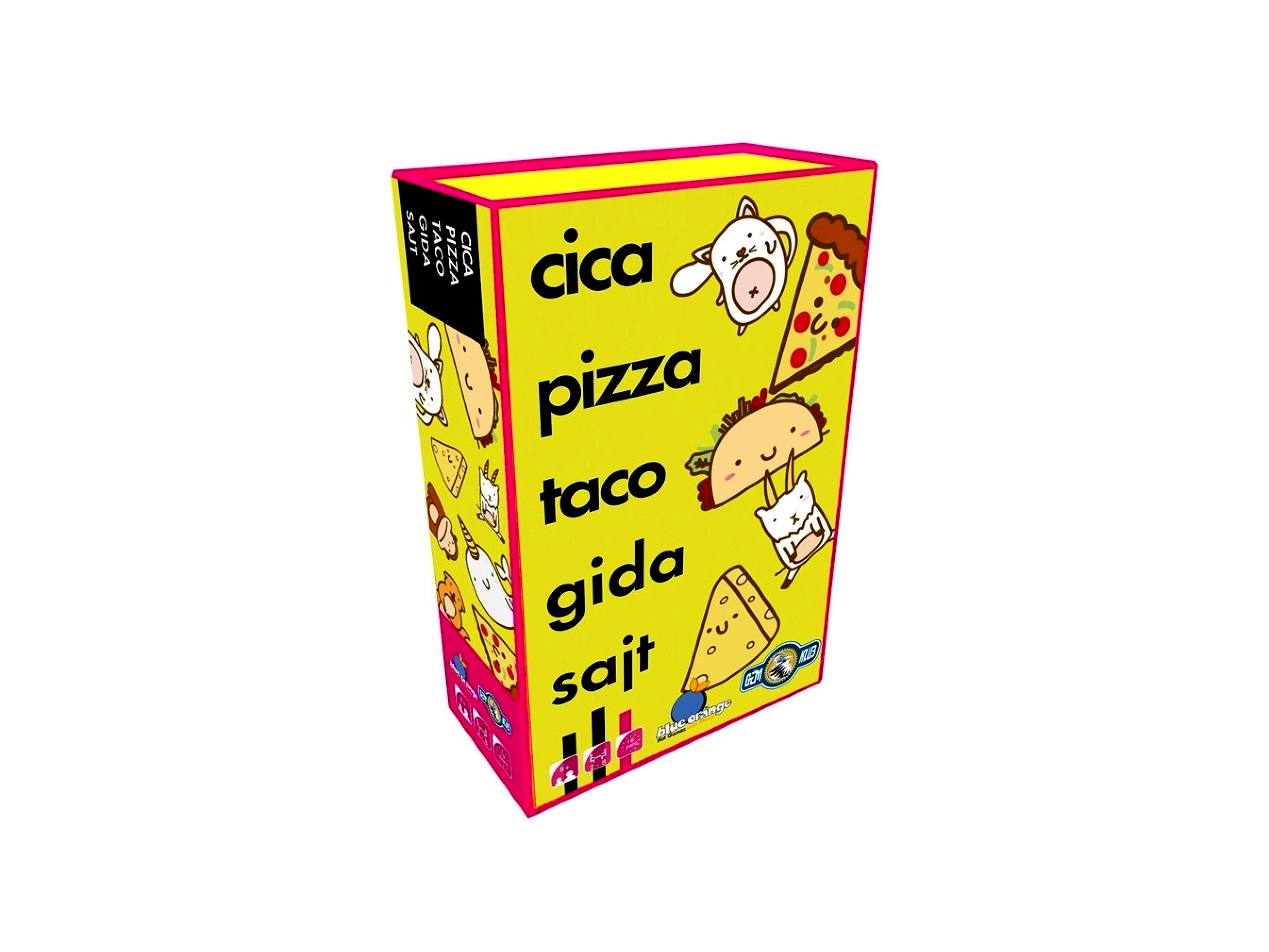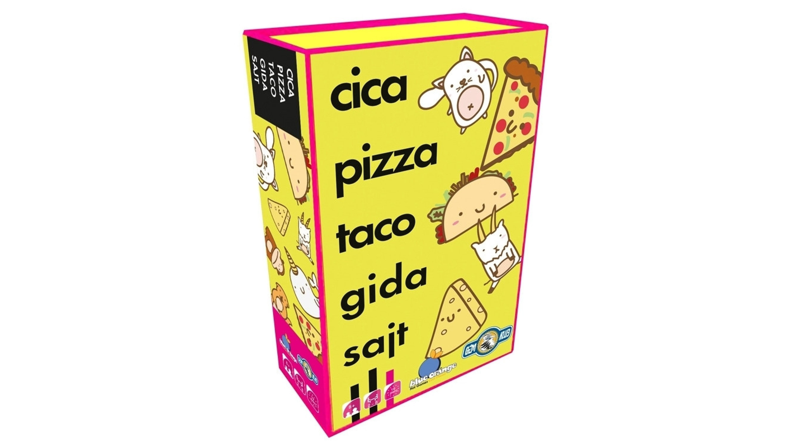 Cica, pizza, taco, gida, sajt - jól tartsátok észben ezt az öt szót. Amint az egyik kártya megegyezik a kimondott szóval, minél gyorsabban rá kell csapnotok a központi paklira. Aki a leglassabb volt, az kapja a paklit.