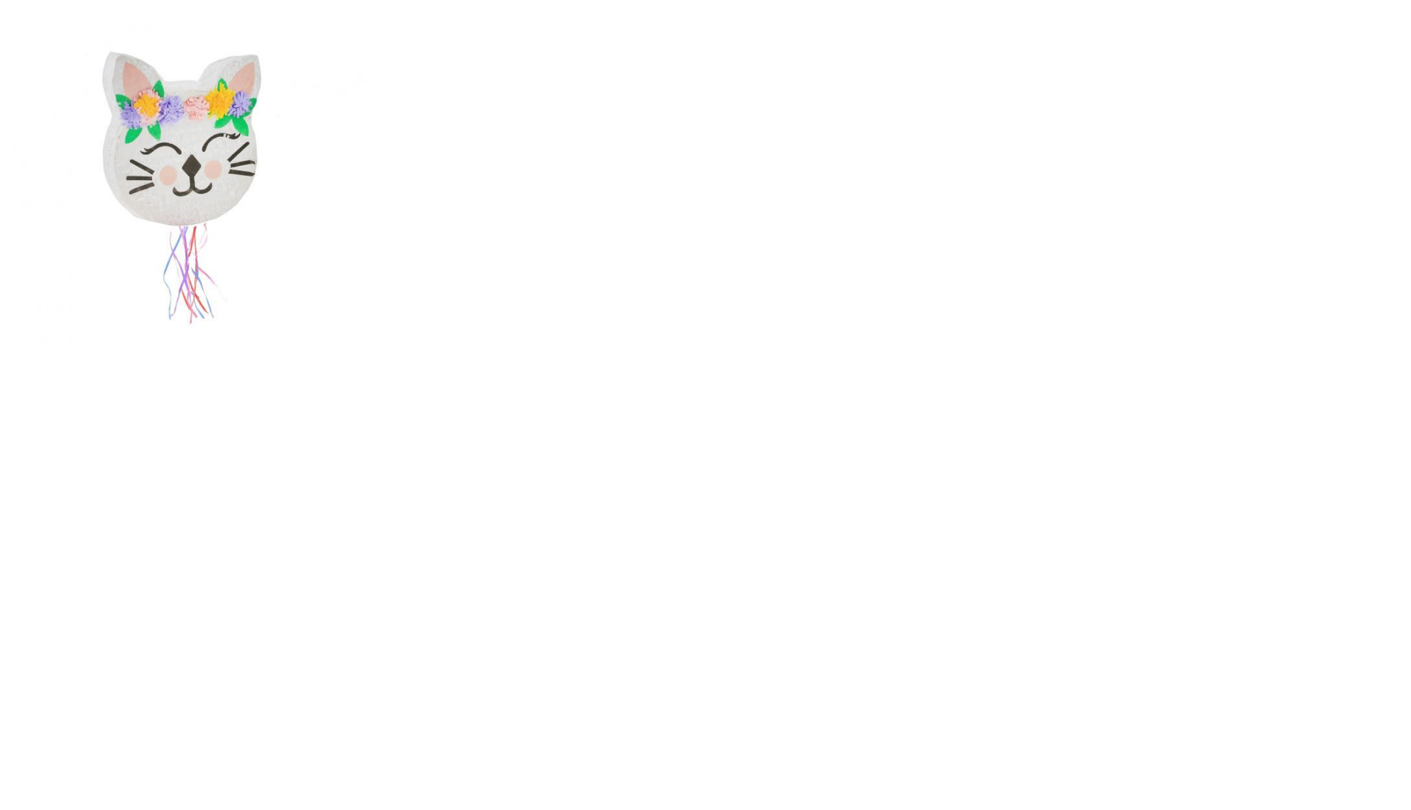 Virágokkal díszített cica, megtölthető pinata születésnapi bulikra.