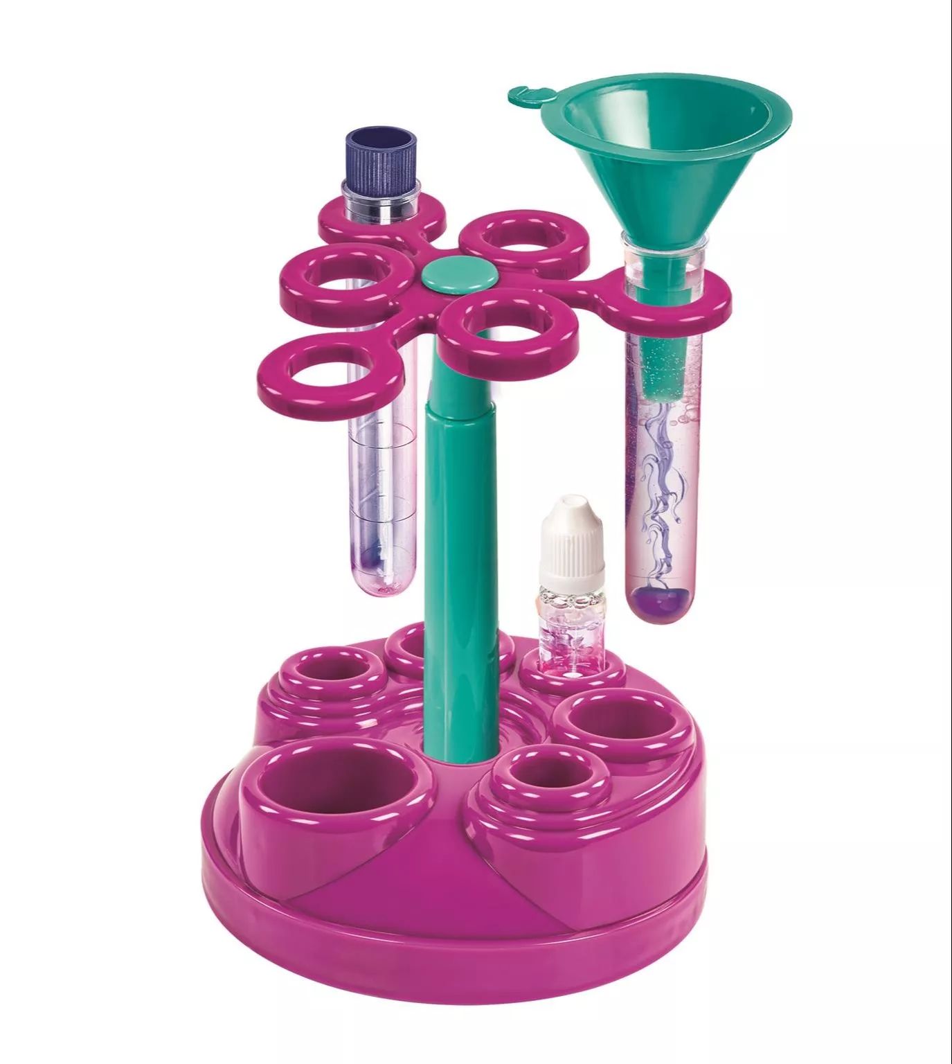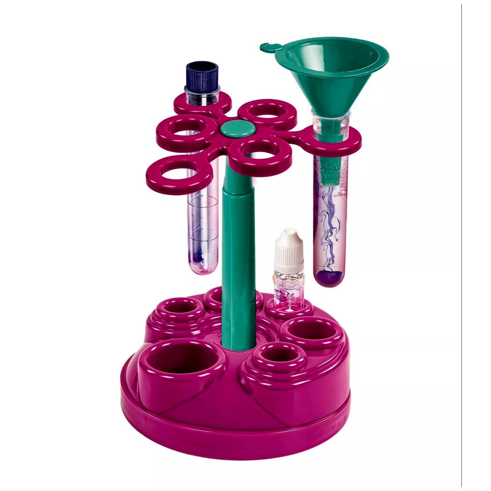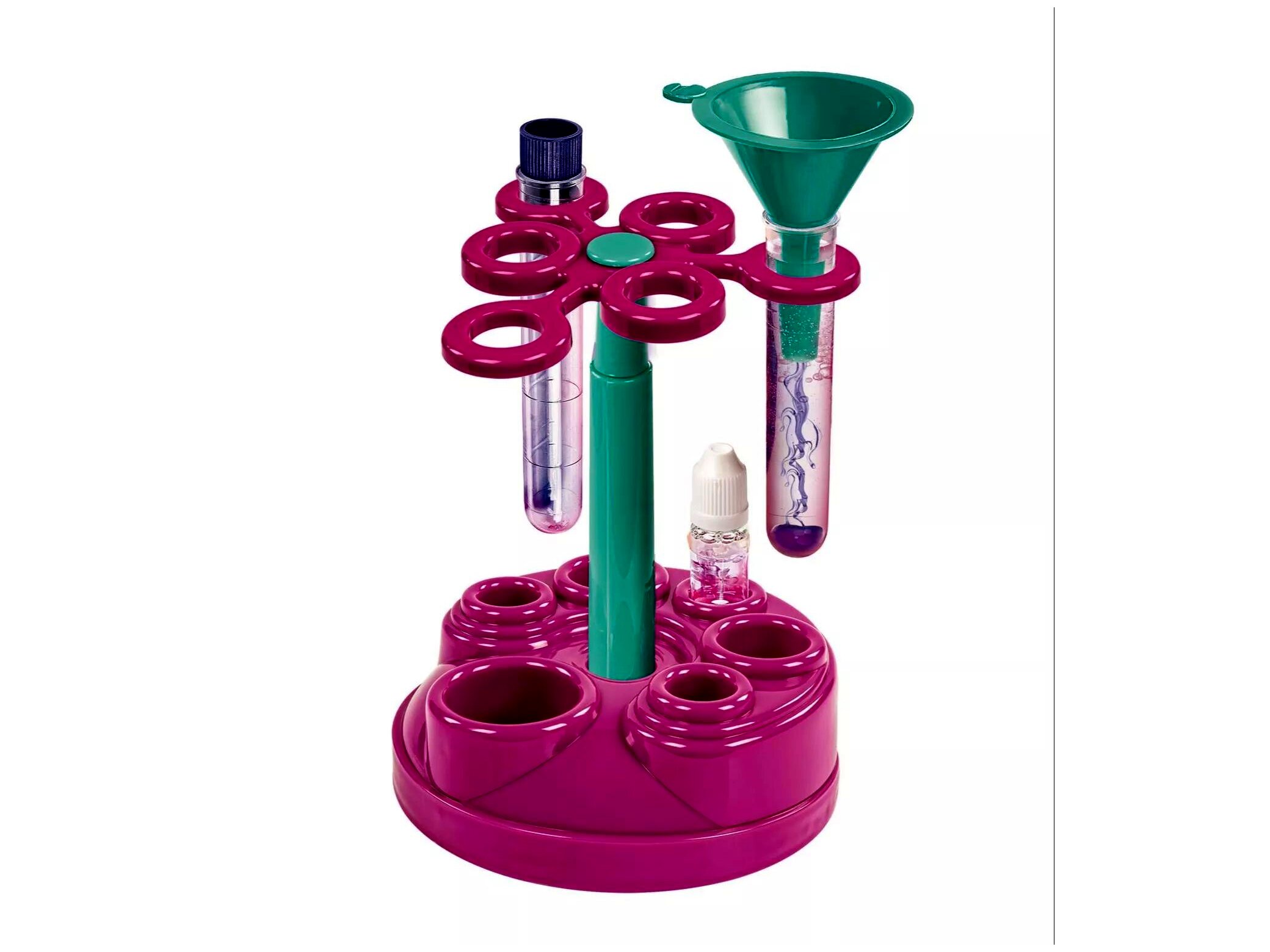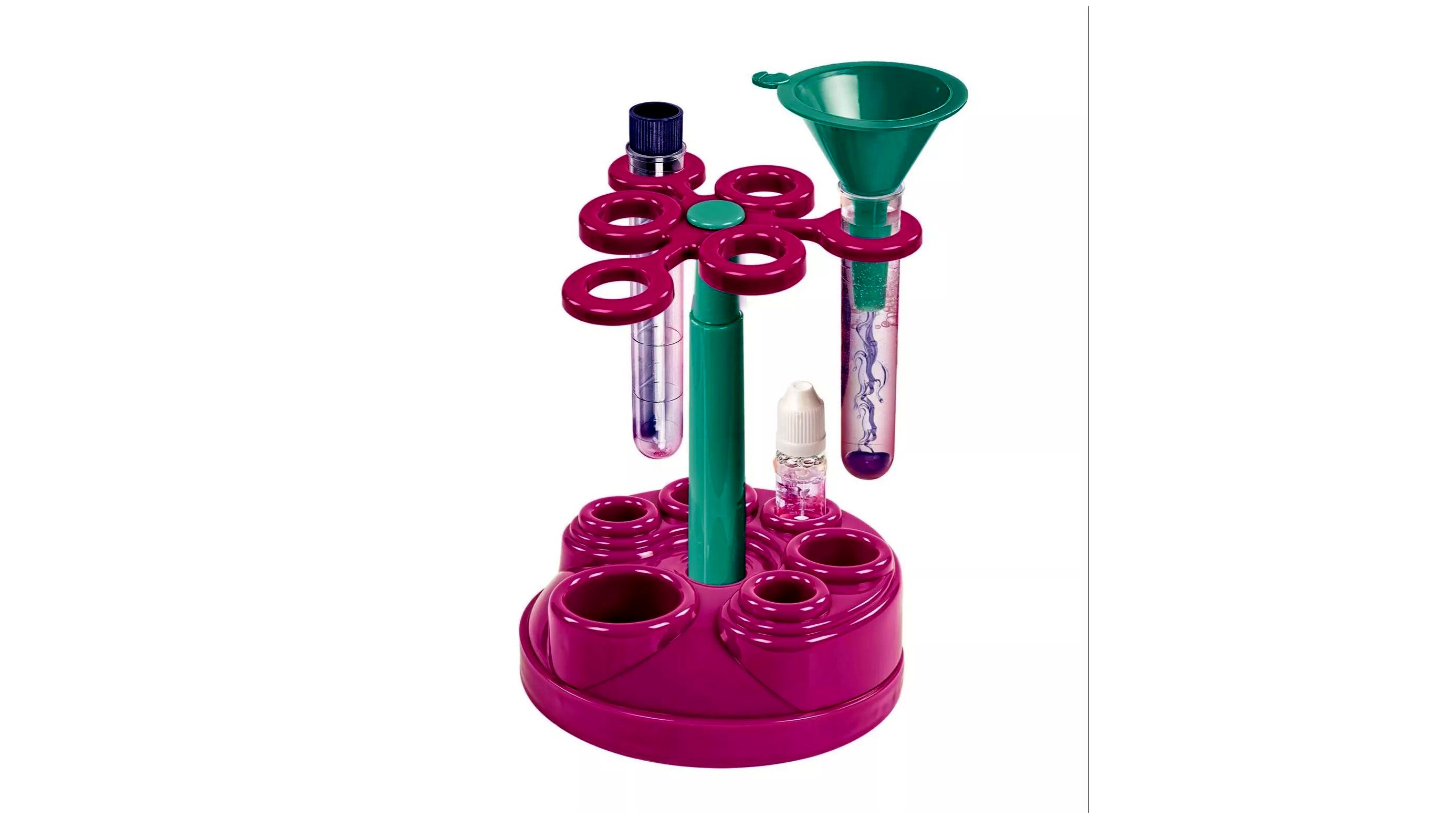 A forgó tartószerkezet praktikus segítség, amikor több eszközzel és flakonnal dolgoznak a gyerekek. Átláthatóbbá teszi a kísérletezést, és hozzájárul a nyugodtabb, kevésbé „szétszórt” használathoz.