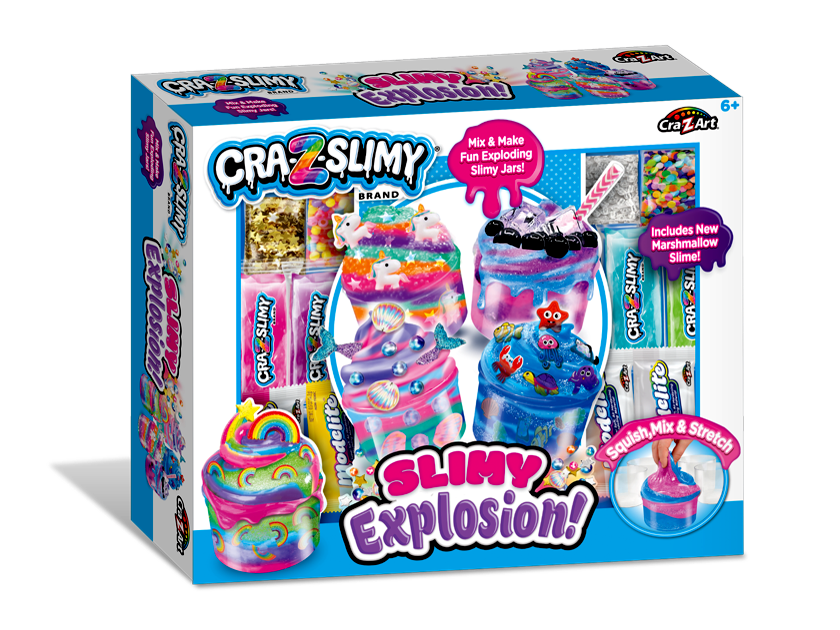 Fedezd fel a kreativitás és a színek világát a Cra-Z-Slimy: Slimy Robbanás készlettel! A gyerekek imádni fogják a különféle színes slime-ok keverését és nyújtását, ami nemcsak szórakoztató, de fejleszti a finommotorikát és a kreativitást is.