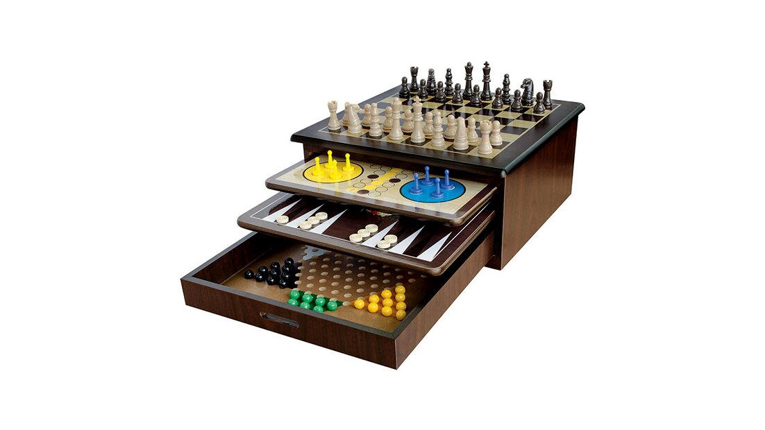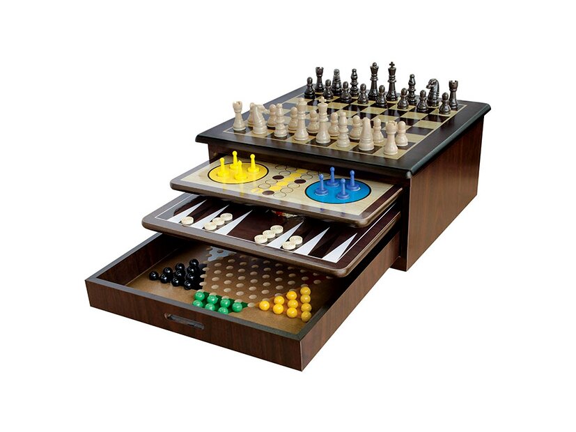A Craftsman Deluxe táblás játékgyűjteményben 10 db társasjáték kapott helyet egy elegáns fa dobozban.