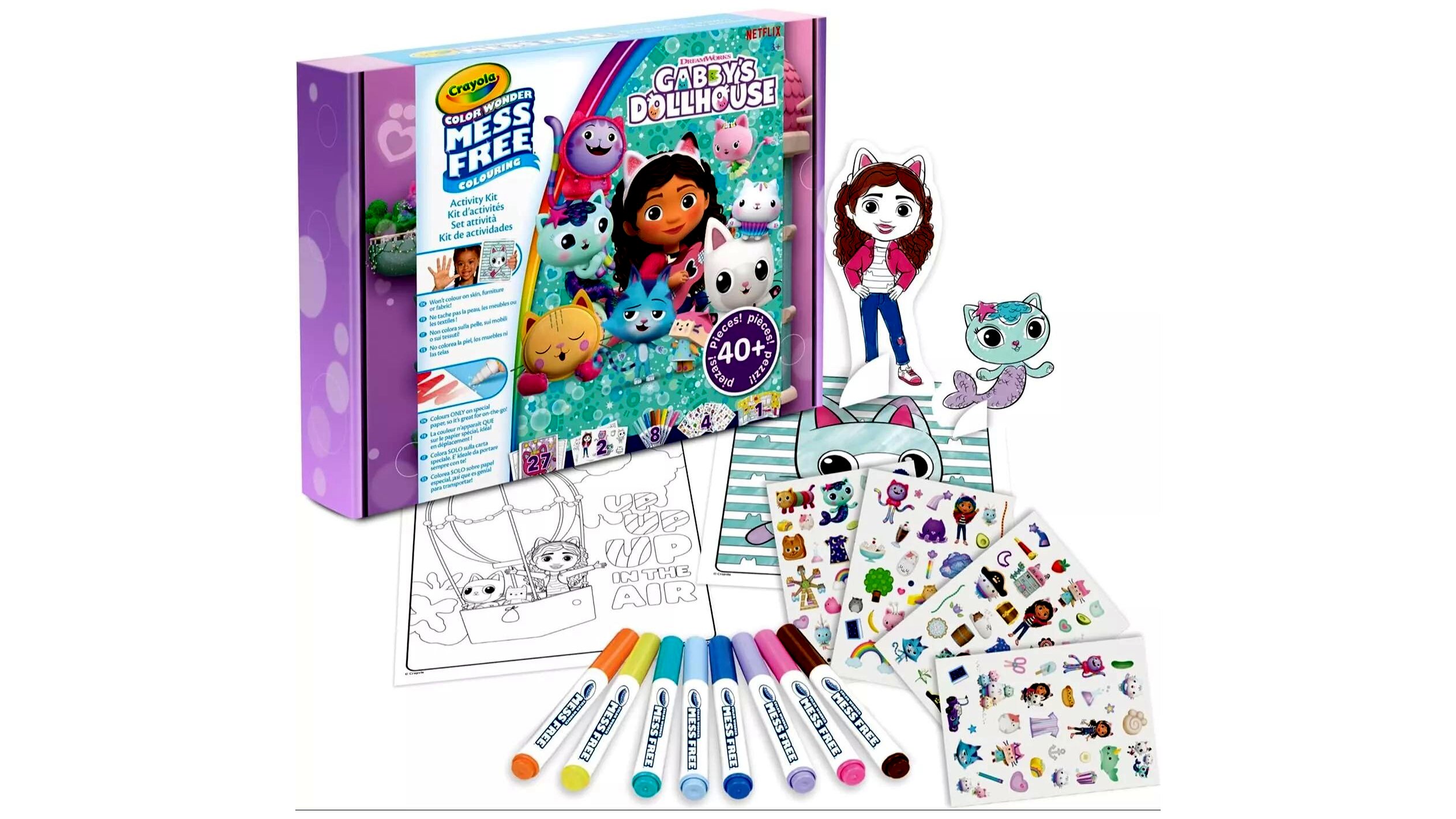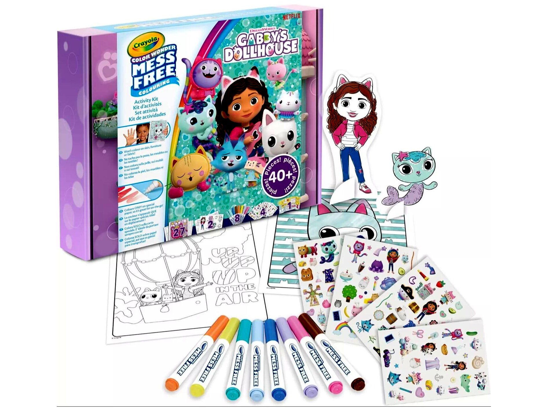 A Crayola Color Wonder maszatmentes filctolakkal rendetlenség nélkül alkothatnak a gyerekek. Hogyan? A Color Wonder tinták csak a speciális Color Wonder papíron jelennek meg - bőrön, ruhán vagy bútorokon nem hagynak foltot. A Gabi babaháza Color Wonder színezővel rengeteg cicasztikus kalandban lehet része a gyerekeknek. A csomagban található többek között 8 darab filctoll, 27 darab színezőoldal és 4 darab matricaív is.Csomagolás mérete: 25 x 5 x 30 cm