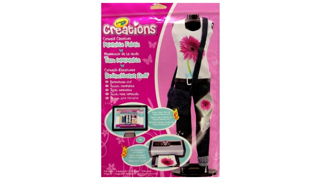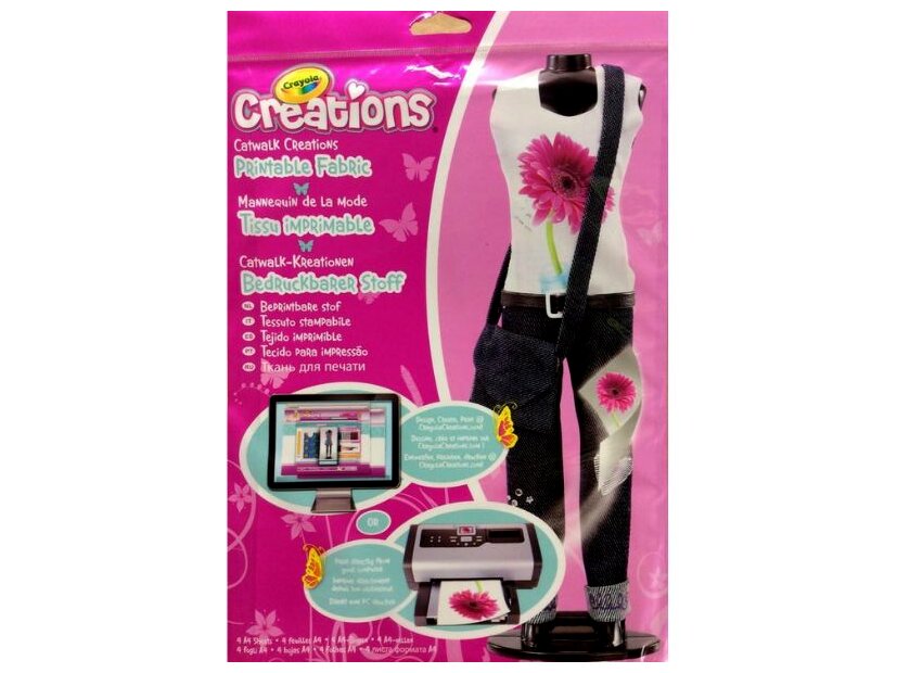 A divattervezõ ruhamintázó csomag A4-es méretû, nyomtatható textileket tartalmaz, amire a lányok egyedi ruhamintákat tudnak kinyomtatni, majd a ezeket a ruhákra illeszteni. Ezekkel az egyedi mintákkal feldíszíthetik a táskájukat, felsõiket vagy akár a nadrágokat is! A csomagban 4 ív nyomtatható textilmatrica található.A divattervezéshez a Crayola weboldalán található program segítségével különleges mintákat, színeket és sablonokat készíthetnek ötleteikhez.