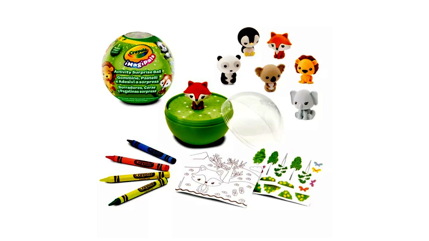 Megérkezett a Crayola ImagiPals kollekciója, amely nem 1, hanem 4 meglepetést is tartogat a gyerekek számára. A csomagban egy állatfigura (oroszlán, pingvin, róka, elefánt, koala vagy panda) rejlik, aki egy újra felhasználható gömbben foglal helyet.