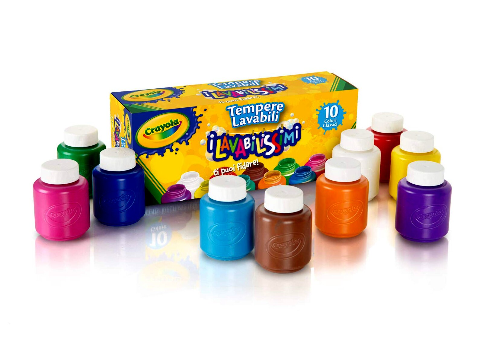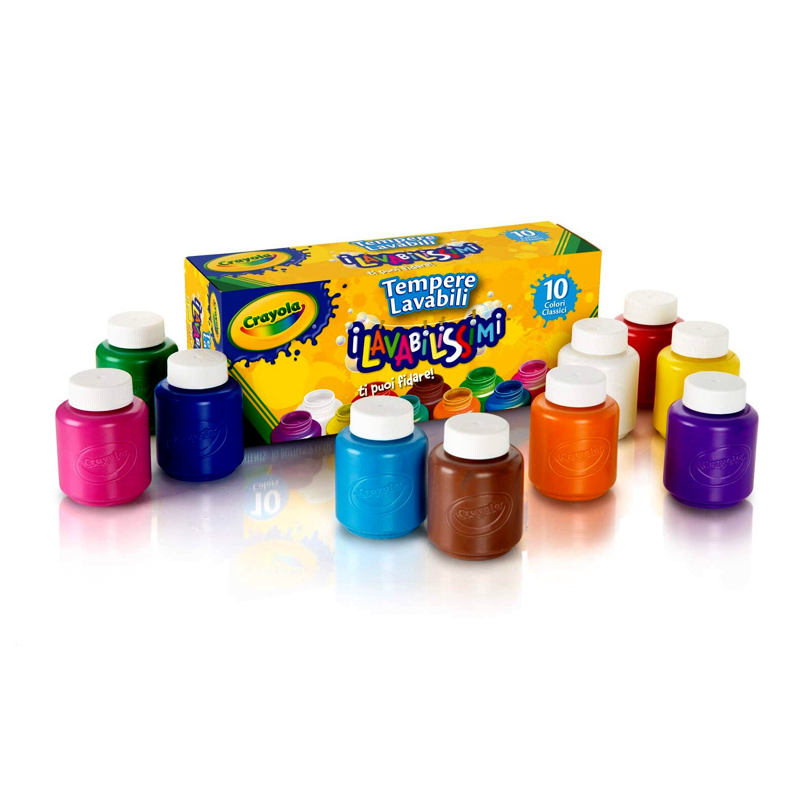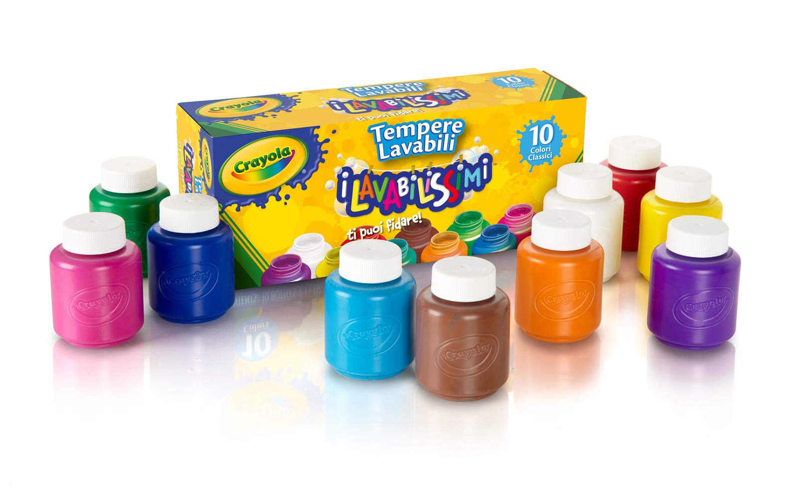Ezeket a festékeket a Crayola kifejezetten kisgyerekeknek fejlesztette ki, hiszen nagyon egyszerû lemosni a bõrrõl, valamint a legtöbb ruhadarabból is könnyen kimosható. A szettben 10 darab különbözõ színû, vízbázisú festék található, amely nagyszerûen használható papíron, kartonon, dobozokon, papírmasén. Alkotásra fel!1 tubus 59 ml festéket tartalmaz.