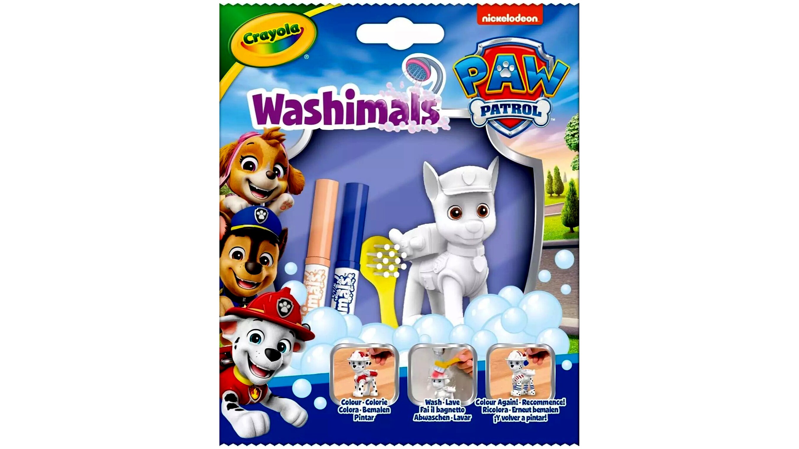 Ebben a Crayola Washimals csomagban egy Mancs őrjárat figura várja, hogy a gyerekek új színt adjanak a kültakarójának. Legyen az Chase, Marshall, Rubble, Skye, Rocky vagy Zuma, egészen biztos, hogy imádni fogja új külsejét.A kicsik szabadon színezhetik, firkálhatják és dekorálhatják a figurát a csomagban rejlő 2 különböző színű Ultra-Clean Washable filctollal. Ha elkészült az alkotás, elég csak lemosni az imádnivaló állatkát, és kezdődhet is elölről a móka! Még szappanra sincs szükség, elég lesz a víz és a csomagban található kis kefe.