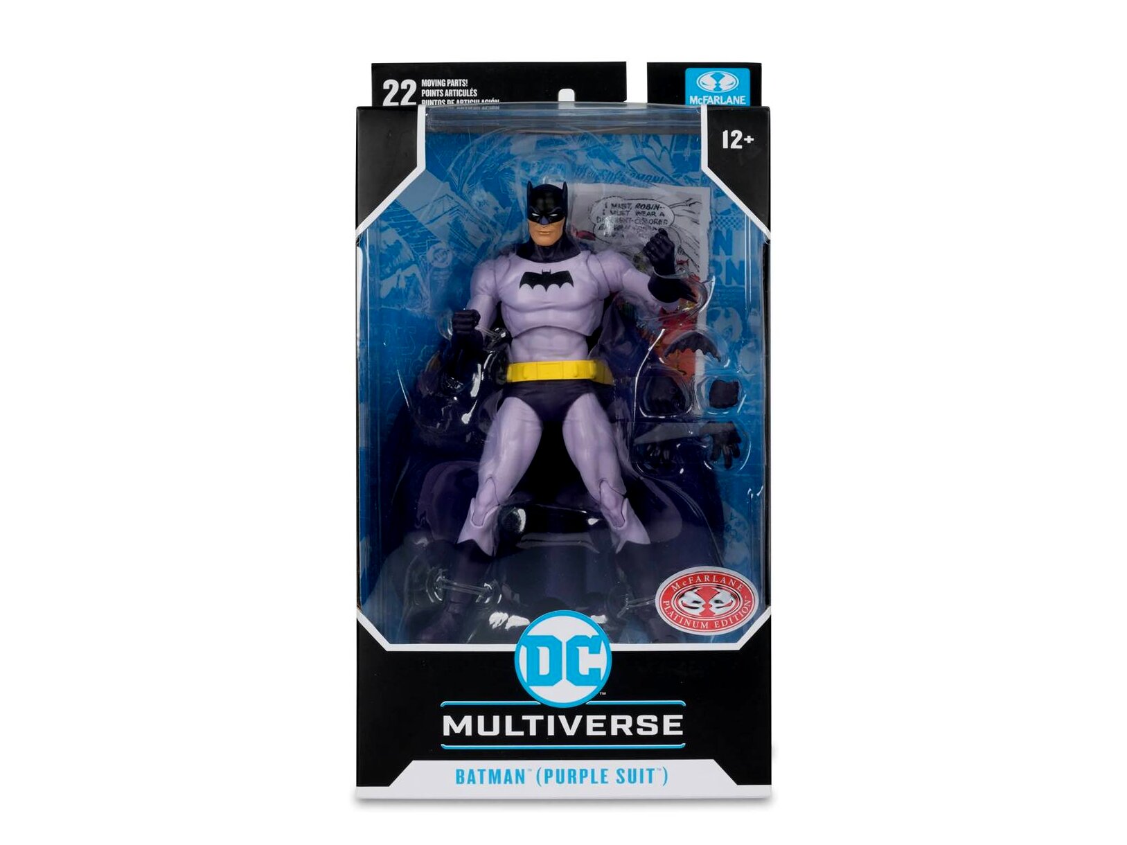 Bemutatjuk a DC Multiverse Batman Lila Ruhás 18 cm-es McFarlane Platinum Edition akciófigurát a Detective Comics alapján.