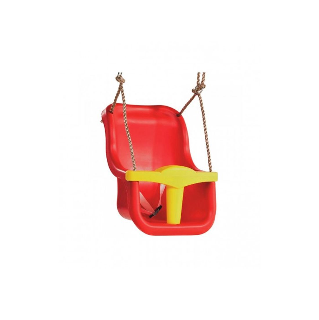 A DeLux biztonsági hinta magasított háttámlája extra védelmet nyújt a hátnak és a nyaknak. A három pontos extra biztonsági öv és galvanizált acélt karikák gondoskodnak a tökéletes kényelem mellett a mindenkori biztonságról.