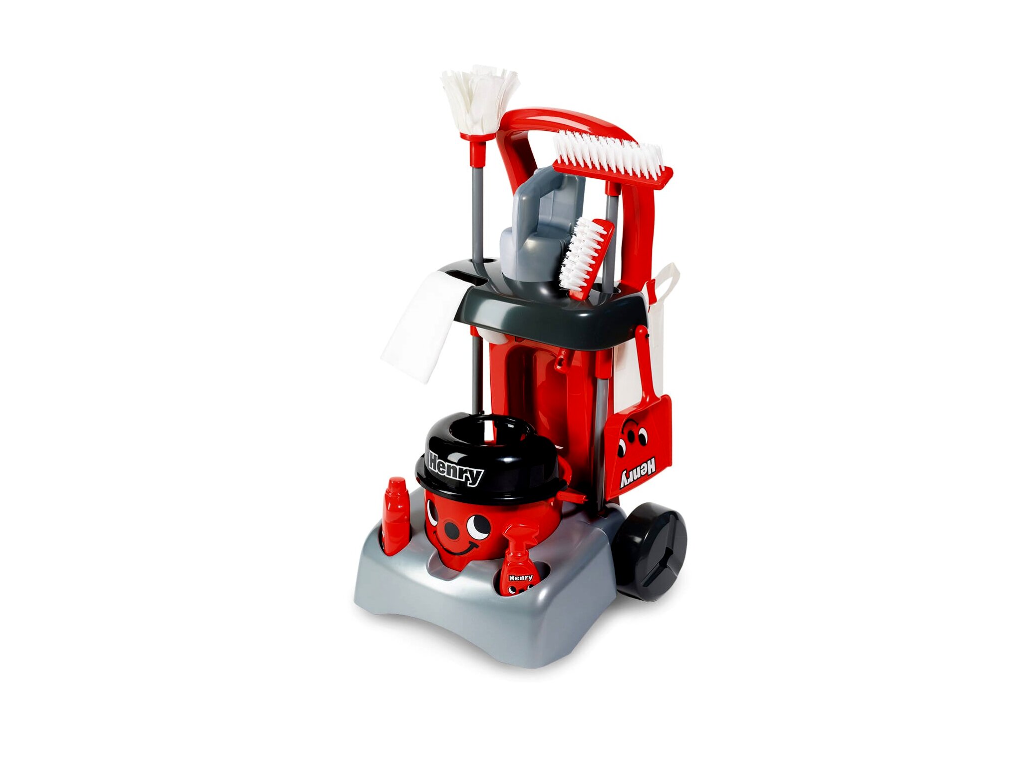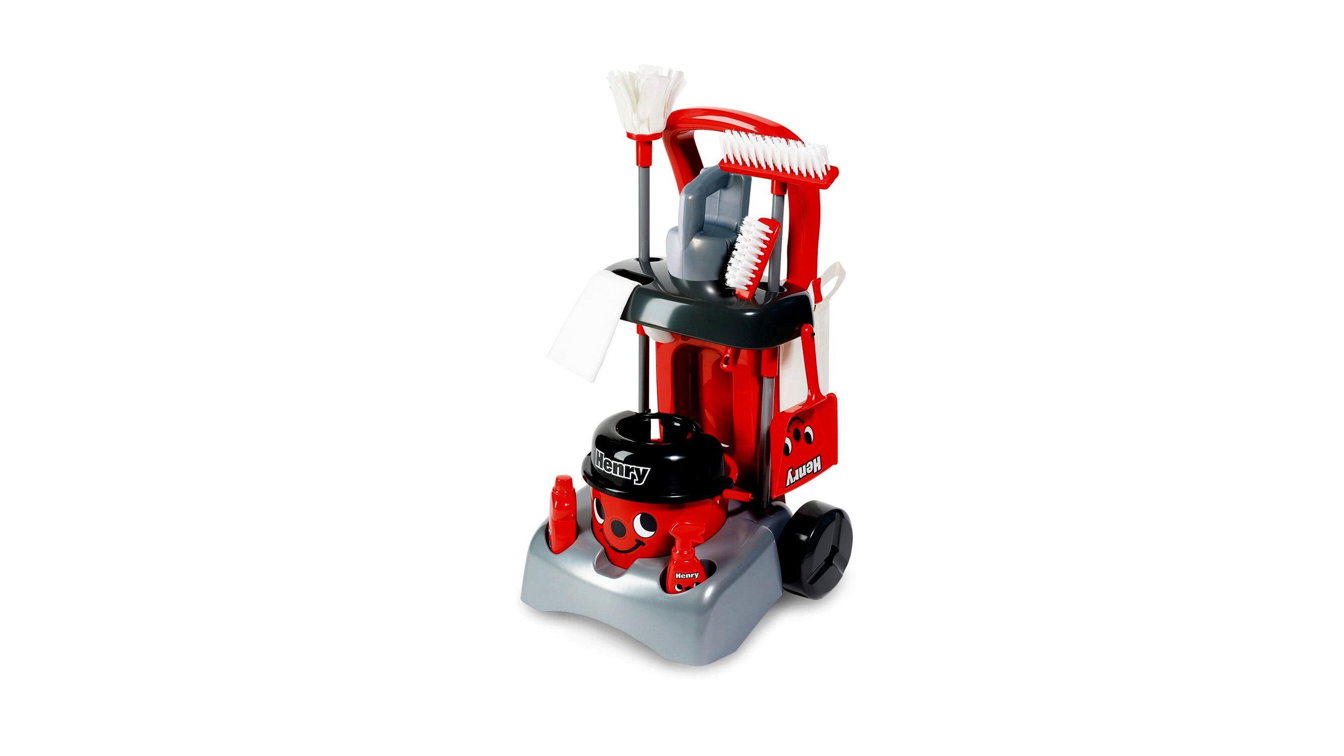 Ebben a szettben megtalálható minden, amire csak szüksége lehet egy takarítani vágyó gyereknek - és még Henry cuki arca is a vödrön. A kocsit bárhová lehet gurítani a házban.