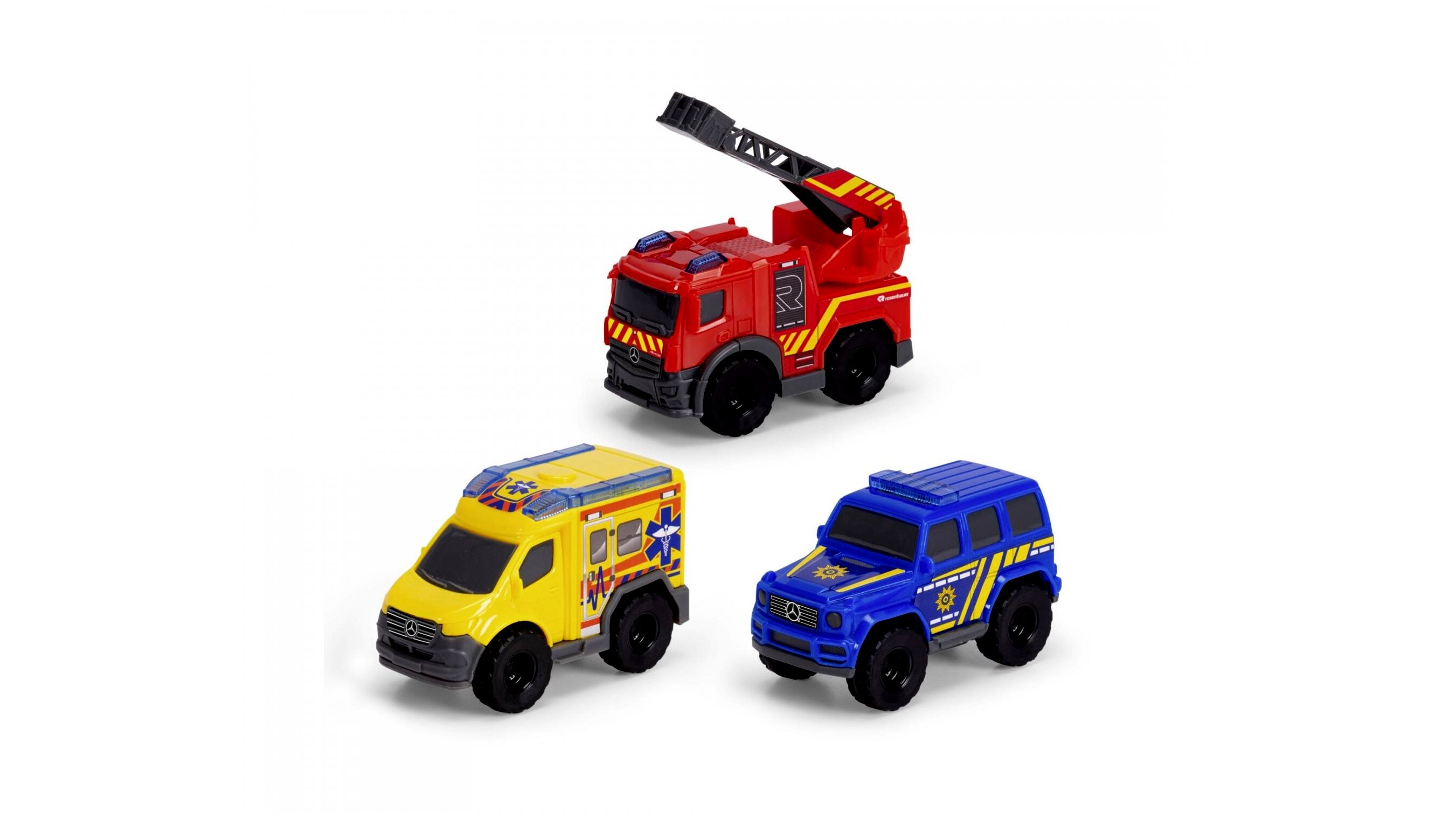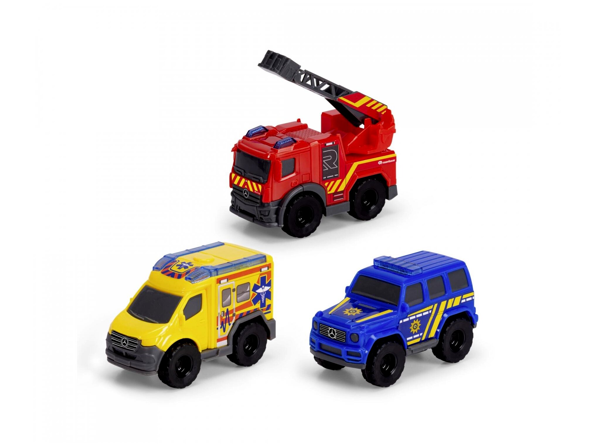 A gyerekek a bajba jutottak segítségére siethetnek ezzel a játékszettel. Míg a kis tűzoltók a tűzoltóautóval a legnagyobb lángokat oltják, addig a nyomozók a rendőrautóval a gyanúsítottak után siethetnek, a mentőautóval pedig az orvoscsemeték meggyógyíthatják a sebesülteket. A játékautók mozgatható részekkel rendelkeznek.A játék lehetőséget teremt a szerepjátékra, amely során fejlődik a gyerekek képzelete, fantáziája, kreativitása és kommunikációja.