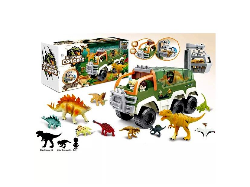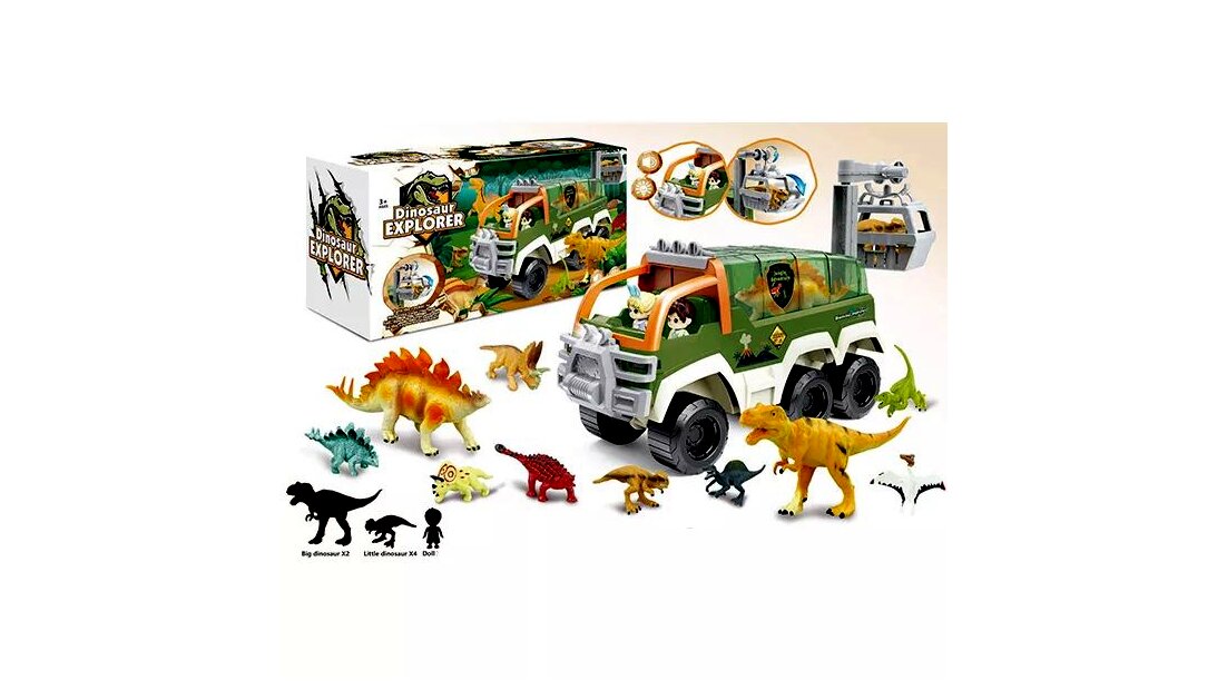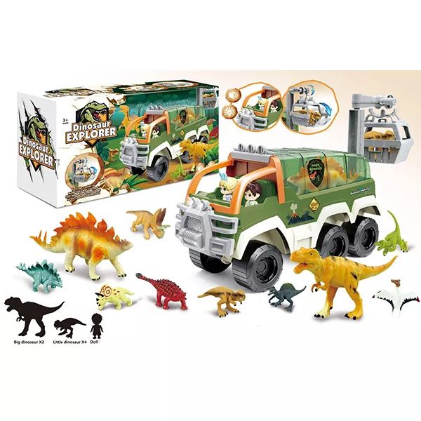 Dinó játékszett egy izgalmas játék, amely lehetőséget teremt a gyermekek számára, hogy felfedezzék a dinoszauruszok világát egy vagány járgánnyal kombinálva.A termék jellemzői:
