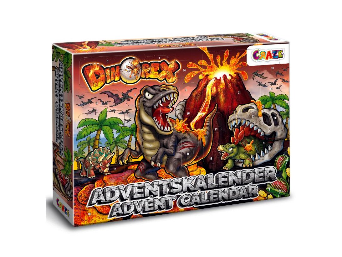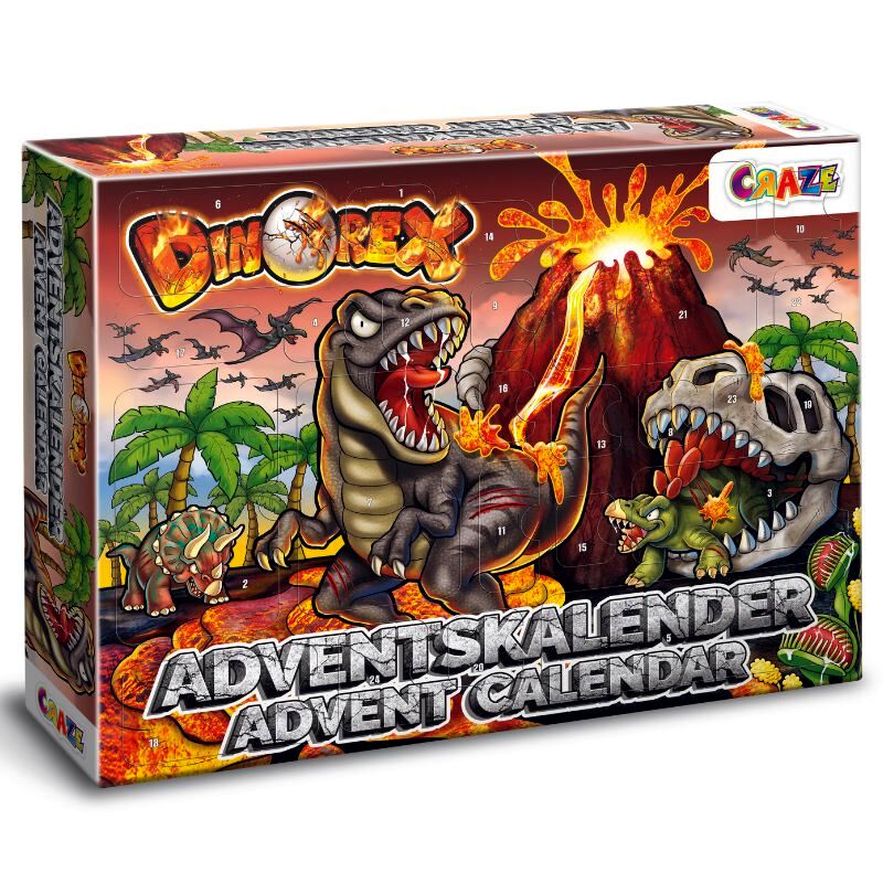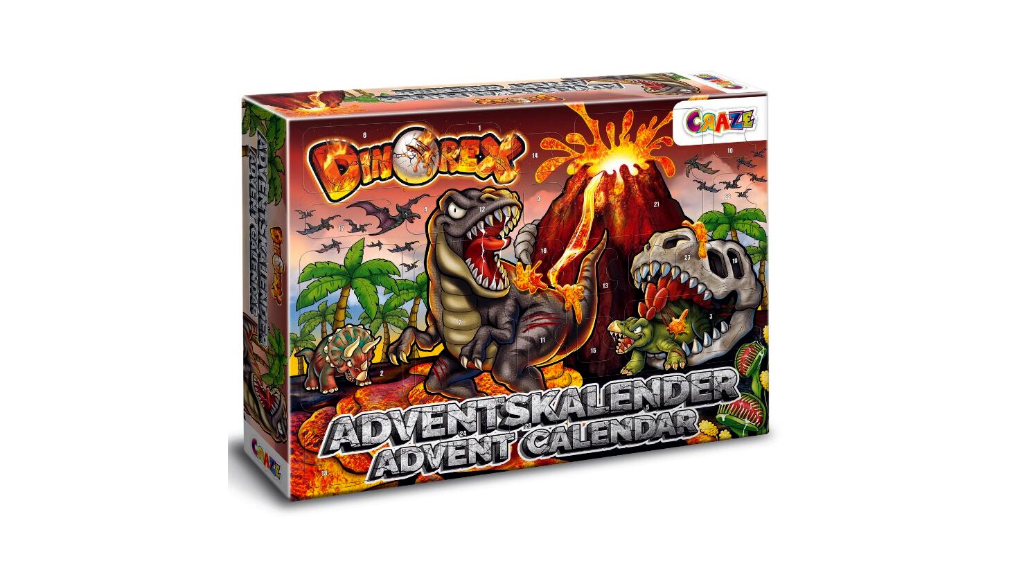 A DinoRex adventi naptárral a dinoszauruszokért rajongó gyerekek számára valódi élménnyé varázsolható az adventi készülődés időszaka. A kalendáriummal december elsejétől kezdve minden nap egy-egy új, dinókhoz kapcsolódó játékelemmel gazdagodhatnak a lurkók.A dobozban több csomag varázshomok, slime, dinoszaurusz figurák, matricák, dinókoponya, és egy összeállítható vulkán is található, amelynek segítségével a kicsik eljátszhatják, ahogyan az őshüllők elmenekülnek a kitörő vulkán forró lávája elől. A dinókoponya világít a sötétben.