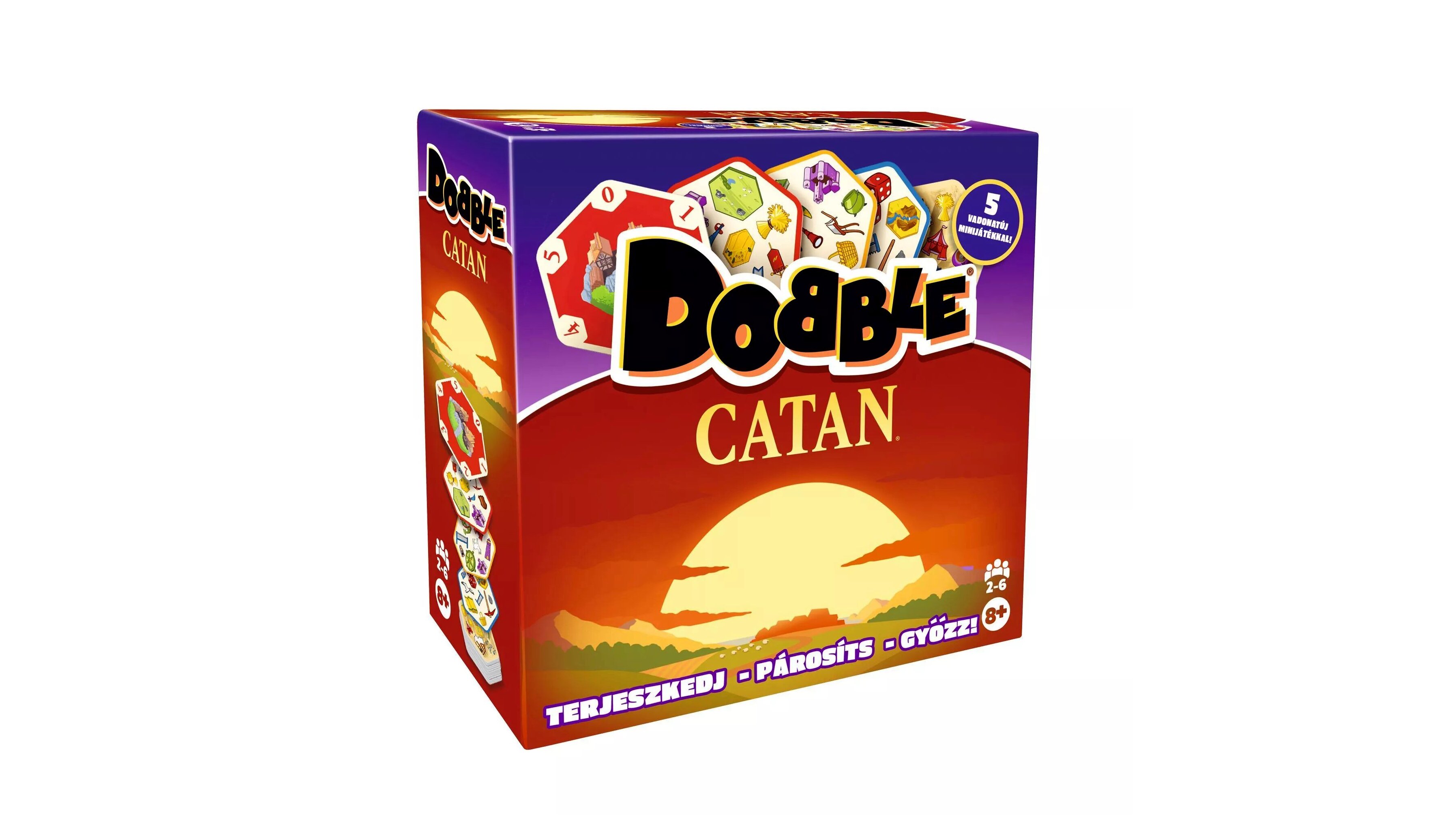 A Dobble Catan egy különleges társasjáték, amely a világ egyik legkedveltebb családi stratégiai társasjátéka, a Catan világát, és a reflexekre épülő, közkedvelt Dobble partijáték gyorsasági mechanikáját hozza össze.