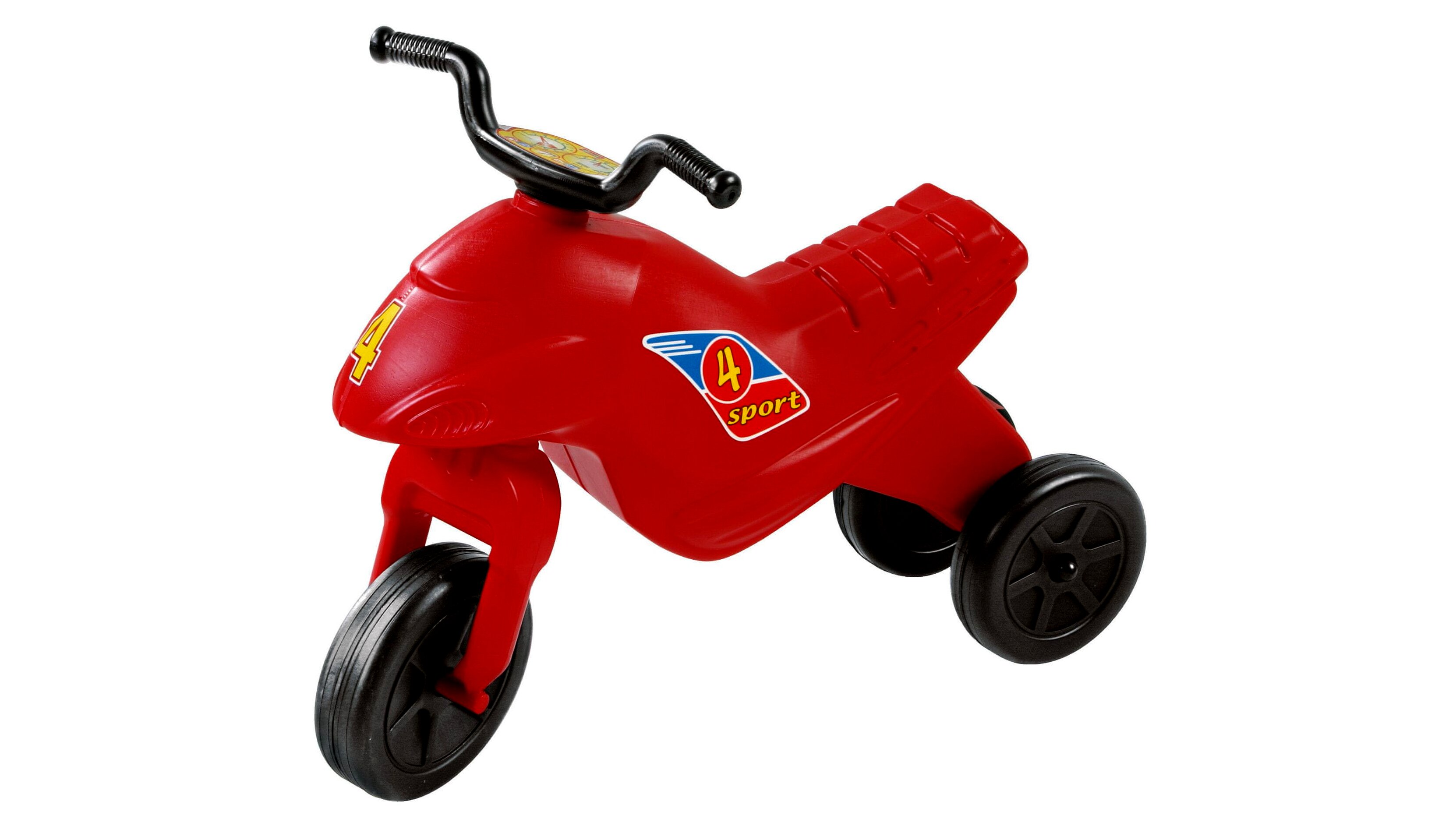 Vagány, egyszerű felépítésű, műanyagból készült, lábbal hajtós kismotor.