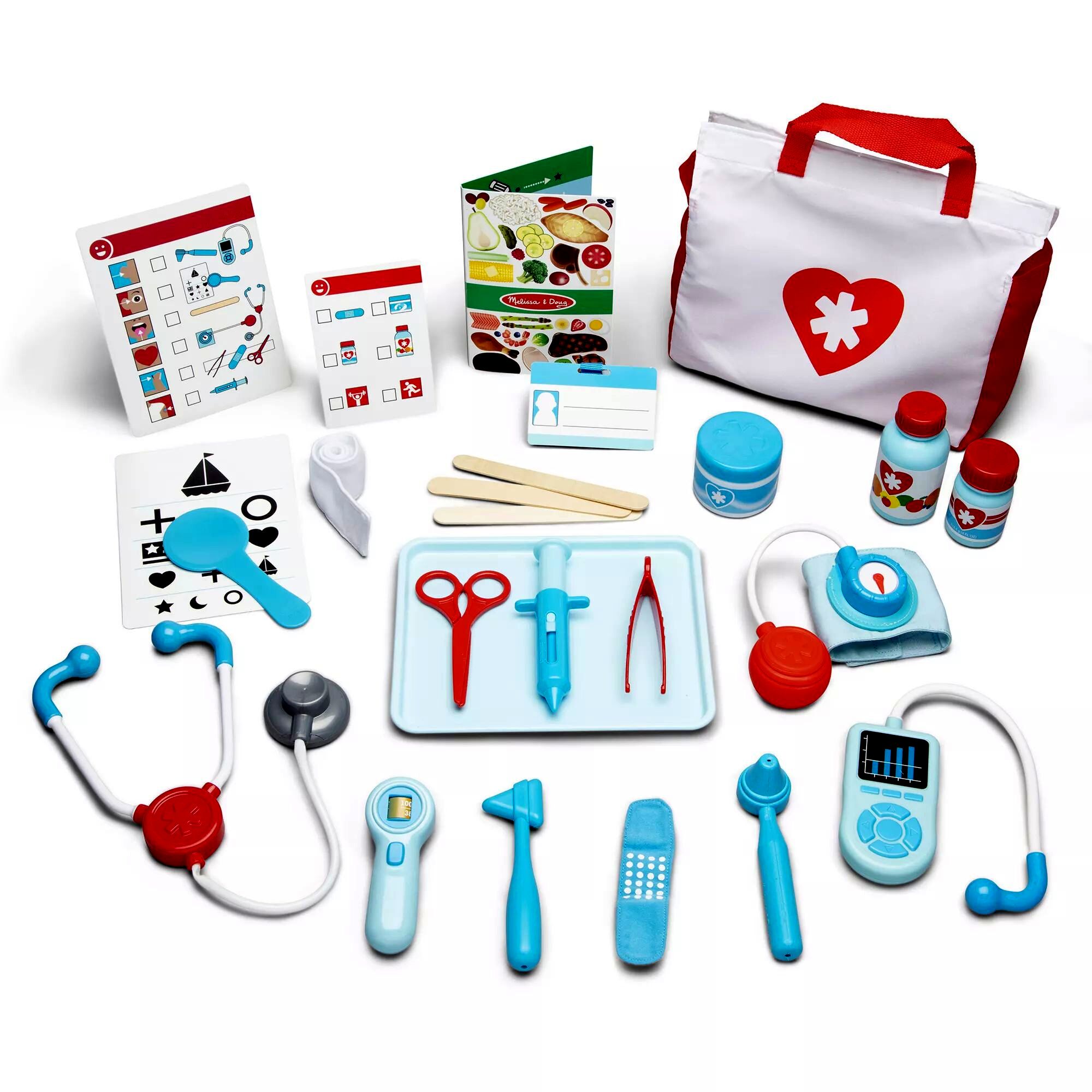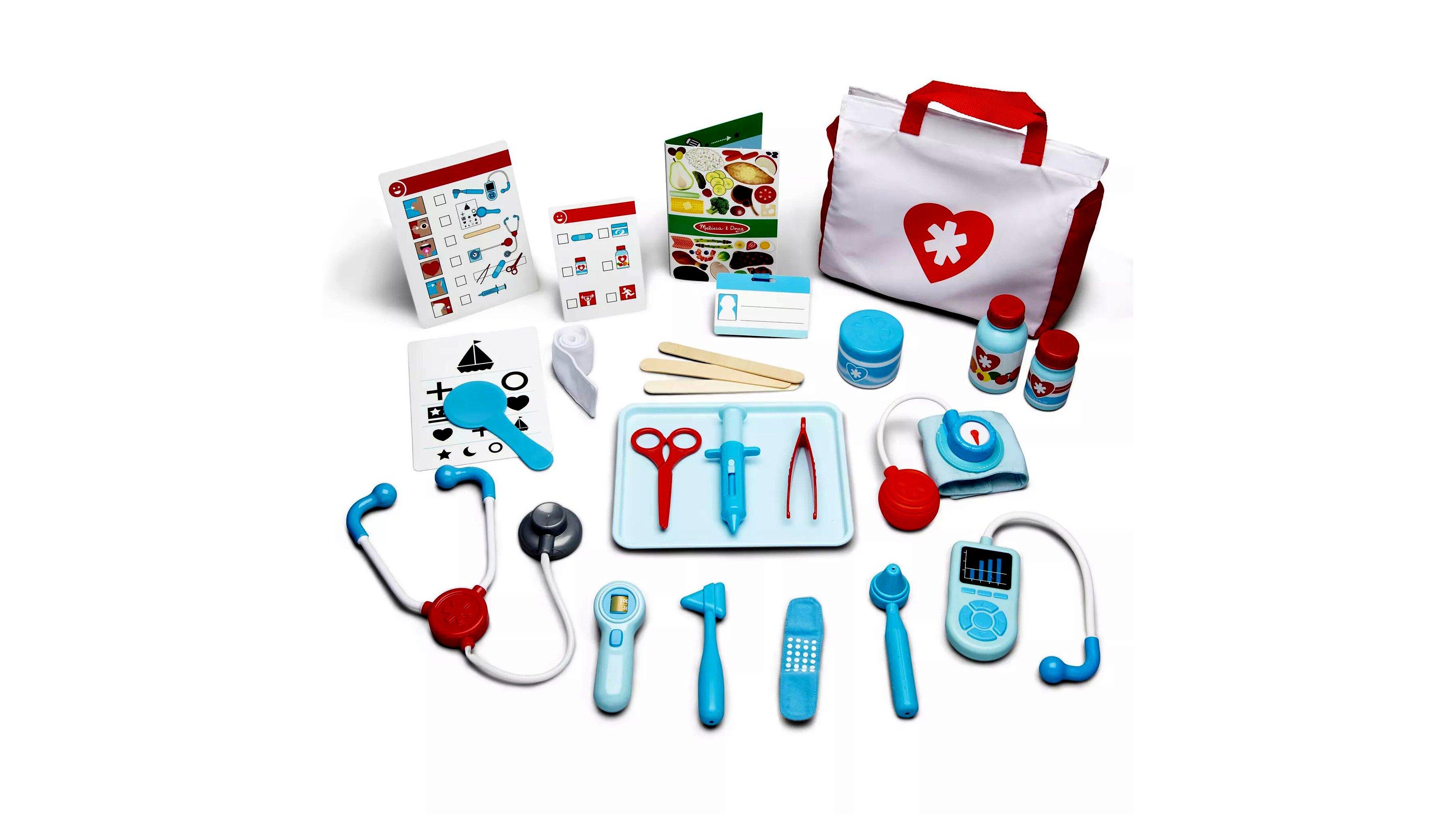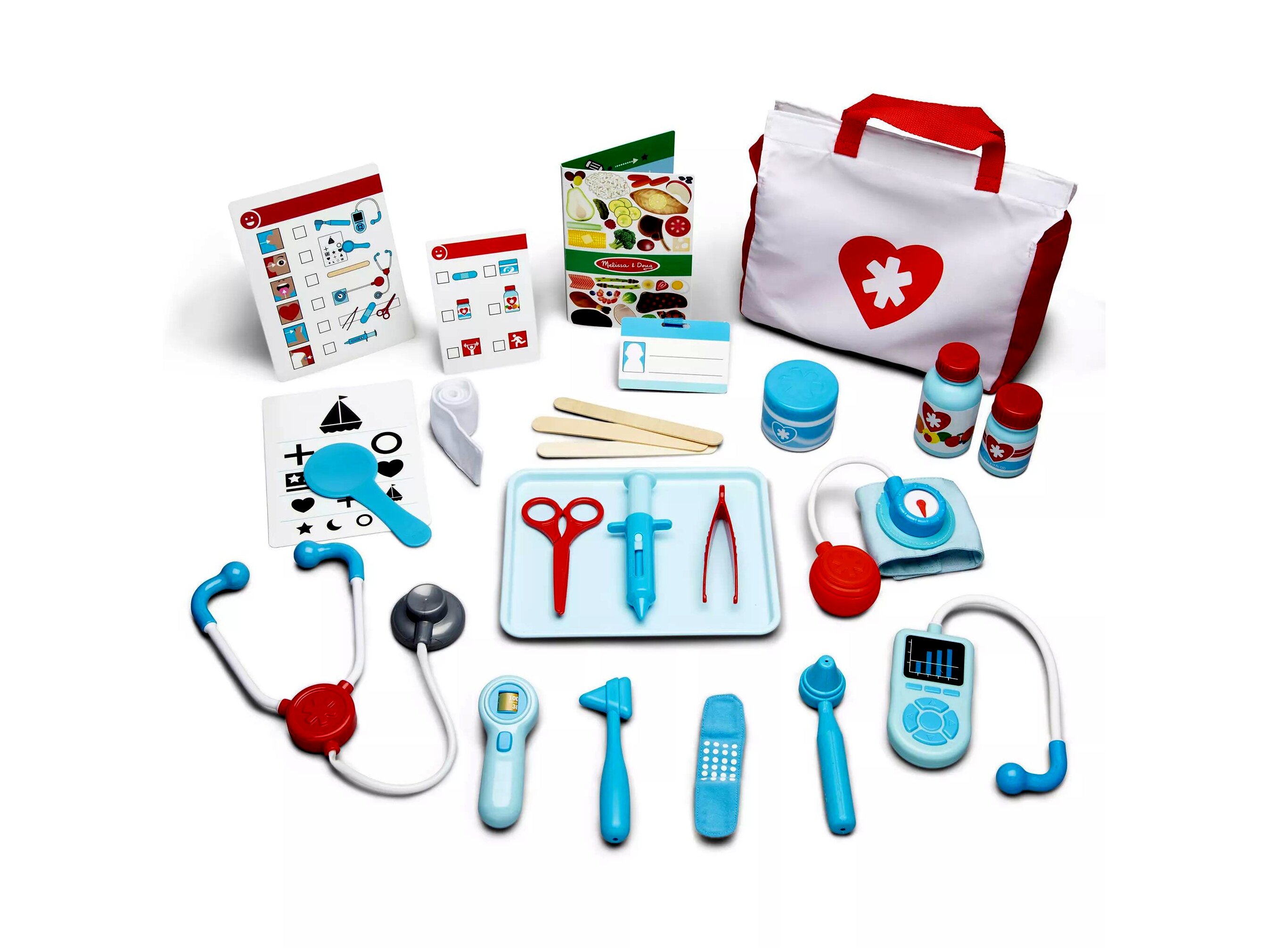 A készlet lehetőséget ad a gyerekeknek, hogy megtanulják, hogyan ellenőrizzék a hőmérsékletet, szívverést, vérnyomást, valamint a látás és a hallás állapotát. A valósághűen kialakított játékeszközök között megtalálható egy fecskendő, játékolló, reflexkalapács, tekerhető vérnyomásmérő, valamint játékpalackok és kötszerek is.