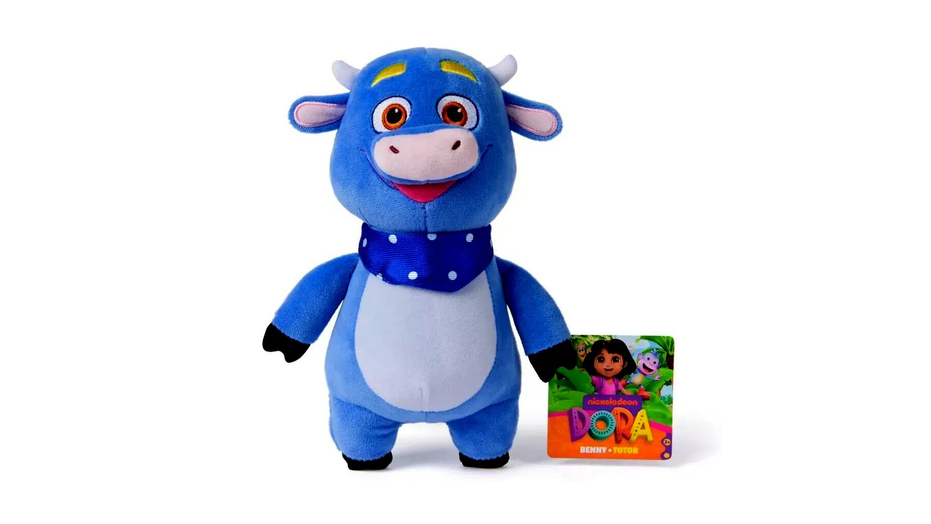 A Dóra, a felfedező mese kedvelt szereplője, Benny puha, ölelhető plüssfigura formájában érkezik, hogy a gyerekek mindennapi játékában és pihenésében is kedves társ legyen. Részletgazdag, sorozathű megjelenését biztonságos, hímzett arckifejezés egészíti ki.