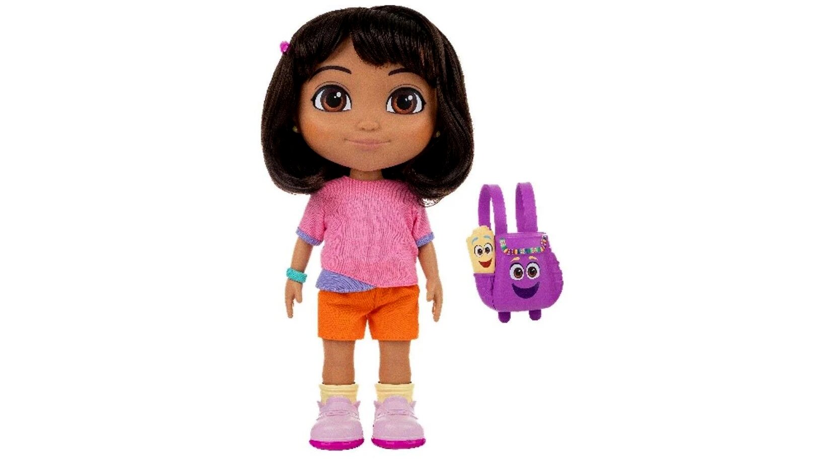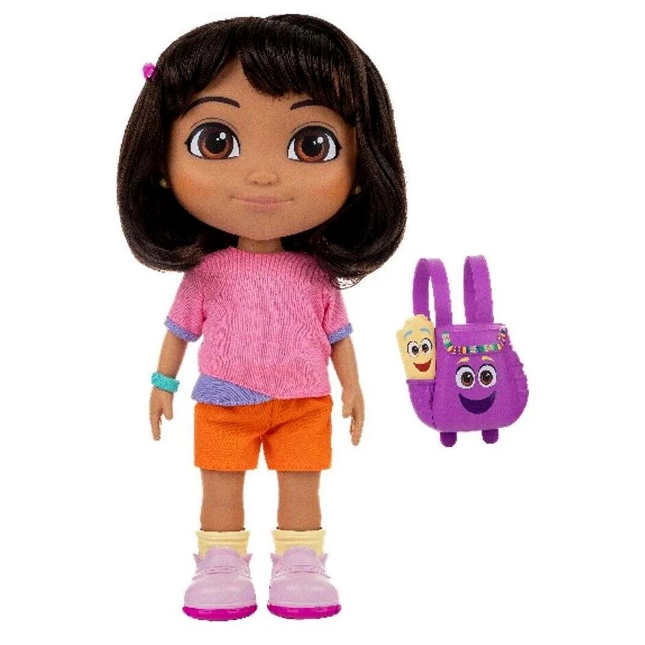 Fedezd fel a kalandok világát a Dóra, a felfedező: Éneklő Dóra babával! Ez a 30,4 cm-es baba mozgatható végtagokkal és élethű hangokkal teszi varázslatossá a játékidőt. A baba mellé olyan kiegészítők is járnak, mint a hajcsat, a karkötő és Dóra ikonikus hátizsákja. Szorítsd meg Dóra hasát, hogy izgalmas zenét és kétnyelvű kifejezéseket hallgass, majd a hátizsákot megnyomva újabb meglepetések várnak!Dóra puha haja ideális a fésüléshez, a levehető cipők és kiegészítők pedig a kreatív öltözködést teszik lehetővé. A készlet tartalmaz egy gyűjthető kártyát is, amely kétnyelvű szóátalakulást mutat be. Tökéletes ajándék minden kis felfedezőnek, aki szereti a kalandos és interaktív játékokat.