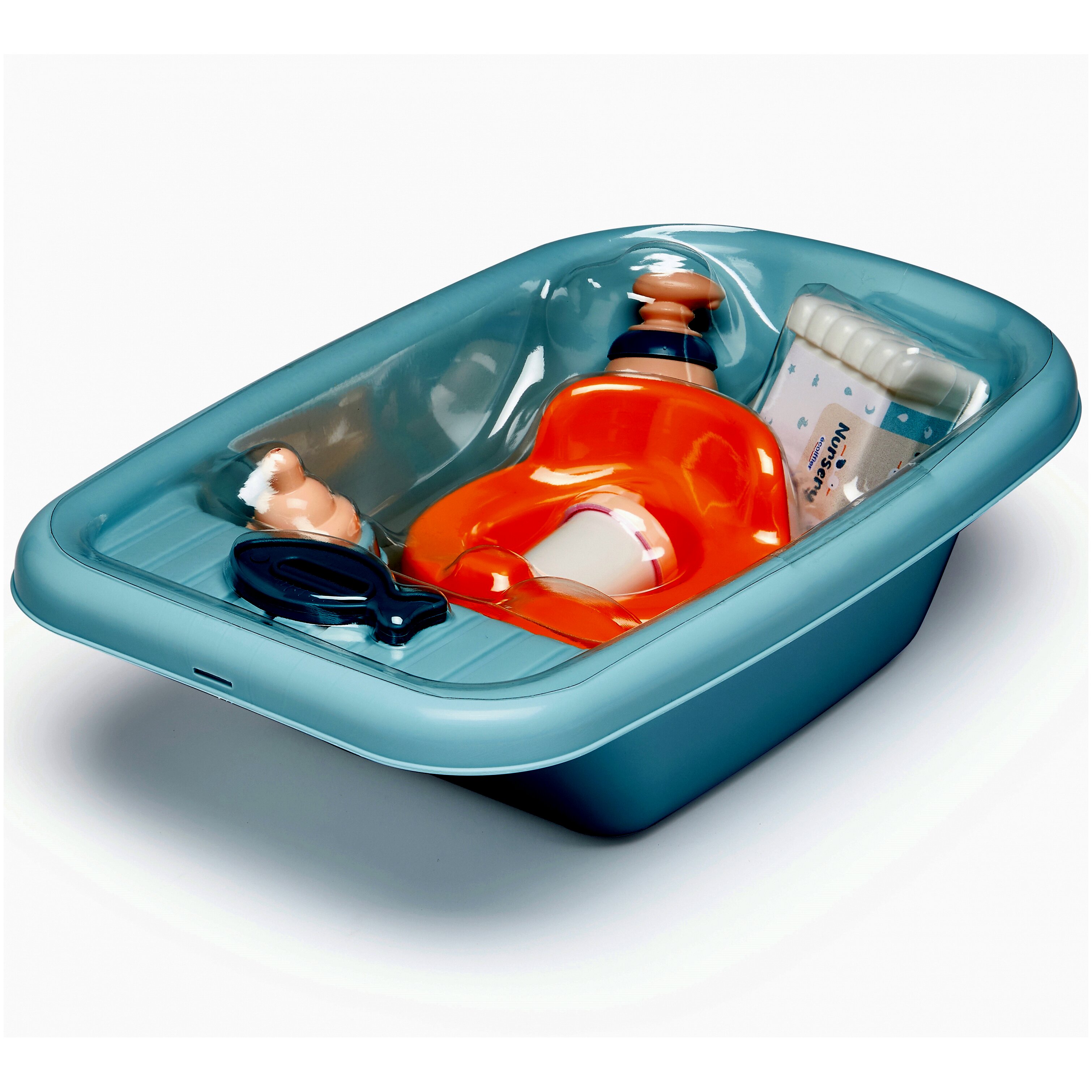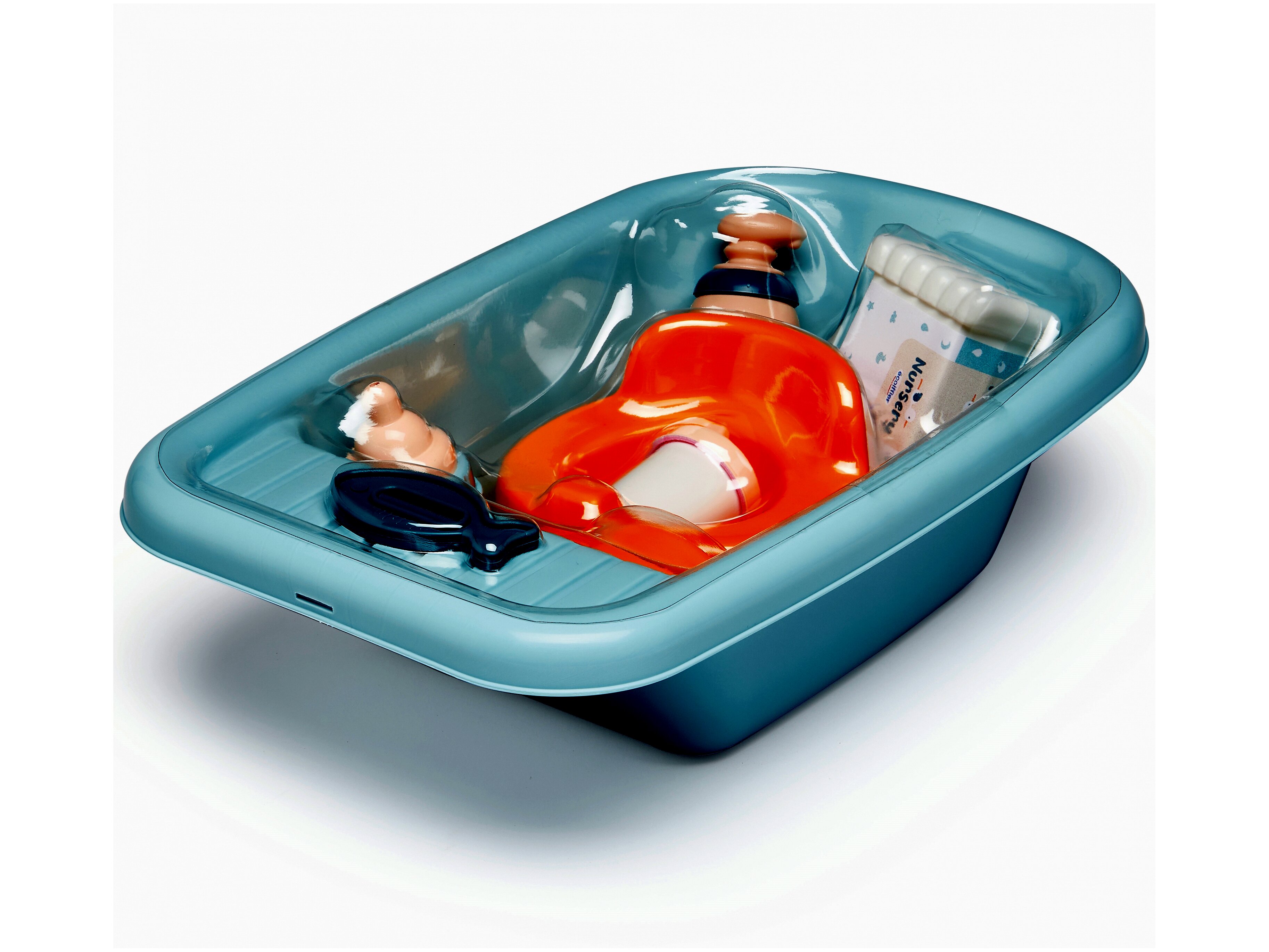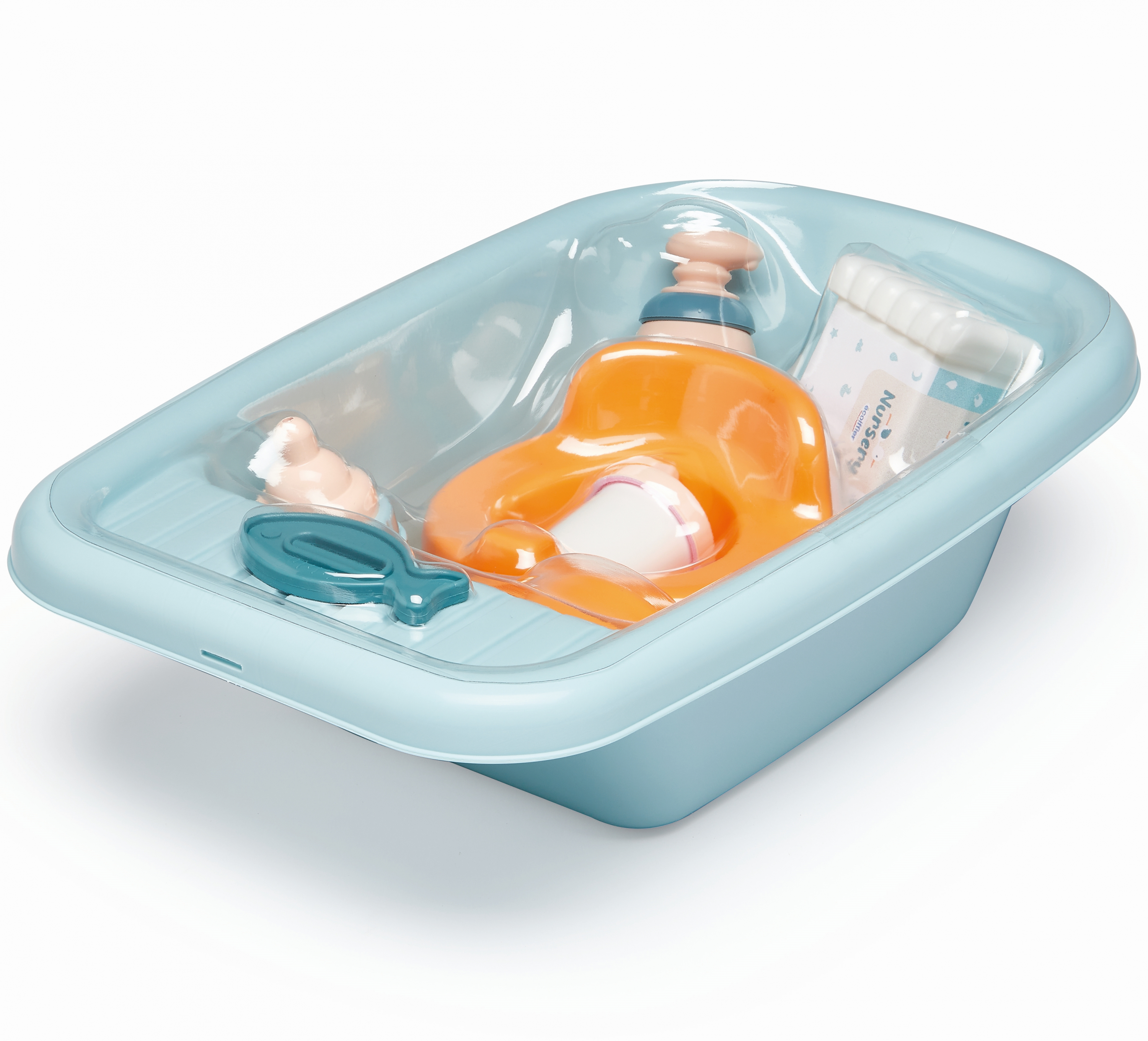 Az Écoiffer babafürdető szettel a gyerekek gondját viselhetik a babáiknak. A kék színű szett segítségével bármikor megfürdethetik őket, a cumisüveggel pedig megetethetik a babákat. A színes, 8 darabos fürdetőszett tartalmaz egy bilit, egy halacska formájú hőmérséklet mérőt, cumisüveget és még sok másik kiegészítőt is, így még élvezetesebb lesz a játék.A játék fejleszti a fantáziát és a képzelőerőt. A „kis anyukák” babájuk gondozásával a felnőttek világát utánozhatják szerepjáték által, így sokat tanulnak a felelősségvállalásról, a szeretetről, önállóságról és a gondoskodásról.
