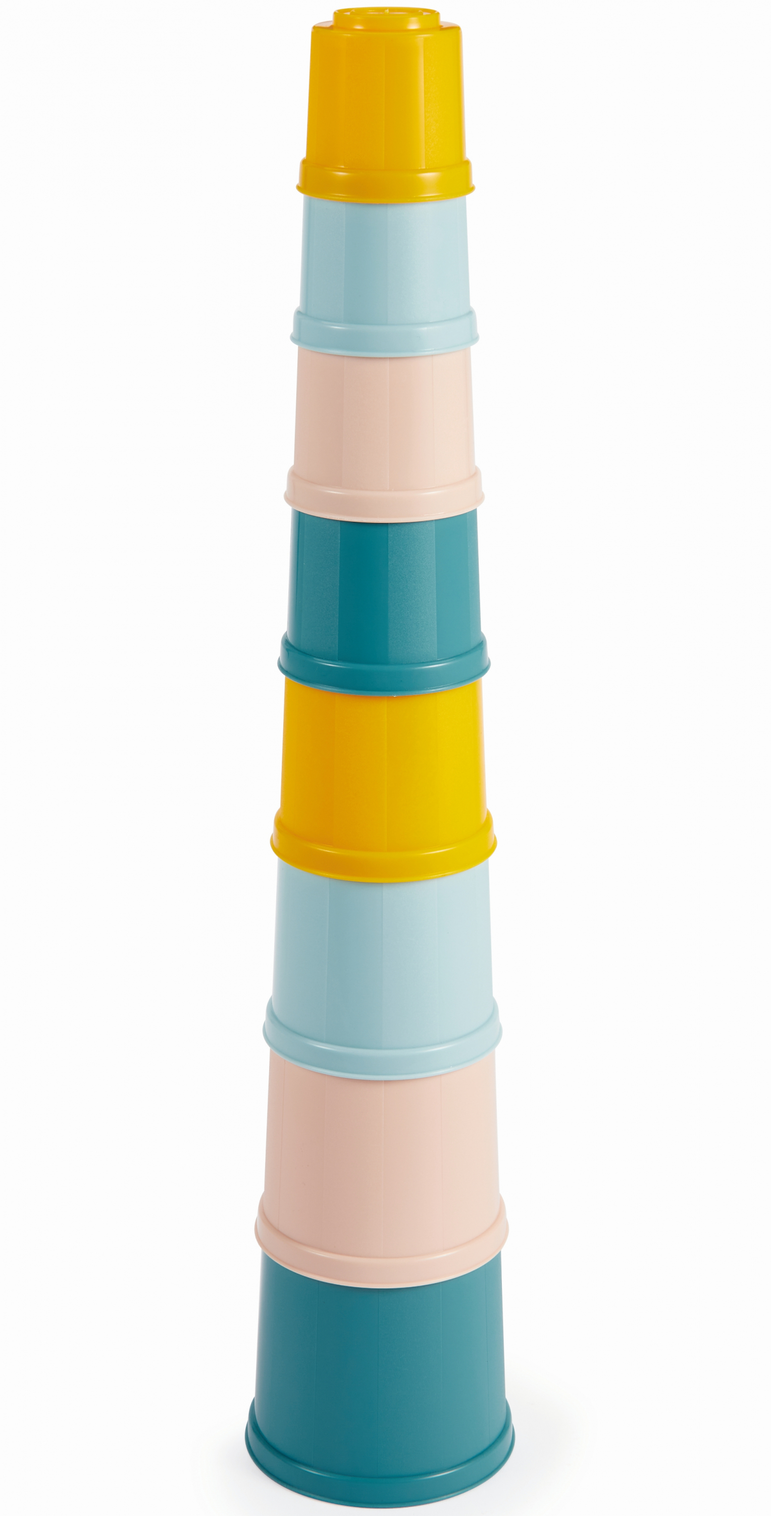 Az Écoiffier BB Abrick csészerakosgató játékával a kicsik játékosan fejlődhetnek a finommotorika, a szem-kéz koordináció, a térbeli tájékozódóképesség és a kreativitás területén.A dobozban 8 darab különböző színű és méretű pohárka kapott helyet, amelyek - kialakításuknak köszönhetően - egyszerűen egymásra és egymásba helyezhetők. A csészék alján különféle, gyerekek számára hívogató szimbólumok (pl. csillag, virág és sokszögek) láthatók, így a kicsik játékosan ismerkedhetnek meg a geometriai alakzatokkal. A pohárkák némelyikének alján lyukak találhatók, így ha a lurkók vizet töltenek beléjük, nézhetik, ahogy a folyadék kifolyik a csésze alján.