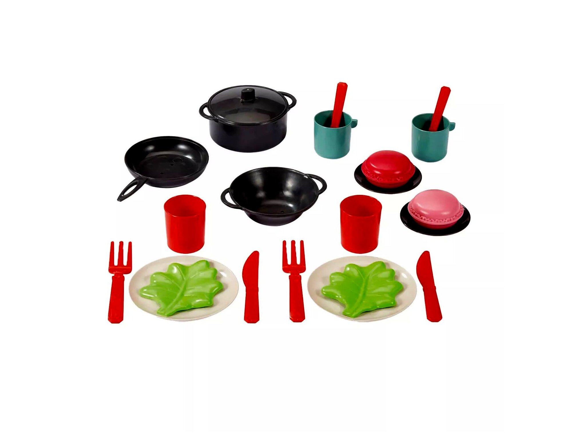Az Ecoiffier 100% Chef teáskészlet egy 22 darabos, színes és tartós műanyagból készült játékkészlet, amely ideális a gyermekek számára, hogy elmerüljenek a szerepjáték világában.A készlet tartalmaz egy teáskannát, csészéket, csészealjakat, kanalakat és különféle süteményeket (mint például cupcake-ek és macaronok), lehetővé téve a kicsik számára, hogy saját teadélutánokat rendezzenek barátaikkal vagy családtagjaikkal.