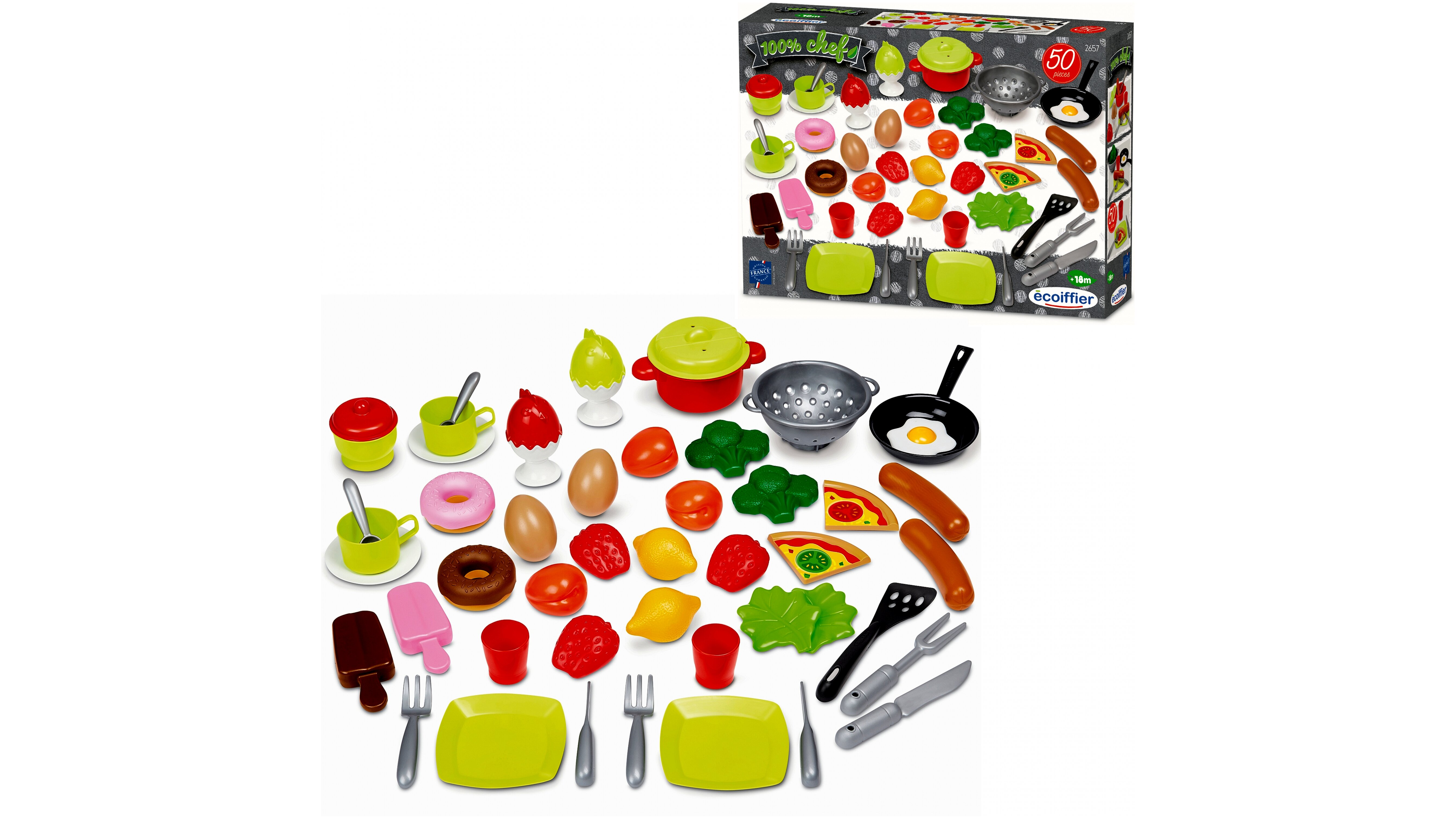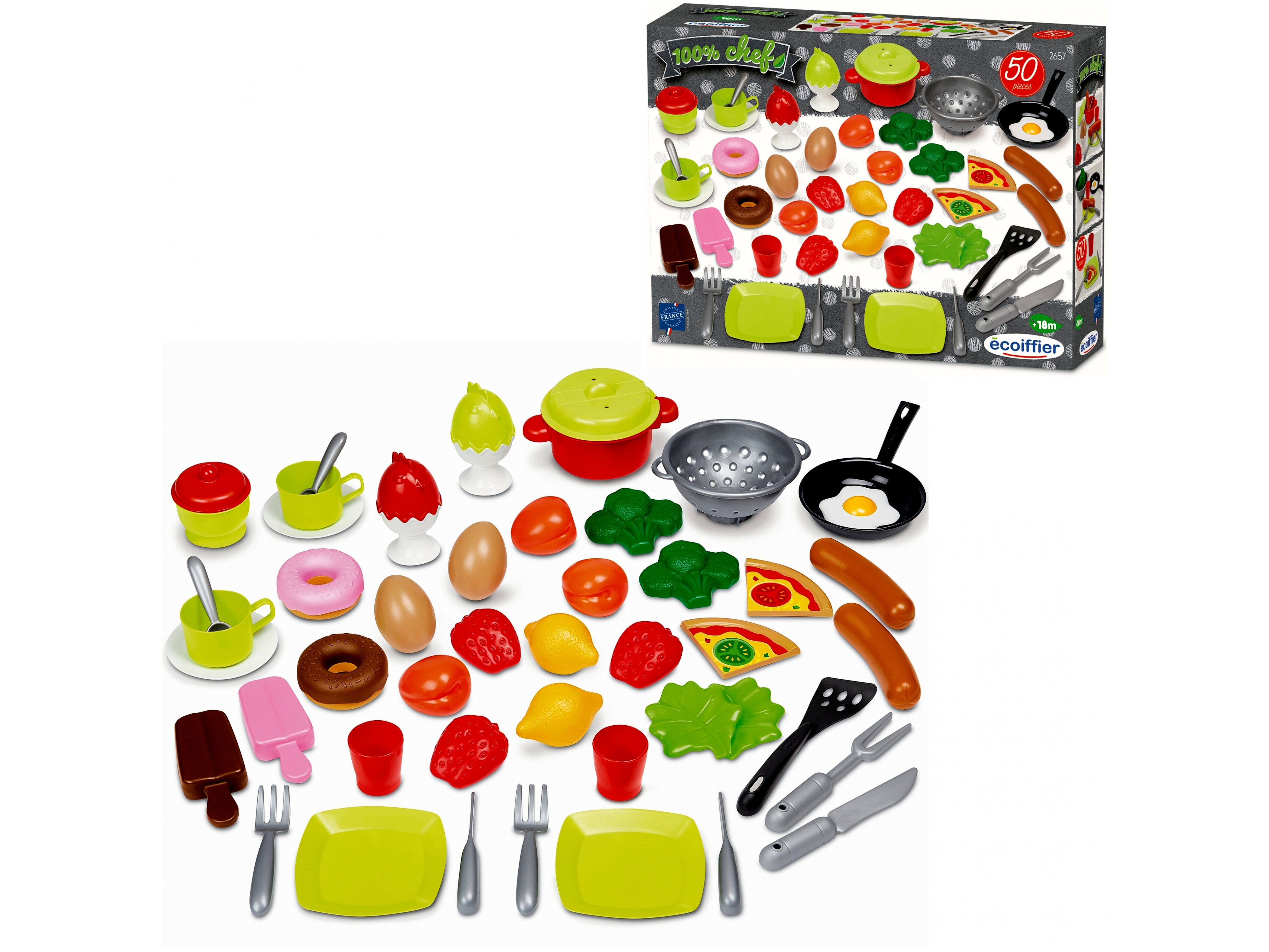 Ecoiffier, Nagy élelmiszer és kiskonyha szett, 50 db-os