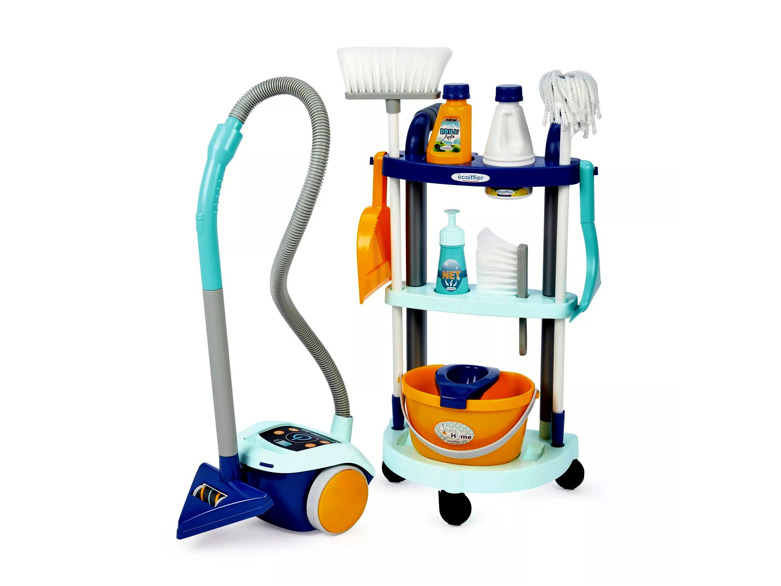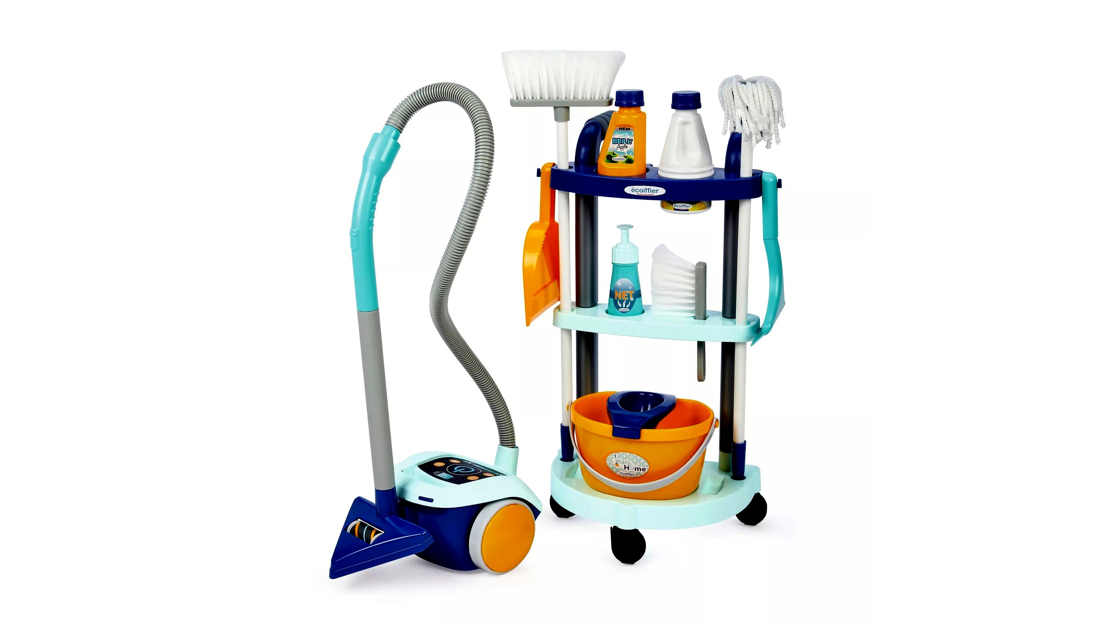 Egy kis felmosás, egy kis seprés... pont ahogy a szülők és a nagyszülők, nem lehet elég korán kezdeni. A szett minden szükséges eszközt tartalmaz, amely egy háztartásban is megtalálható: porszívó, felmosó, seprű, lapát, tisztítószerek...A készlet lehetőséget teremt a szerepjátékra, amely során fejlődik a gyerekek képzelete, fantáziája és kommunikációs készsége. A játékszett segít bevonni a lurkókat az otthoni házimunkába, emellett megismerteti a kicsikkel a különböző takarítóeszközöket és használatuk módját.