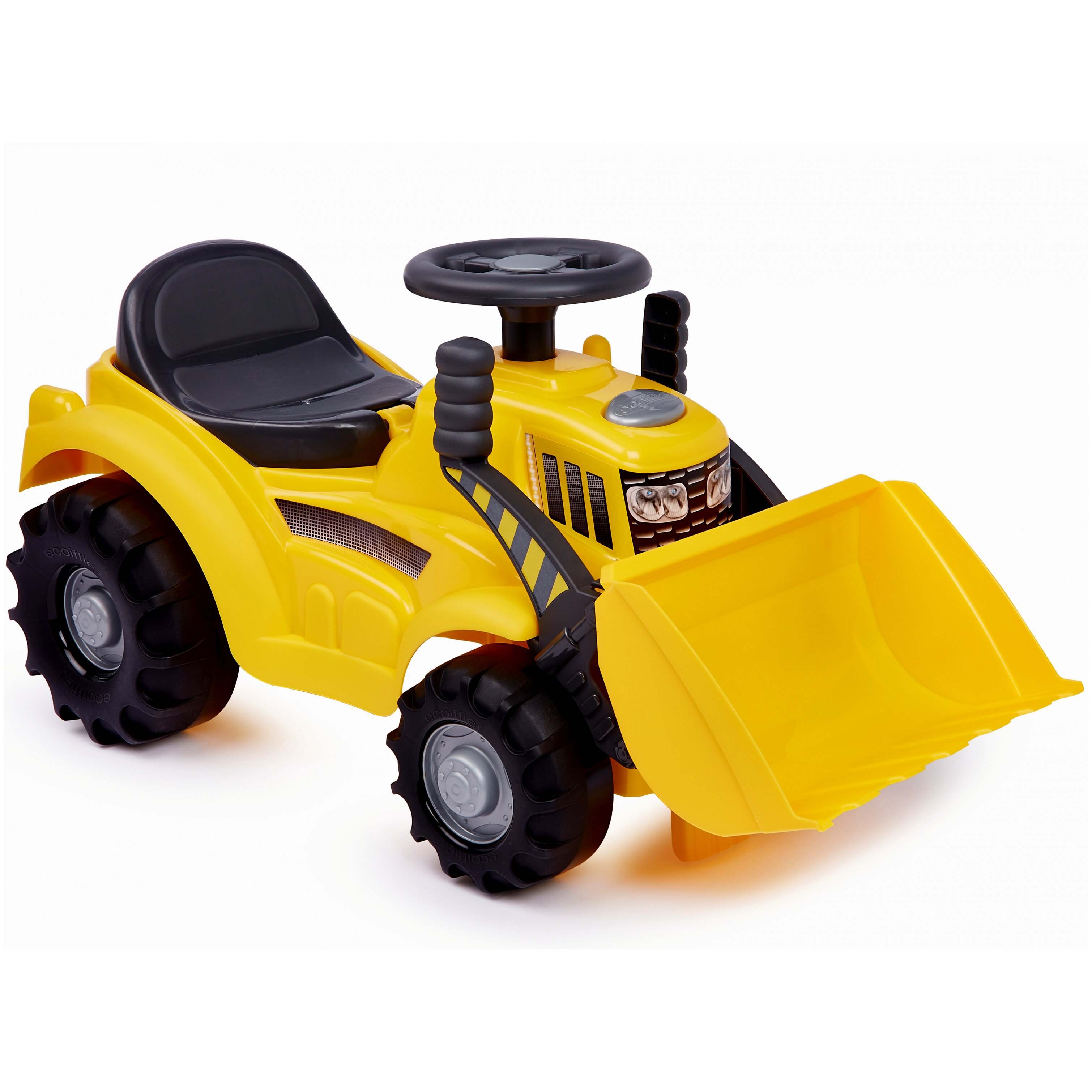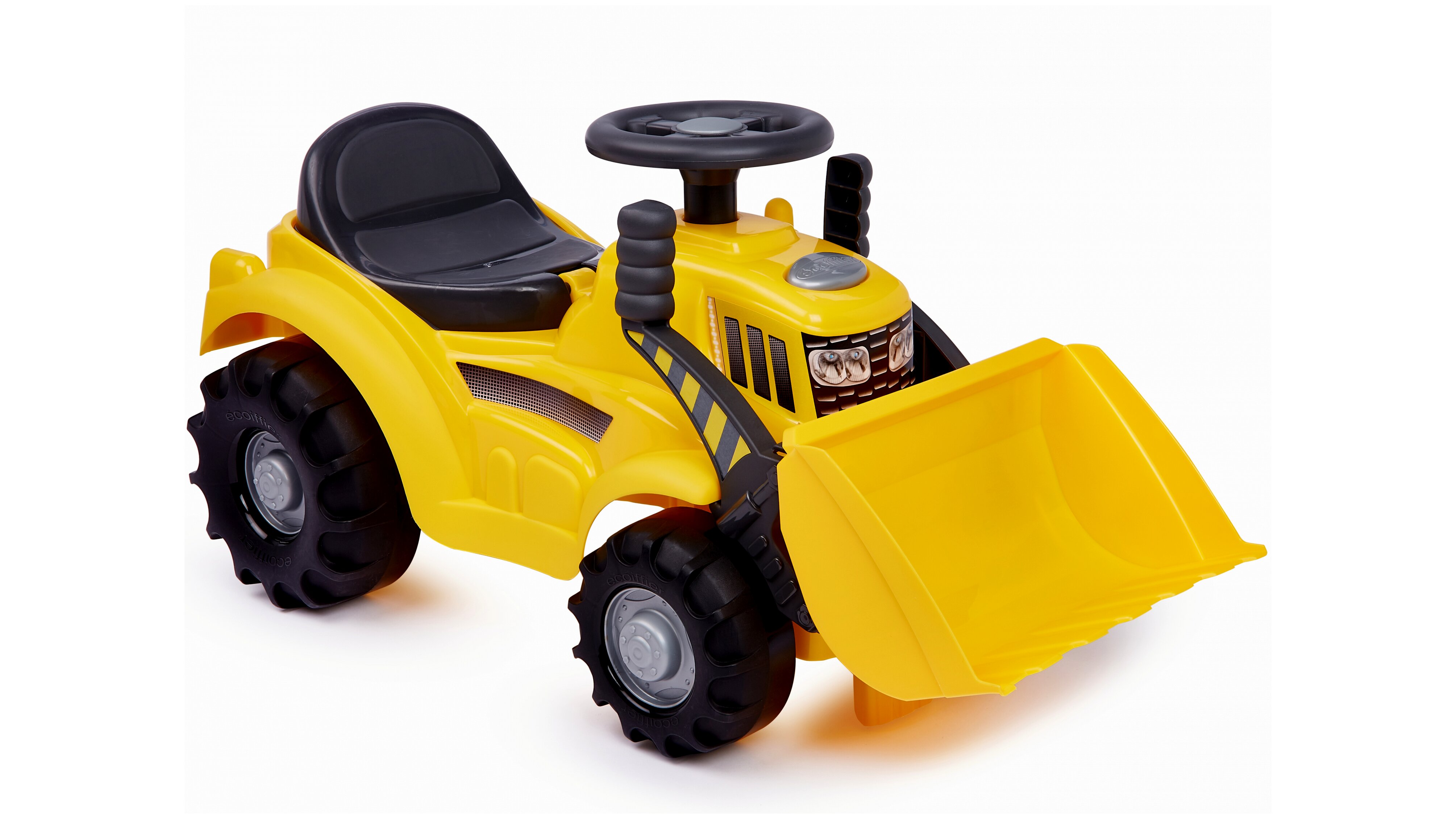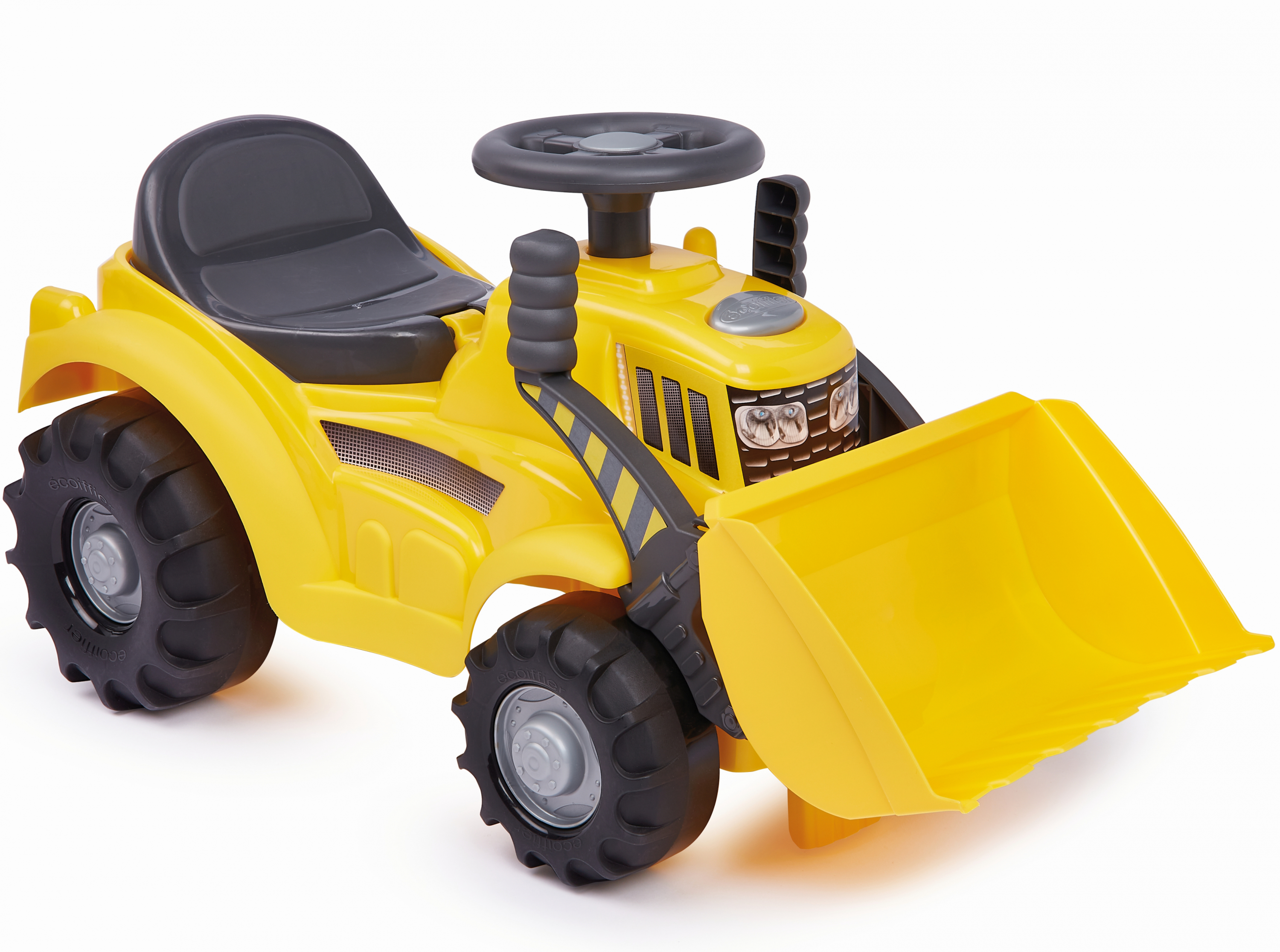 Méghozzá nem akármivel! Erre a markolókanállal ellátott bébitaxira garantáltan rátapadnak a tekintetek. Már maga a kinézete is impozáns, azonban a jármű a homokozó sztárja is lehet, ugyanis a markolófej valóban funkcionál. Elég csak fel-le mozgatni a kormány mellett található 2 kart, és máris lehet nagyüzemben szállítani a homokot a játszótér egyik végéből a másikba.Az ülés és a kormány csúszásmentes anyaggal borított a kicsik biztonsága érdekében, az ülés alatt pedig egy titkos tárolórekesz lapul - elvégre minden gyereknek vannak kincsei, amelyeket el kell rejteni a játszótéren. A kormánykerék kormányzási funkcióval a kicsik biztonsága érdekében nem rendelkezik.