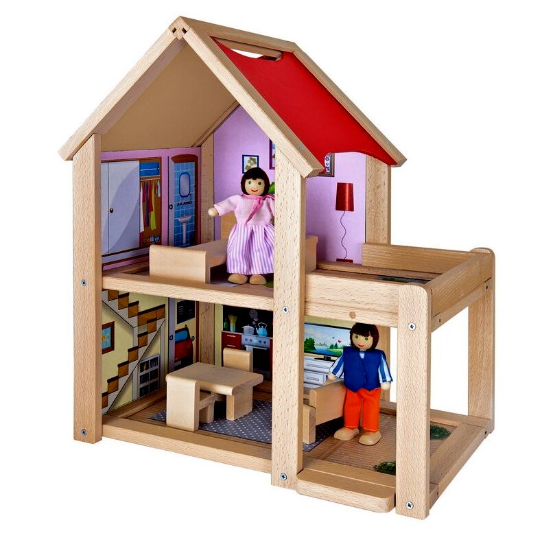 Az új két emeletes fa babaházaddal és a két babával bármilyen történetet eljátszhatsz.