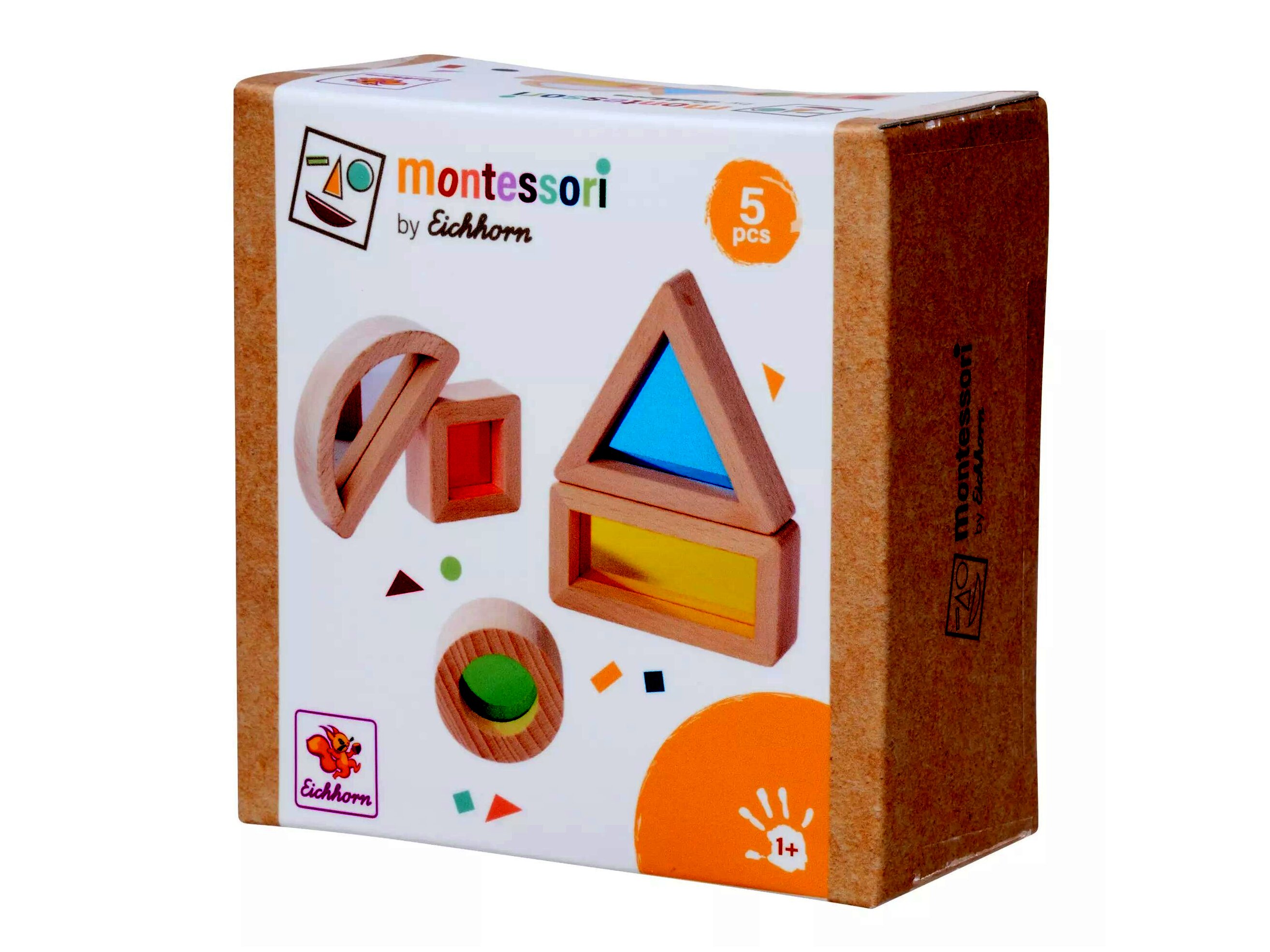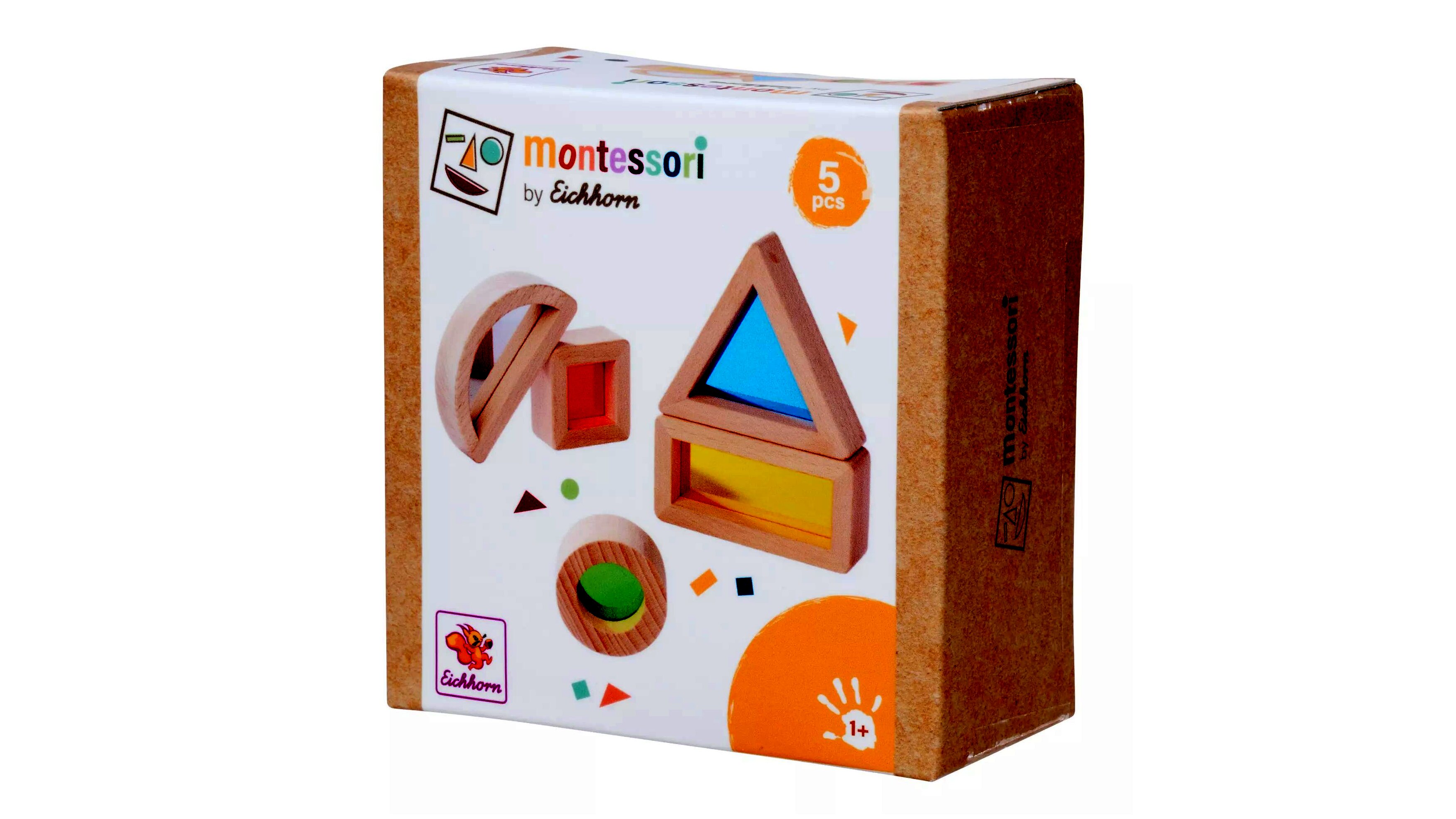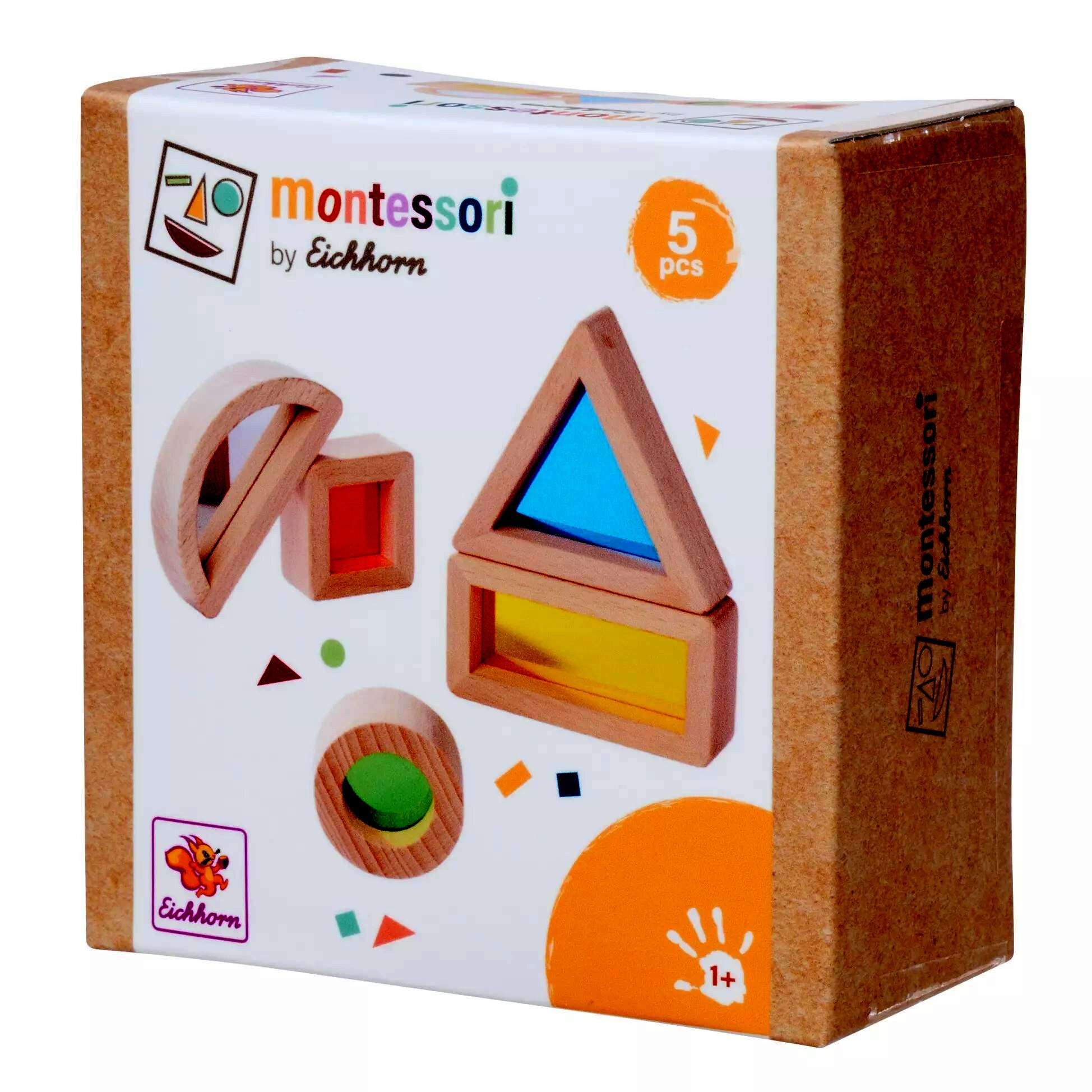Az Eichhorn Montessori fa oktató játék egy 5 darabos készlet, amely különböző formák felismerésére és a kreativitás fejlesztésére összpontosít.