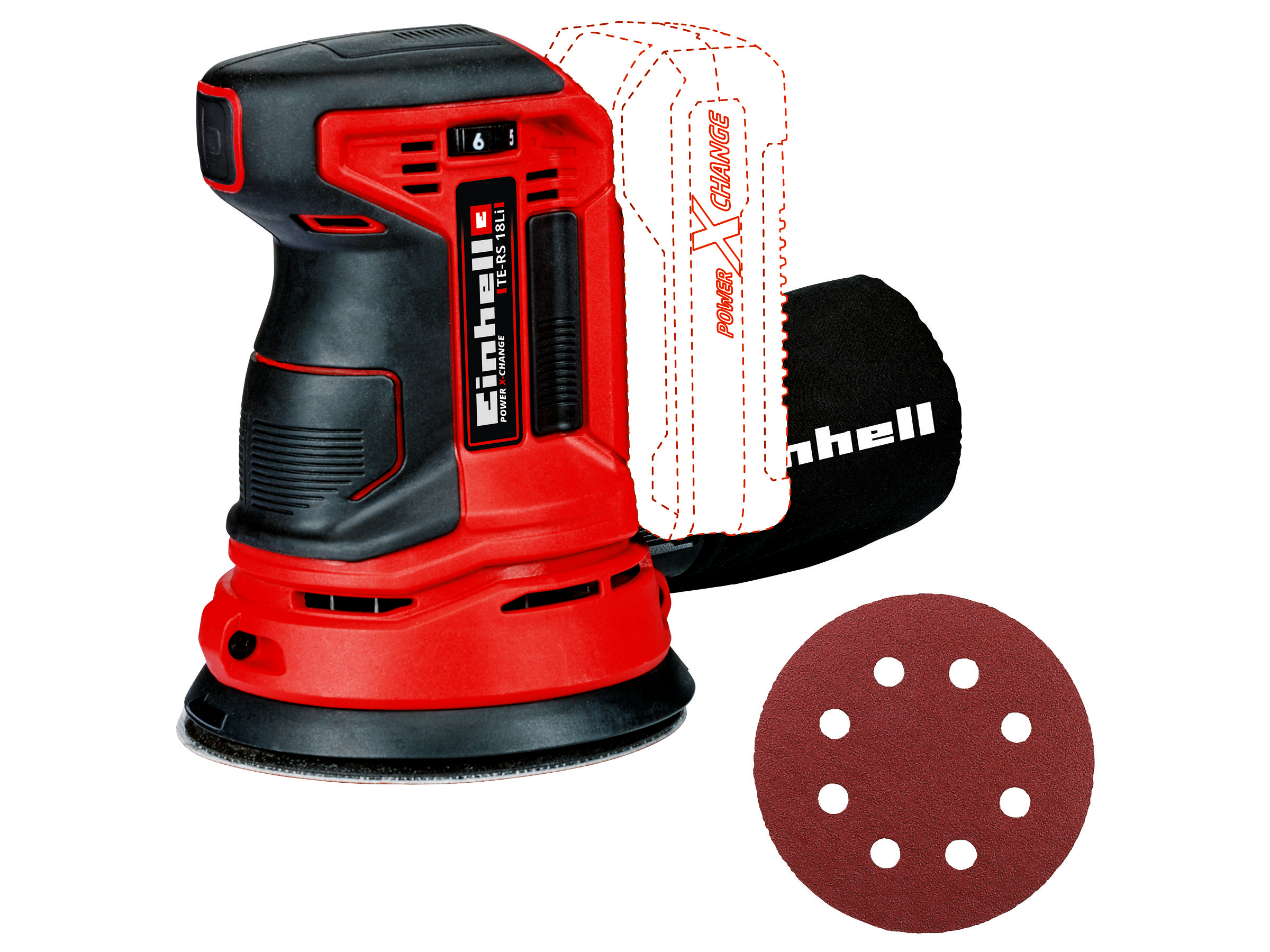 Einhell Power X-Change TE-RS 18 Li-Solo akkus excentercsiszoló, Akku és töltő nélkül