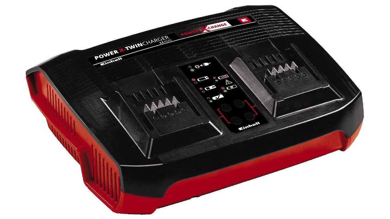 Az Einhell Power X-Twincharger 3 A PXC töltőkészülékével egyszerre két darab nagy teljesítményű, Power X-Change technológiával készült lítium-ion akkumulátort tölthet fel. Miért jó a Power X-Change technológia? Használja ugyanazt az akkumulátort valamennyi készülékéhez! A Power-X-Change akkumulátorokat az Einhell termékcsalád összes nagy teljesítményű kerti készülékéhez és szerszámgépéhez használhatja. A töltőkészülékkel egyszerre két darab 18 V akkumulátort tölthet fel, így még rövidebb idő alatt újra használatba veheti a készülékeket. Az alkalmazkodó töltés meghosszabbítja az akkumulátor élettartamát. Az intelligens töltésfelügyelet maximális biztonságot nyújt. A töltő folyamatosan ellenőrzi, hogy a töltési folyamat optimális-e. A hatfokozatú töltőről bármikor leolvashatja az akkumulátor aktuális töltöttségi szintjét. A Power-X-Twincharger 3 töltőkészüléket a beépített akasztószemeknél fogva akaszthatja fel a falra. A töltőkészüléket a Power X-Change termékcsalád valamennyi akkumulátorához használhatja.