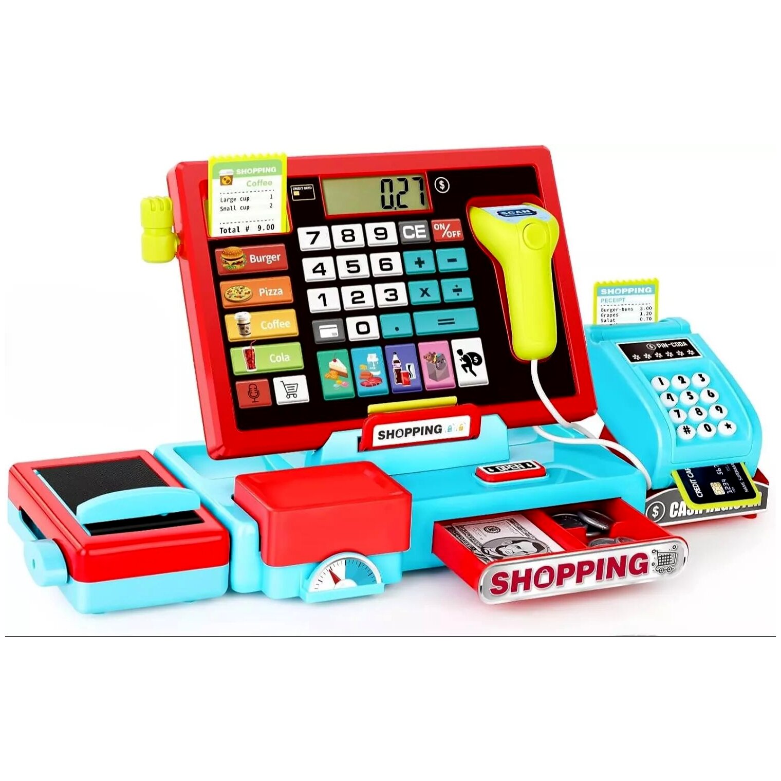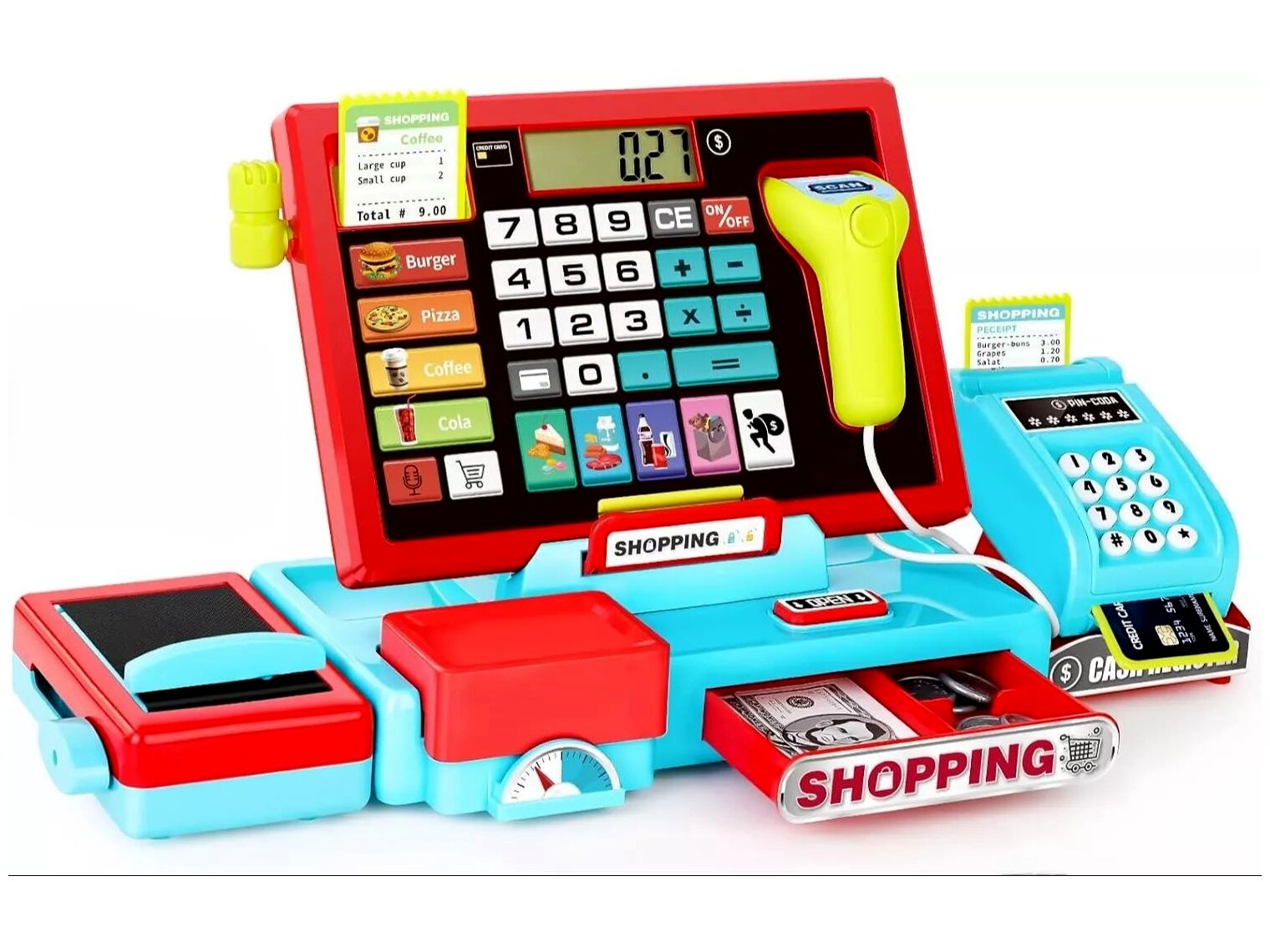 Ezzel az elektromos pénztárgéppel a gyerekek eljátszhatják, hogy elmennek bevásárolni. A készlet különböző árucikkeket tartalmaz, és egy kosarat is, így a kislányok különböző szerepjátékokat találhatnak ki, és cserélhetnek is, éppen ki vásárol, és ki kezeli a pénztárgépet. A játék fejleszti a kreativitást és a képzelőerőt.A termék jellemzői: