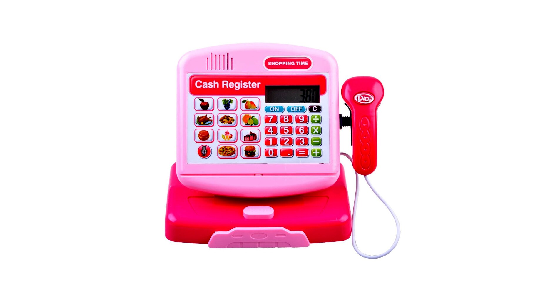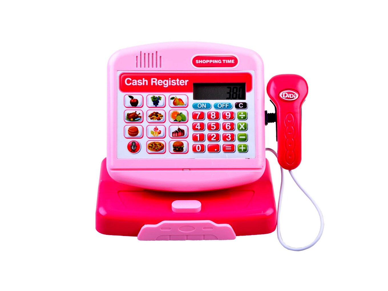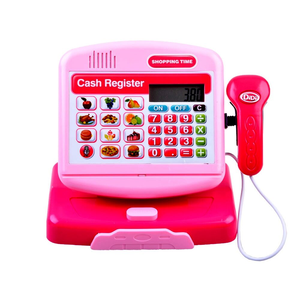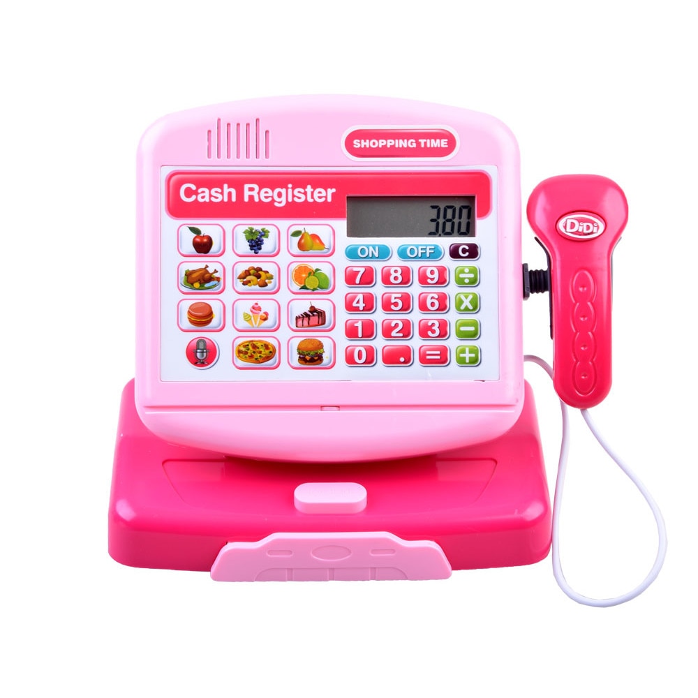 Elektronikus pénztárgép kiegészítőkkel, rózsaszín