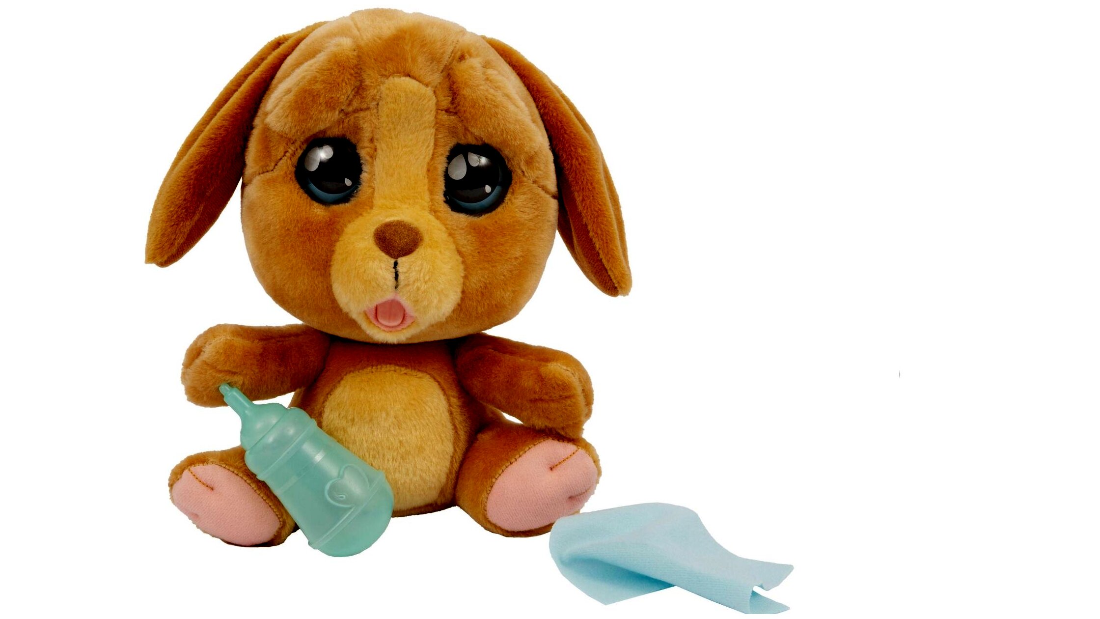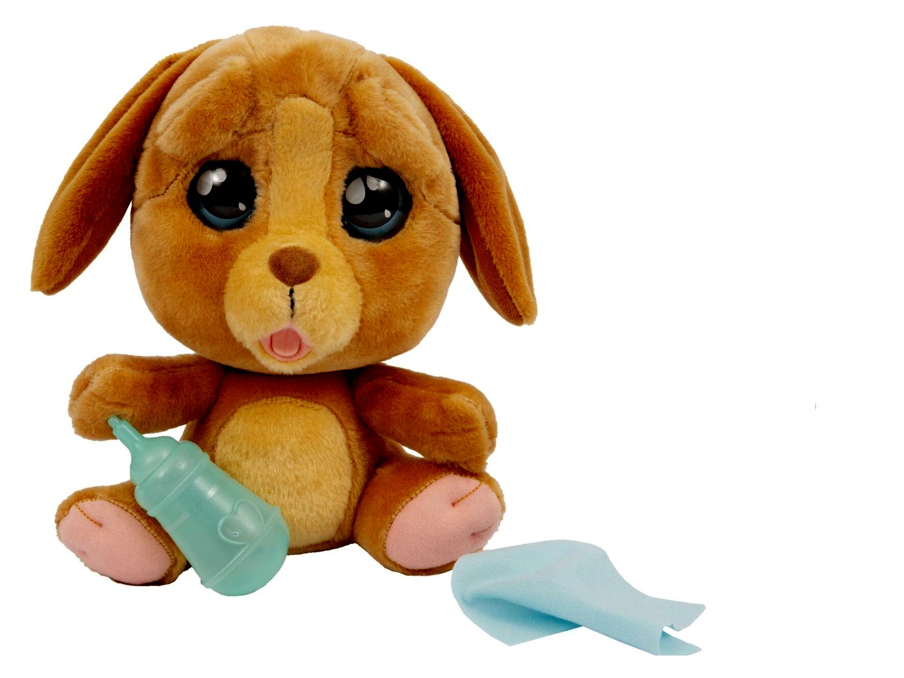 Csomag tartalma: Emotion Pets kiskutya, kis méretű törülköző, cumisüveg.