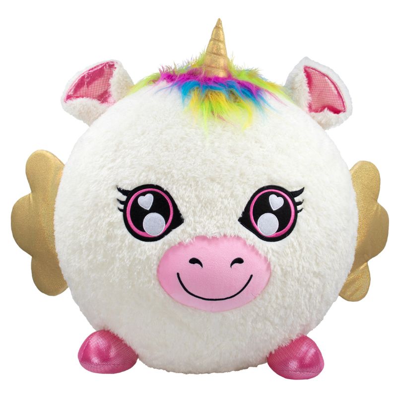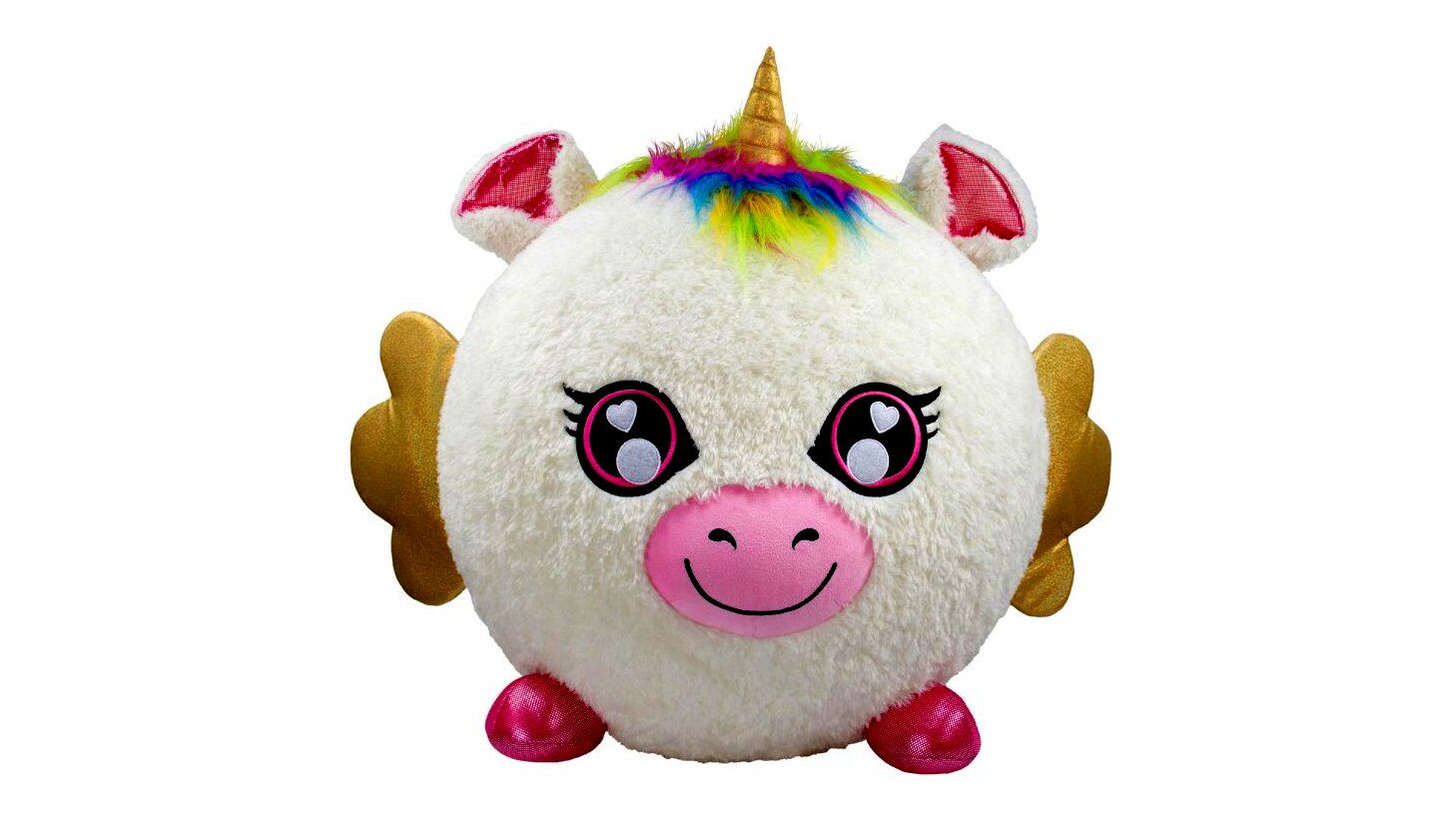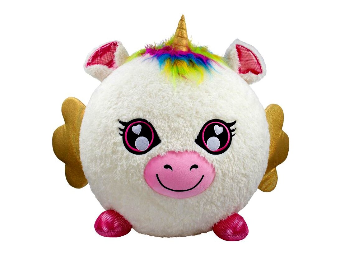 A Biggies felfújható plüss állatok mindaddig dobozkájukban pihennek, amíg kis tulajdonosaik a pumpa segítségével "meg nem növesztik" őket. A kellemes, puha tapintású kültakaróval rendelkező gömbállatkák a pumpálás hatására óriásira nőnek. Ebben a dobozban egy unikornis keresi gazdiját.A gyerekeknek nincs más dolguk, mint lehajtani a doboz megjelölt oldalát, lábbal pumpálni, és várni, hogy az állatka akkorára dagadjon, míg végül "kitör" a szűkös otthonából. Ha a plüss elérte 45 cm-es nagyságát, indulhat is a játék: a gyerekek guríthatják, dobálhatják, pattogtathatják kedvükre. Ha vége a játéknak, csak le kell ereszteni a cuki állatkát, így a következő mókáig kis helyen tárolható.