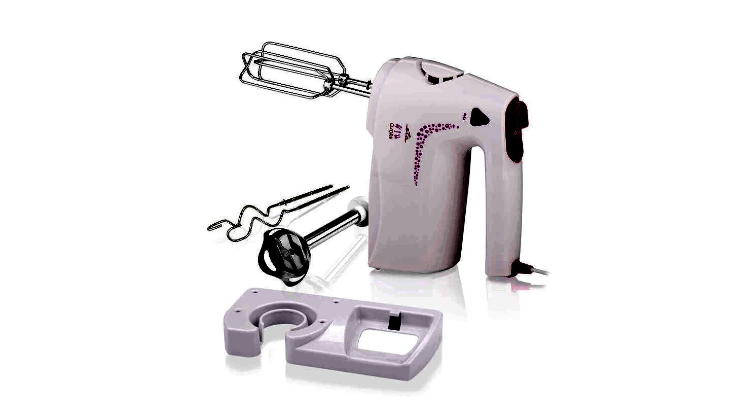 A csomagban többféle keverőszár található, a kialakítás pedig az egyszerű tisztítást és karbantartást segíti.