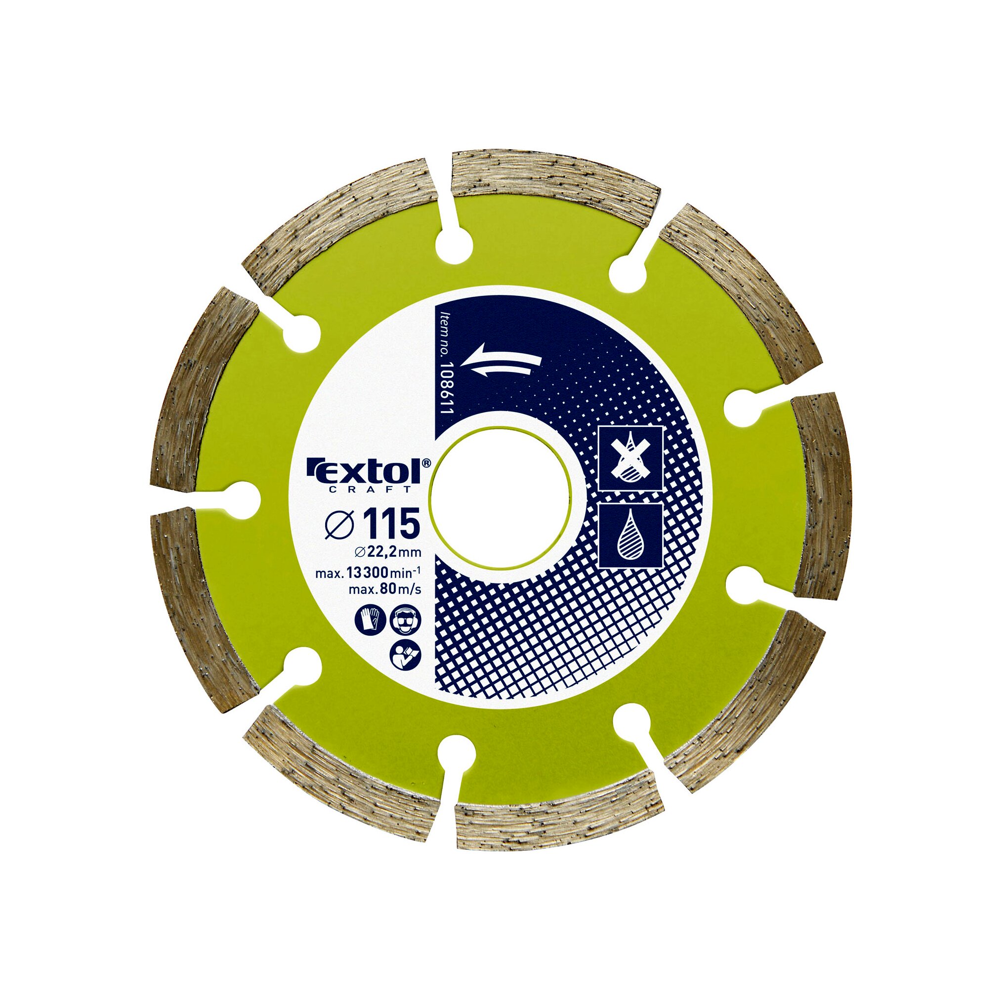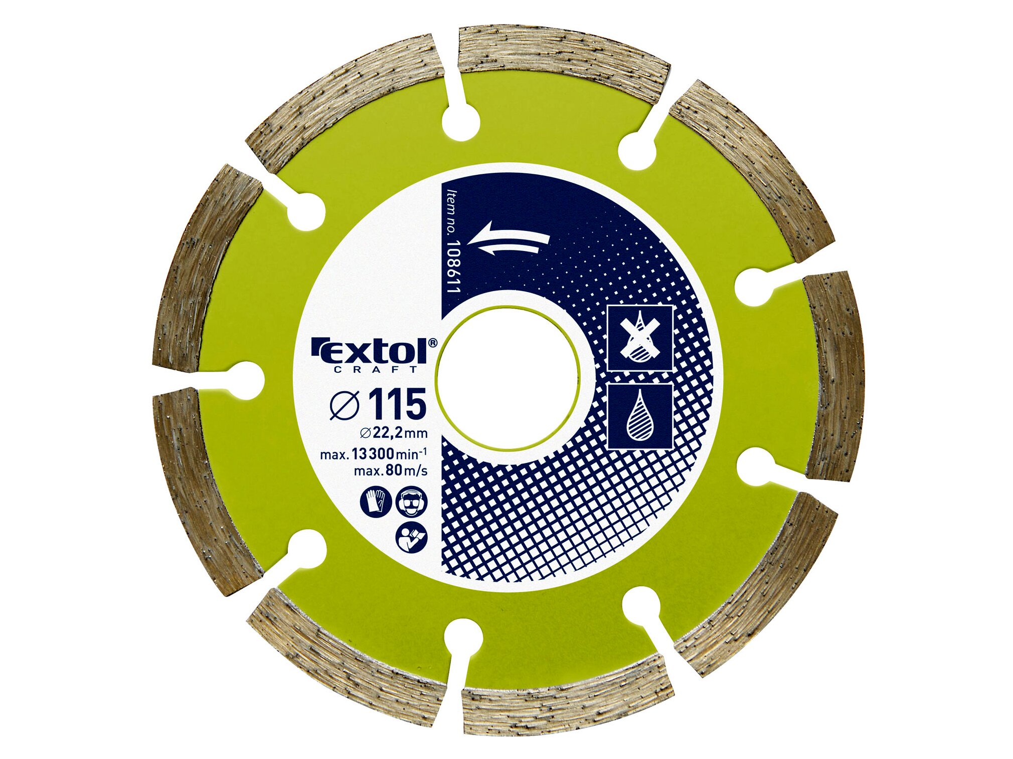 A gyémántvágó korongok nagy teljesítményű szerszámok melyek alkalmazásuk során nagy génybevételnek vannak kitéve. Az Extol Craft gyémántvágó korongok megbízható, általános felhasználású vágószerszámok, melyek megfelelő biztonságot garantálnak Önnek a munkavégzés során A gyémántvágó korongot beton, tégla, cserép, téglafal, kő, gránit vágásra lehet használni. A megfelelő használatát a termék melletti tájékoztatóban olvashatja.
