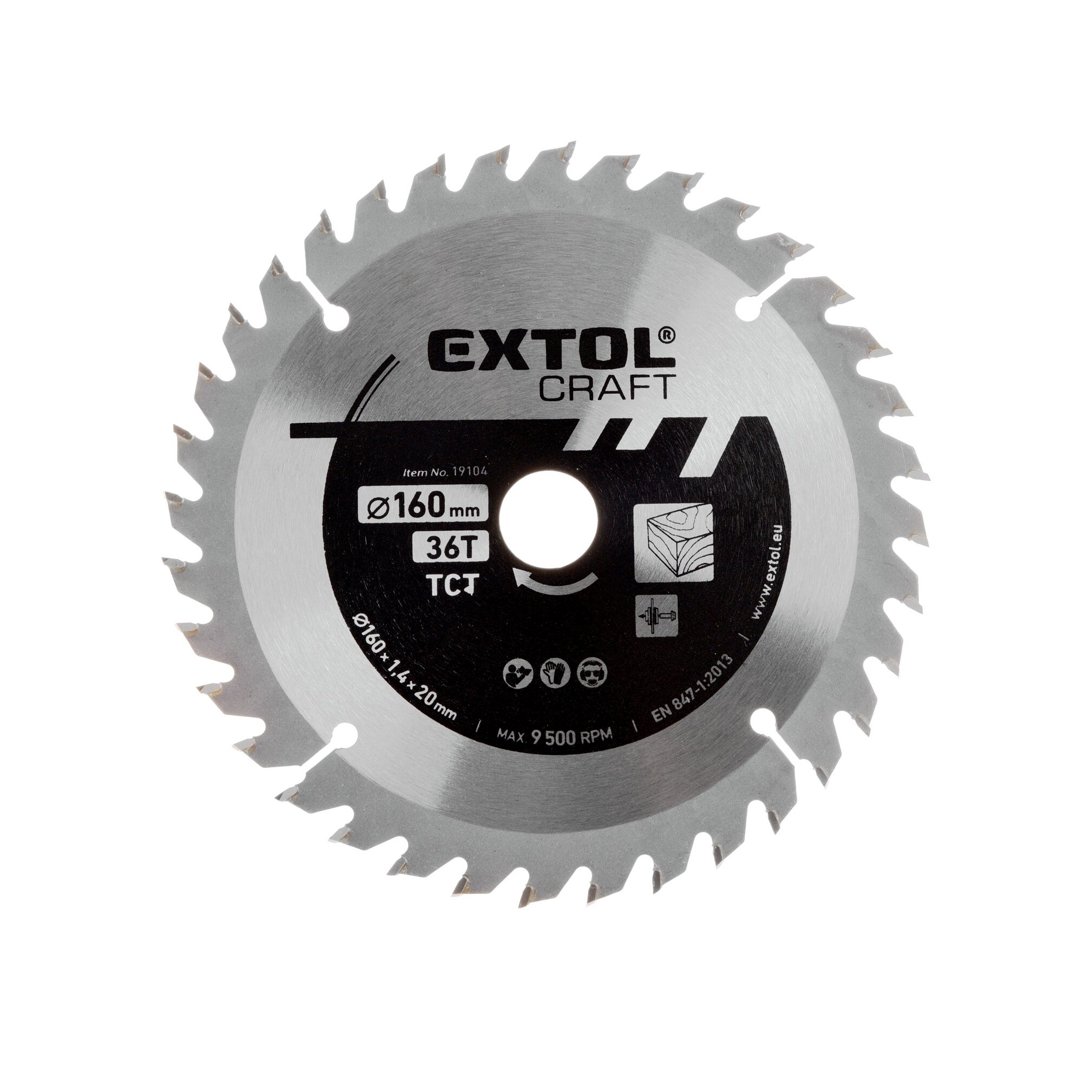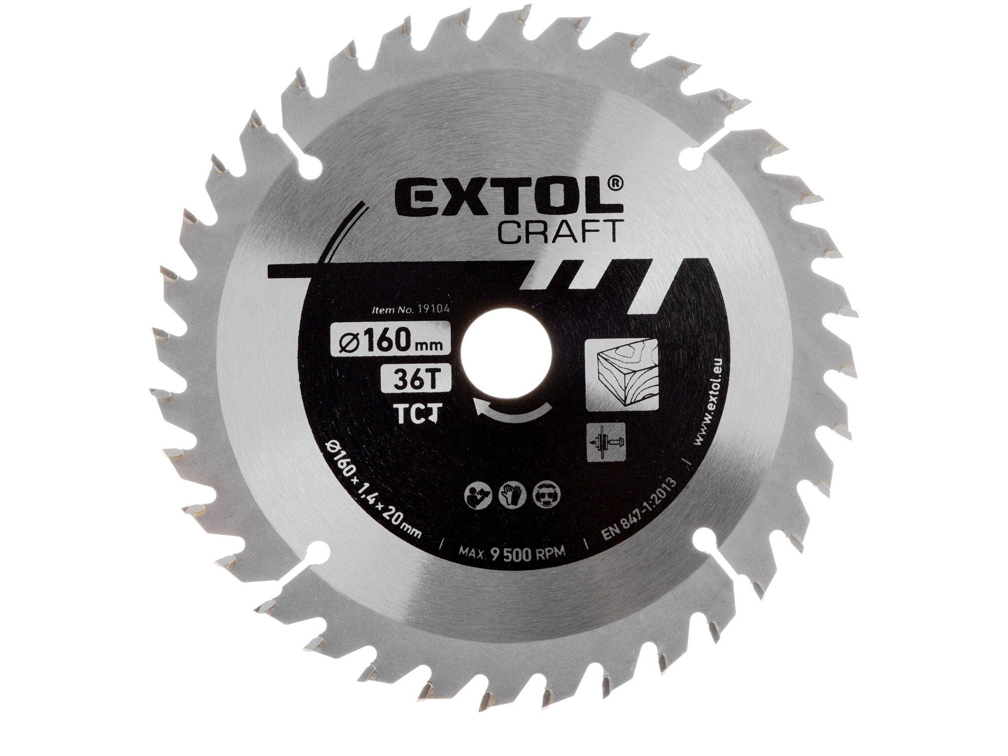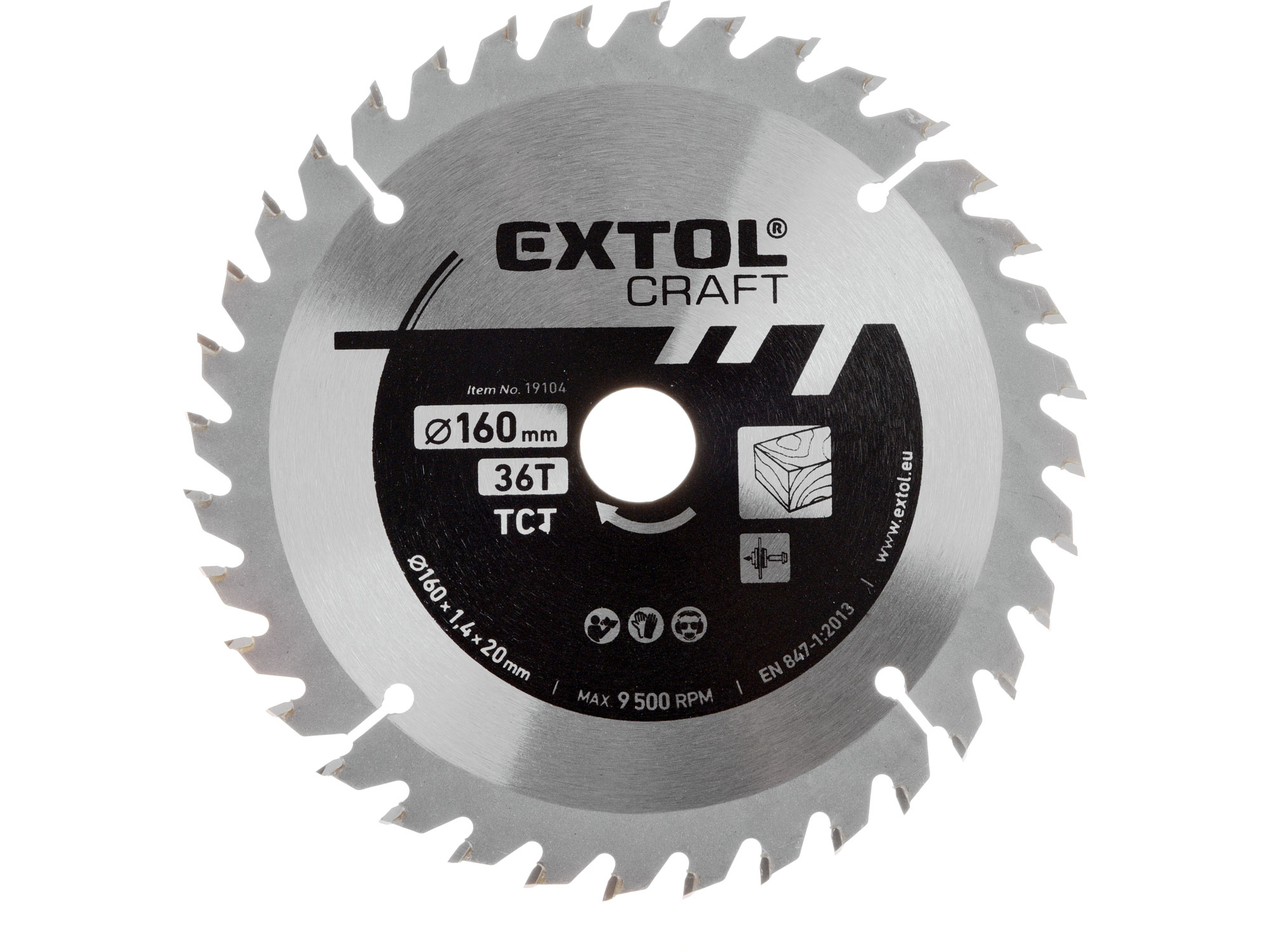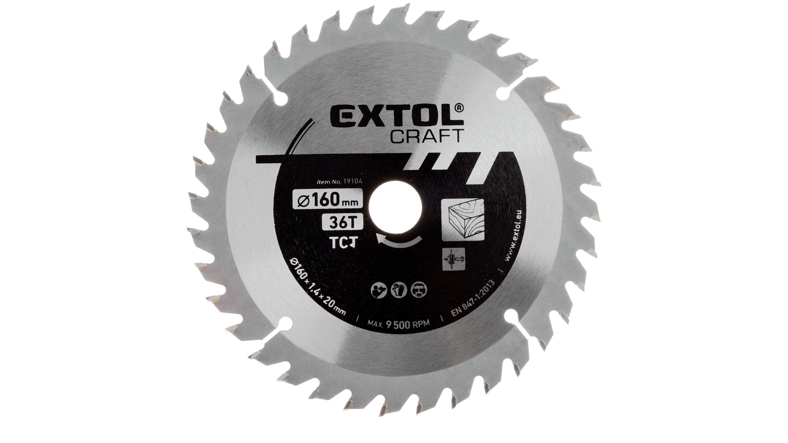 Extol körfűrészlap, keményfémlapkás, 160×20mm(lyuk átm), T36; 2,7 mm lapkaszélesség, max. 9.500 ford/perc