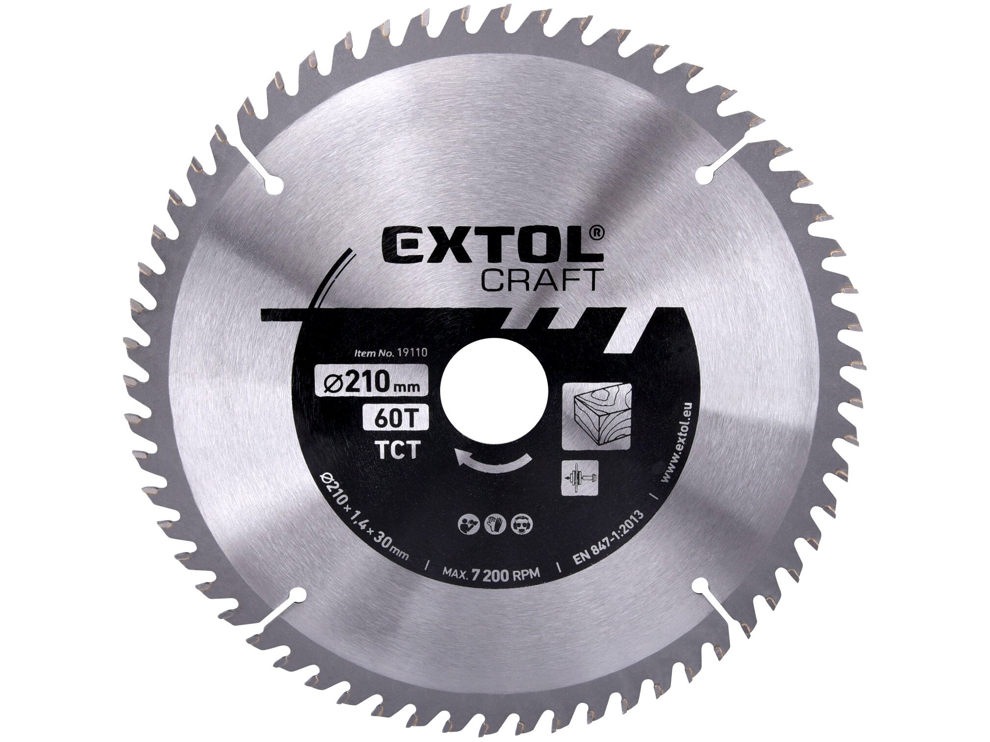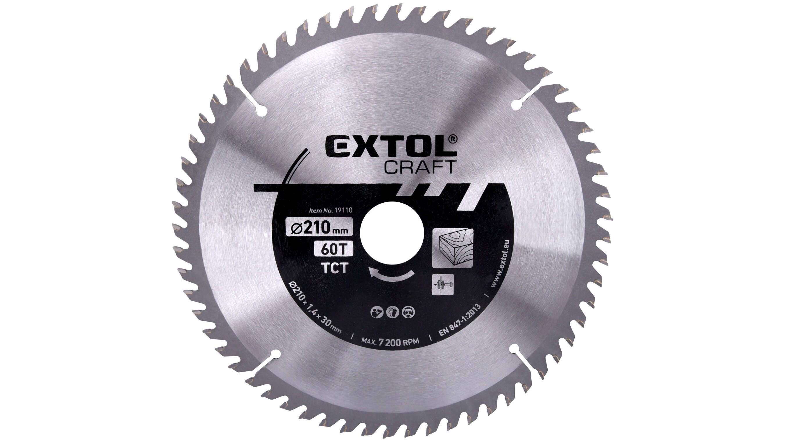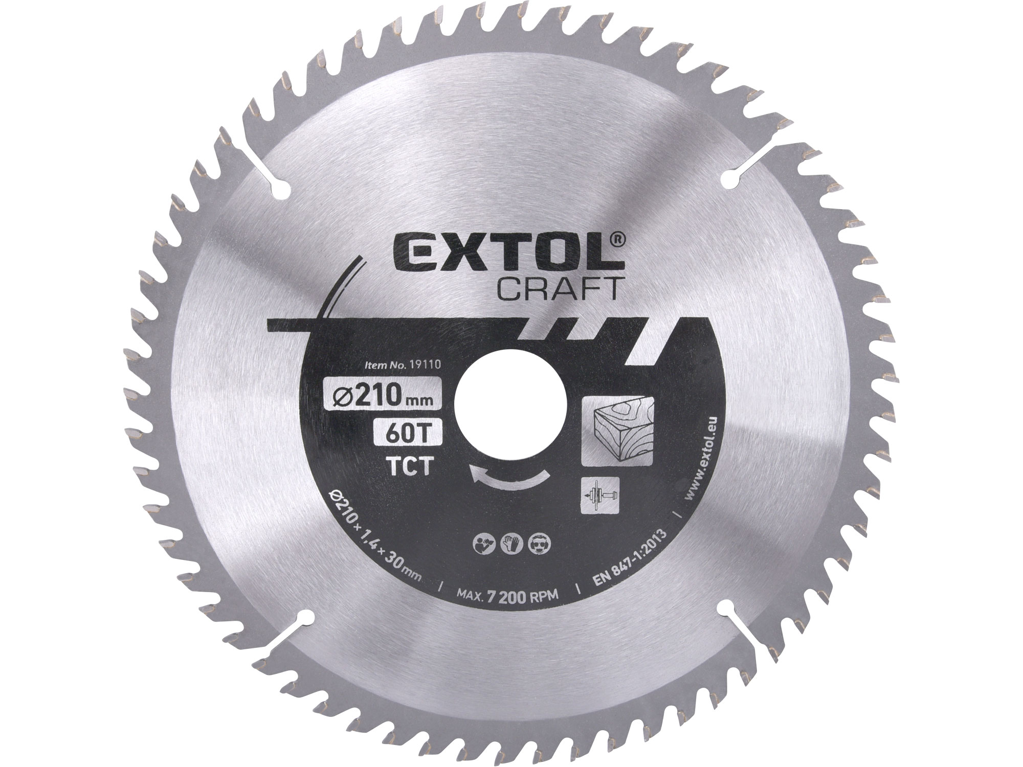 Extol körfűrészlap, keményfémlapkás, 210×30mm(lyuk átm), T60; 2,7 mm lapkaszélesség, max. 7.200 ford/perc
